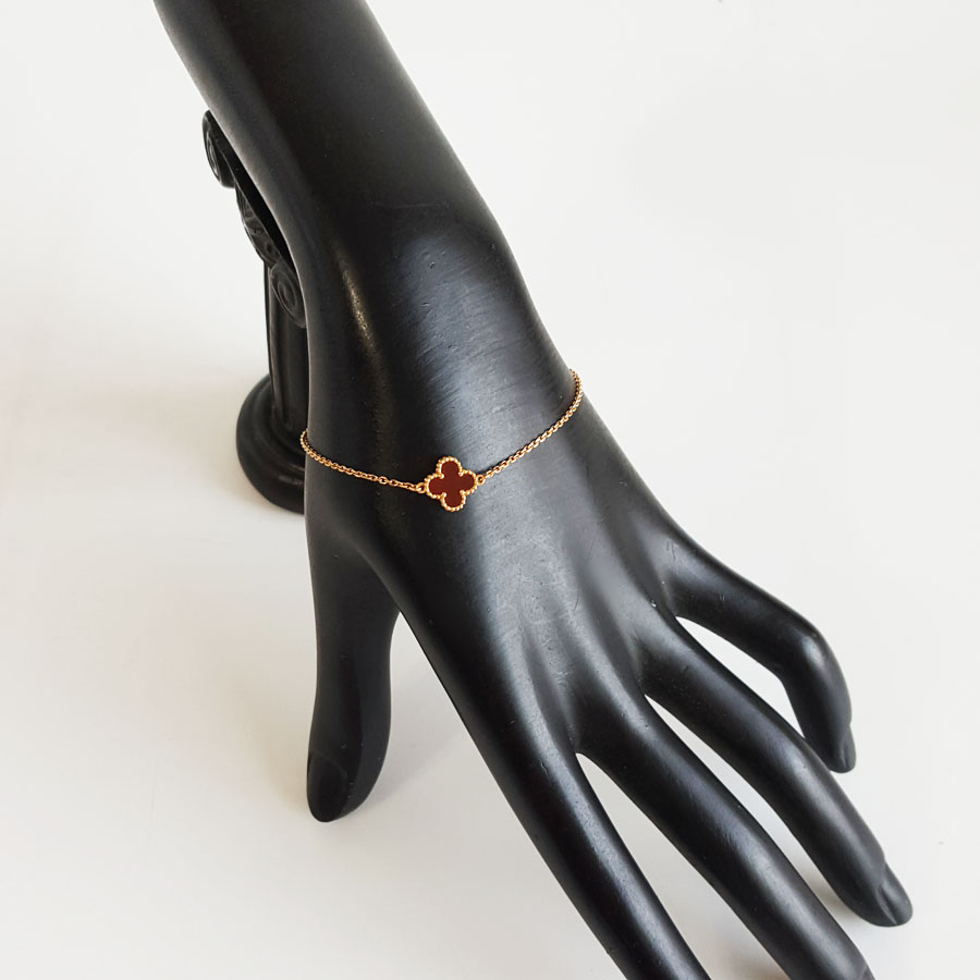 【95新】VCA梵克雅宝Sweet Alhambra手链Sweet Alhambra手链玫瑰金小号红玉髓四叶草老扣小红花手链女士现售价:7200!240225NJ10