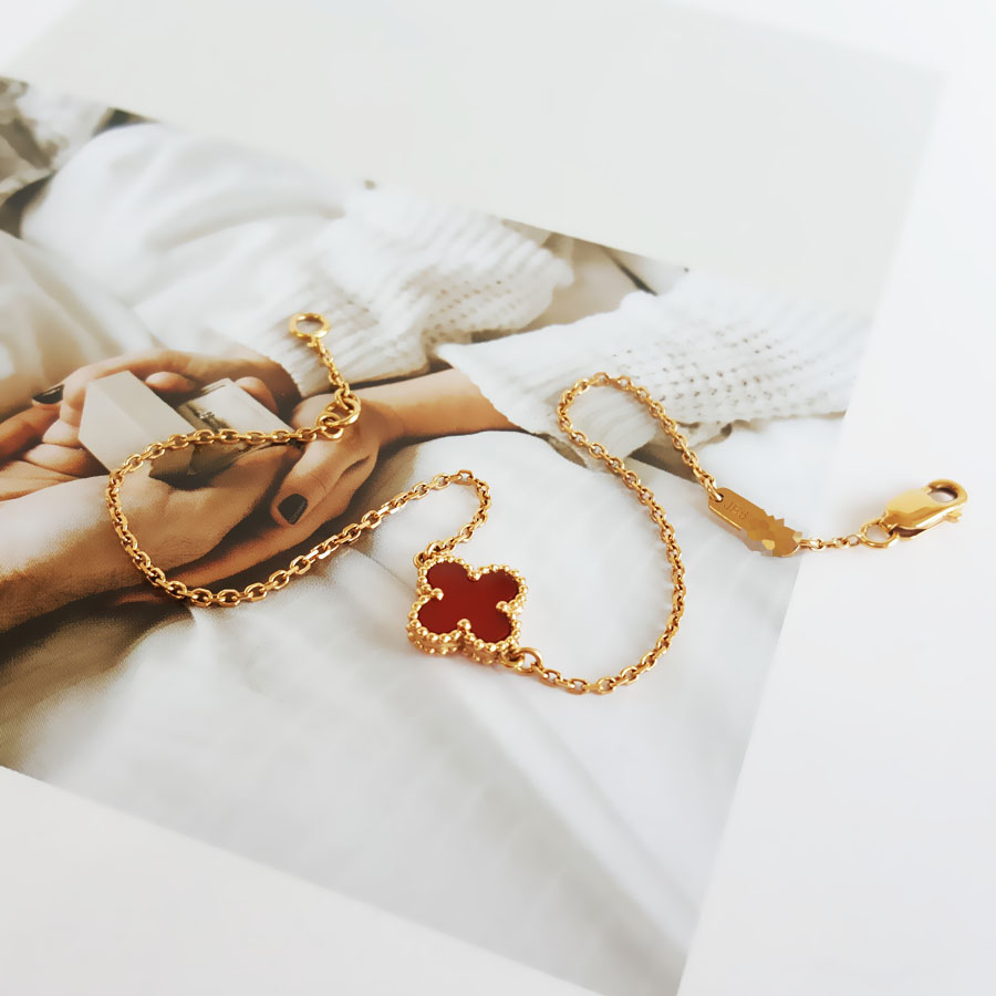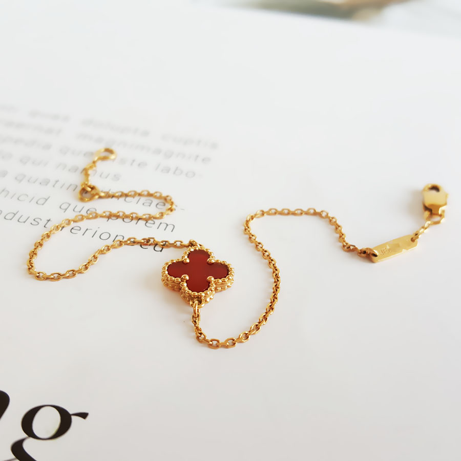 款式 | 玫瑰金小号红玉髓四叶草老扣小红花手链 |