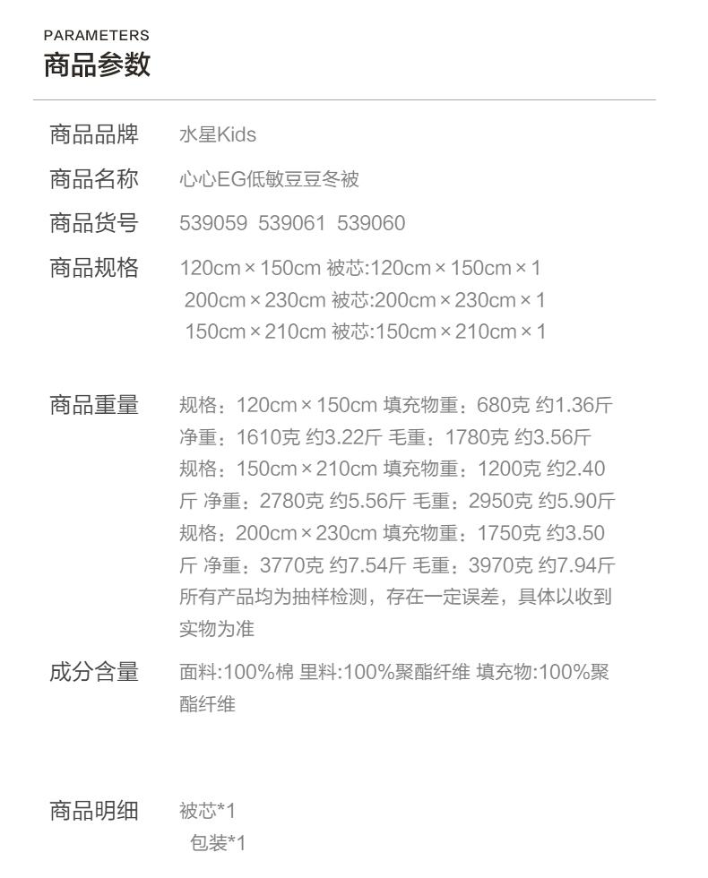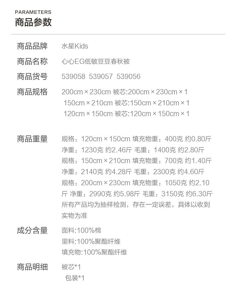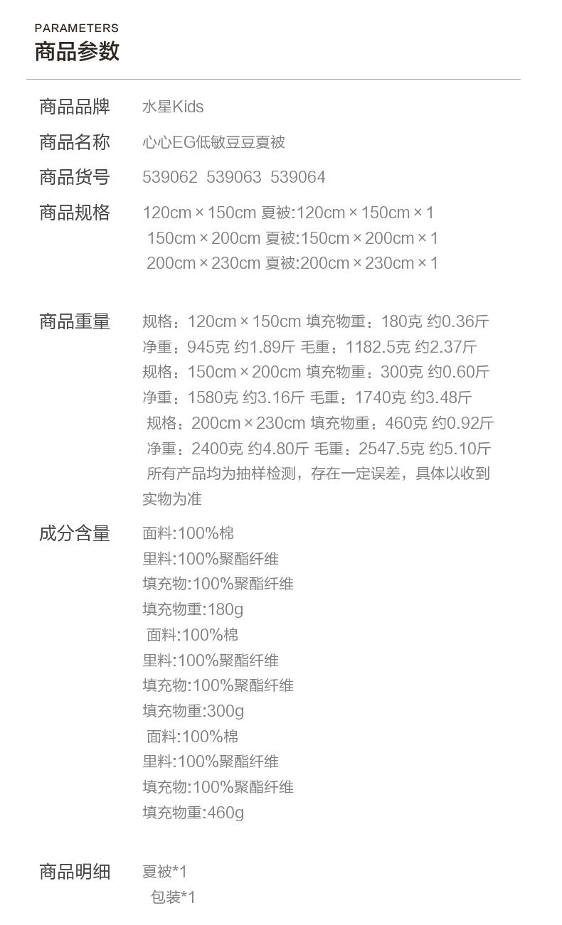 水星家纺 儿童A类春秋被冬被低敏豆豆夏被
