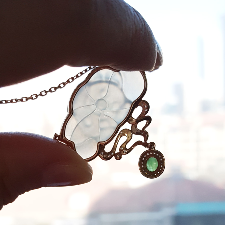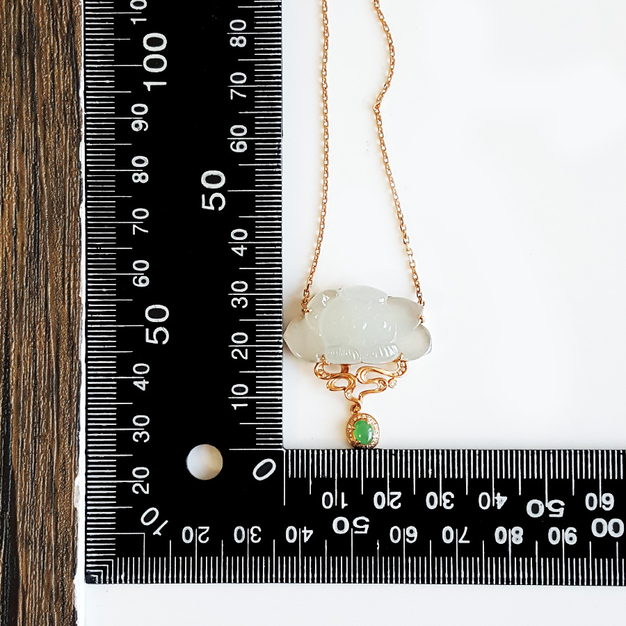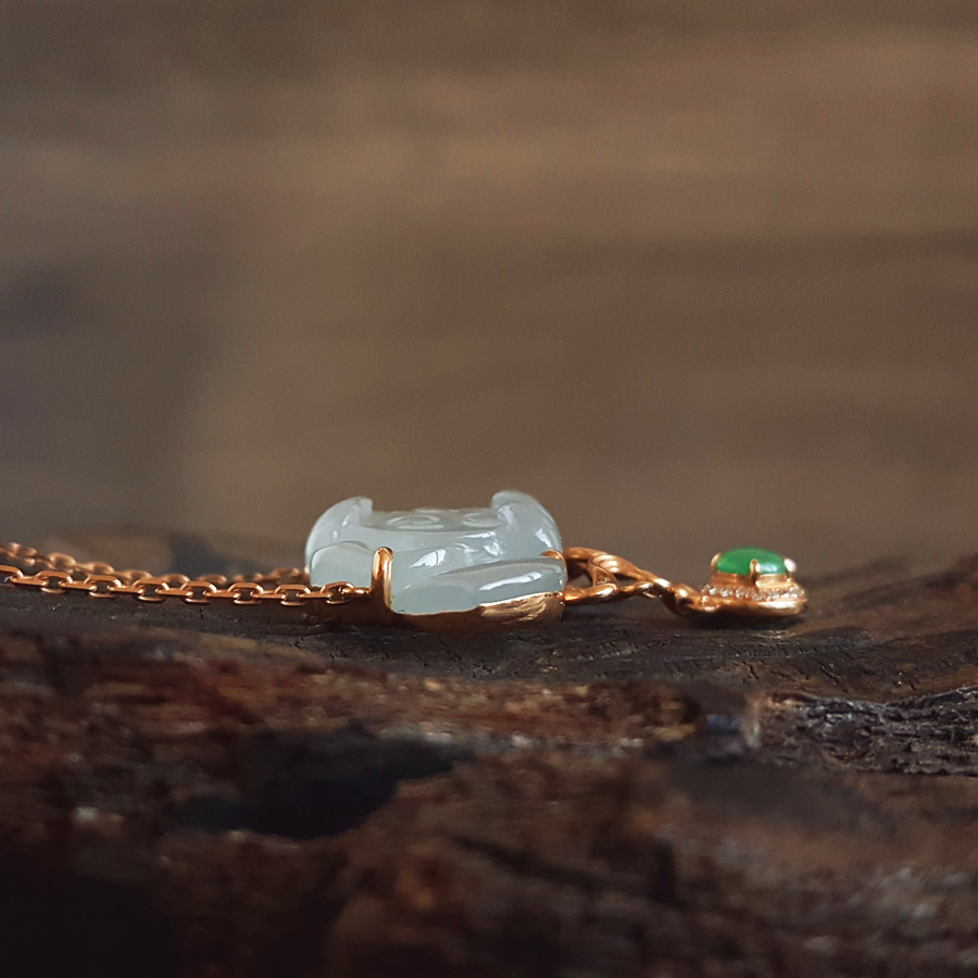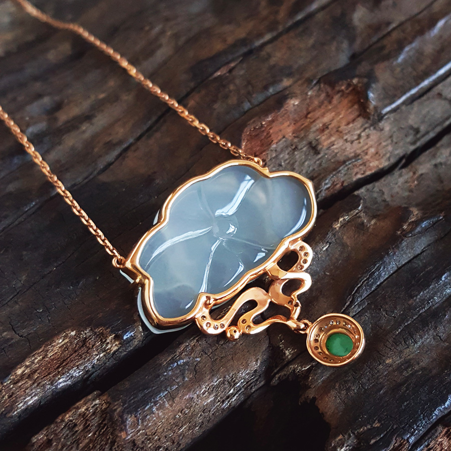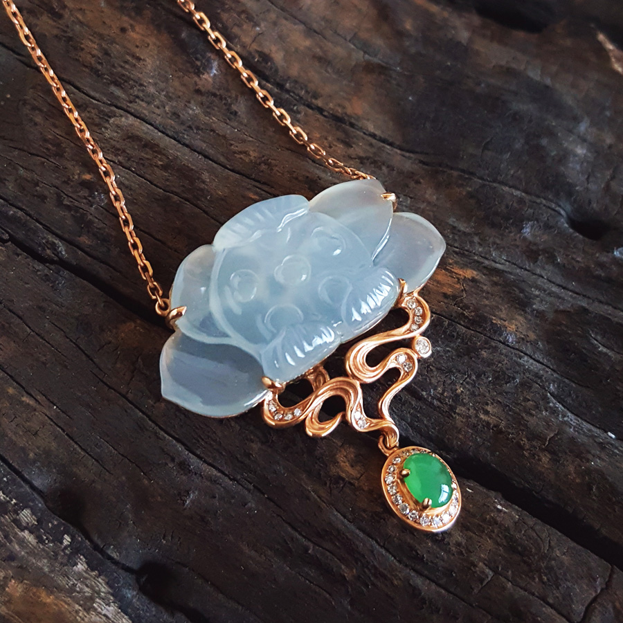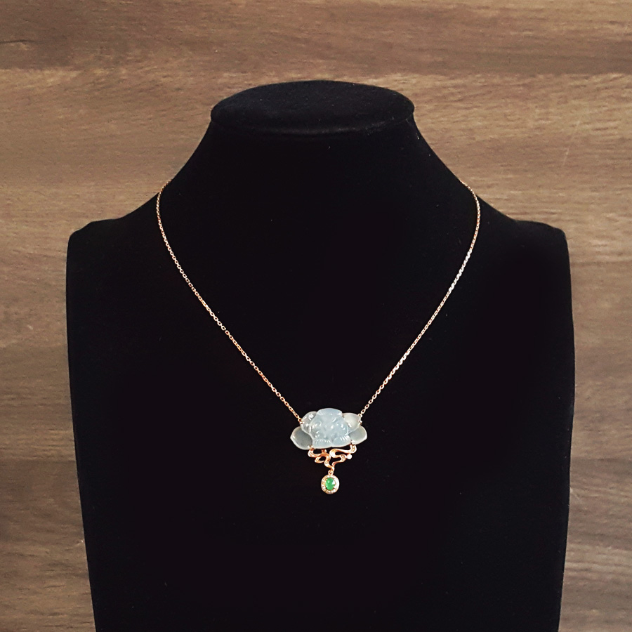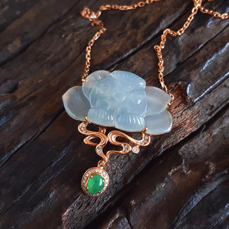 名称 | AU750精品玫瑰金镶钻镶天然冰种莲花造型翡翠(高贵,幸福)吊坠项链 |