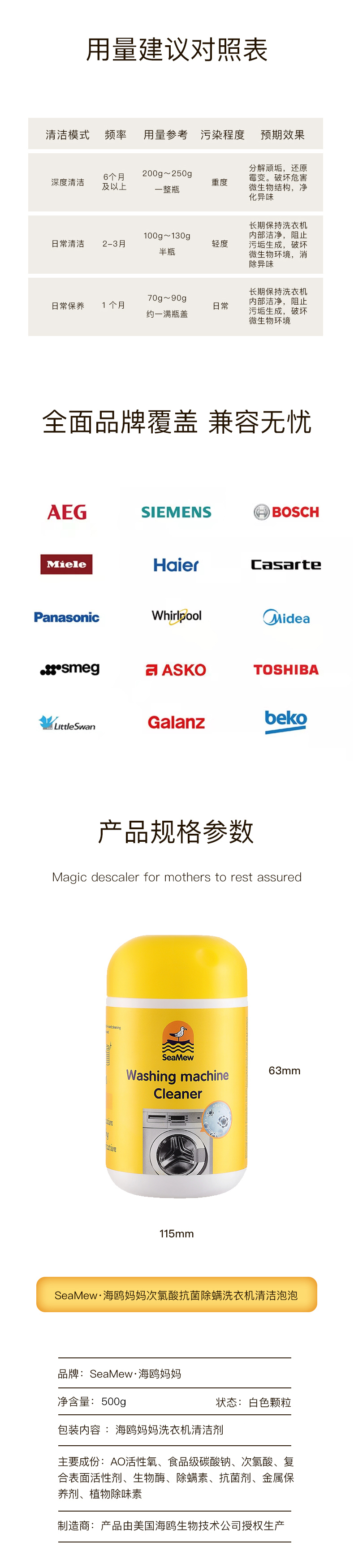 品名:海鸥妈妈·抗菌除螨洗衣机自净小黄瓶