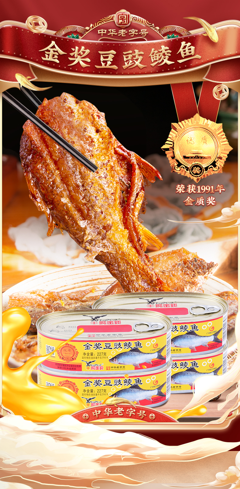 鹰金钱豆豉鲮鱼罐头|选用鲜活鲮鱼 肥美无污染 美味可口 好滋味更有好营养【清明期间正常发货】