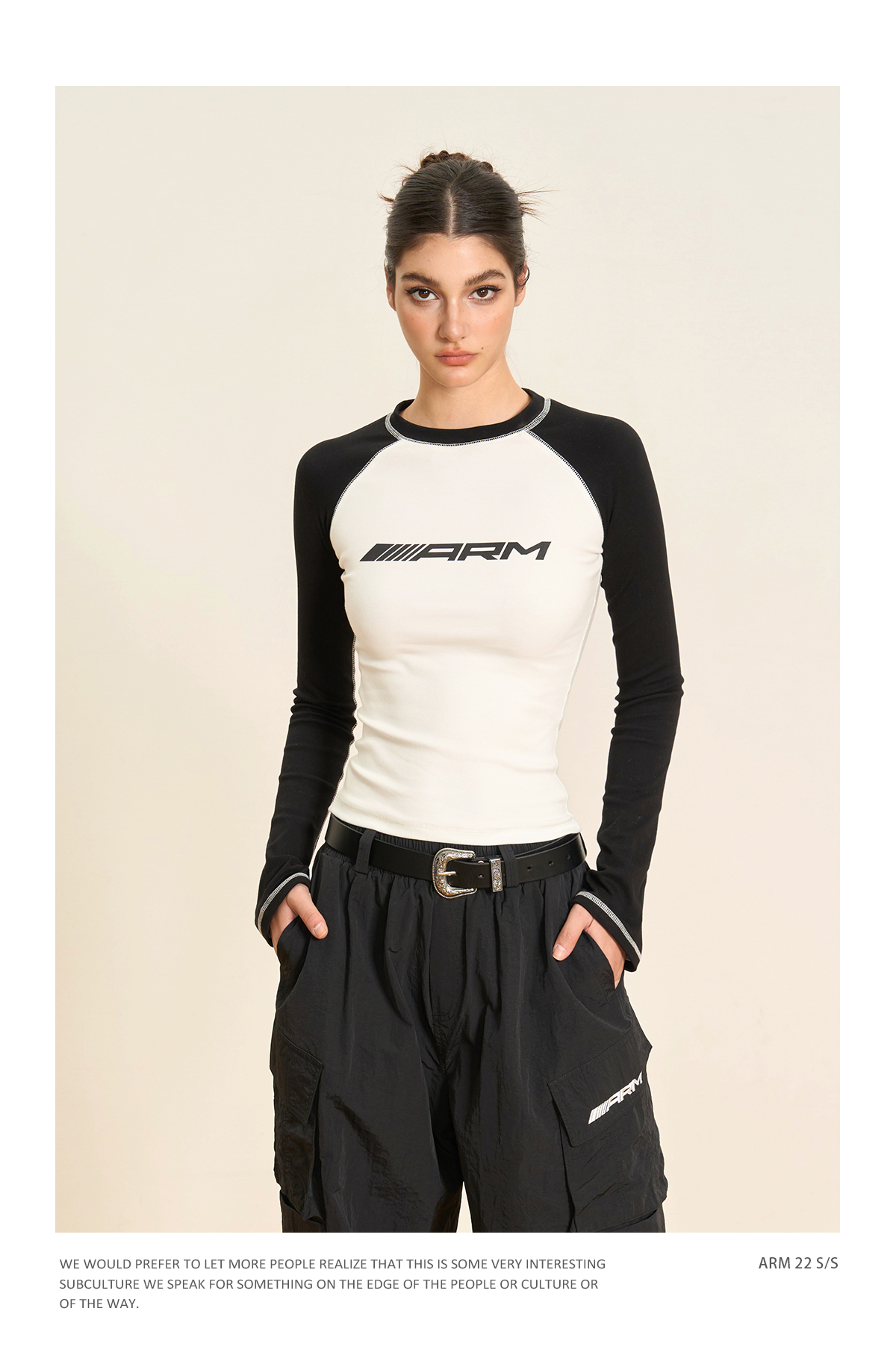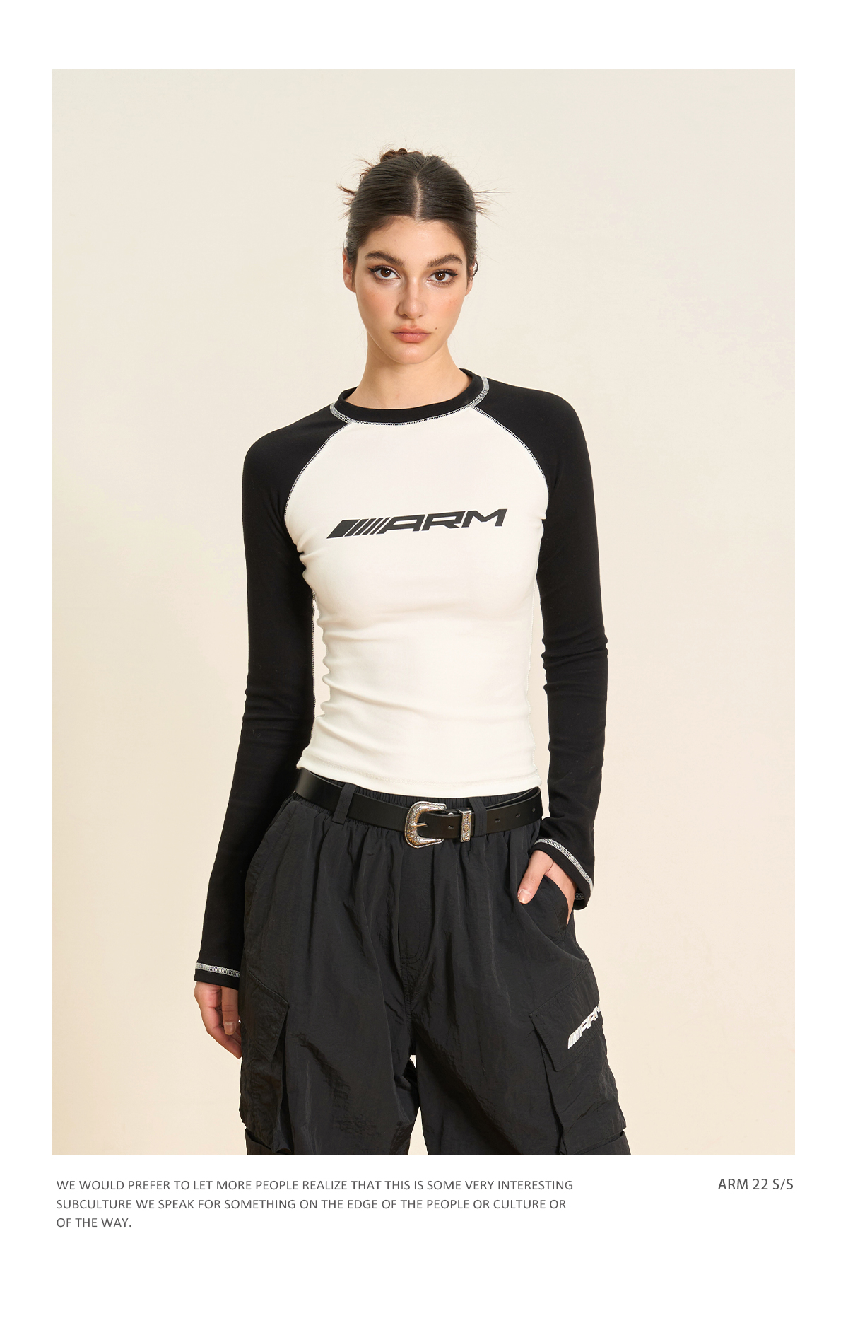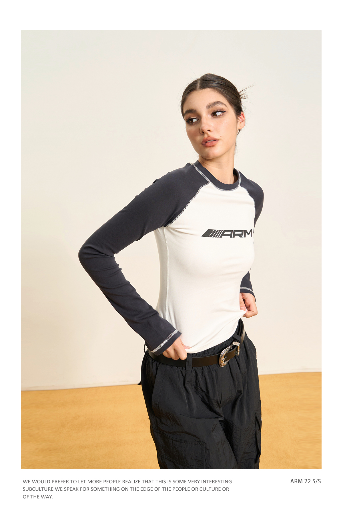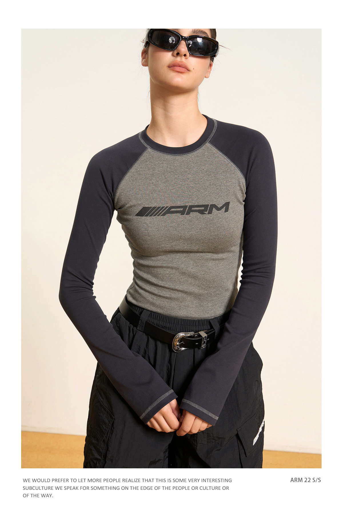 Ariseism 美式复古插肩紧身长袖t恤女2025秋季打底衫修身内搭上衣