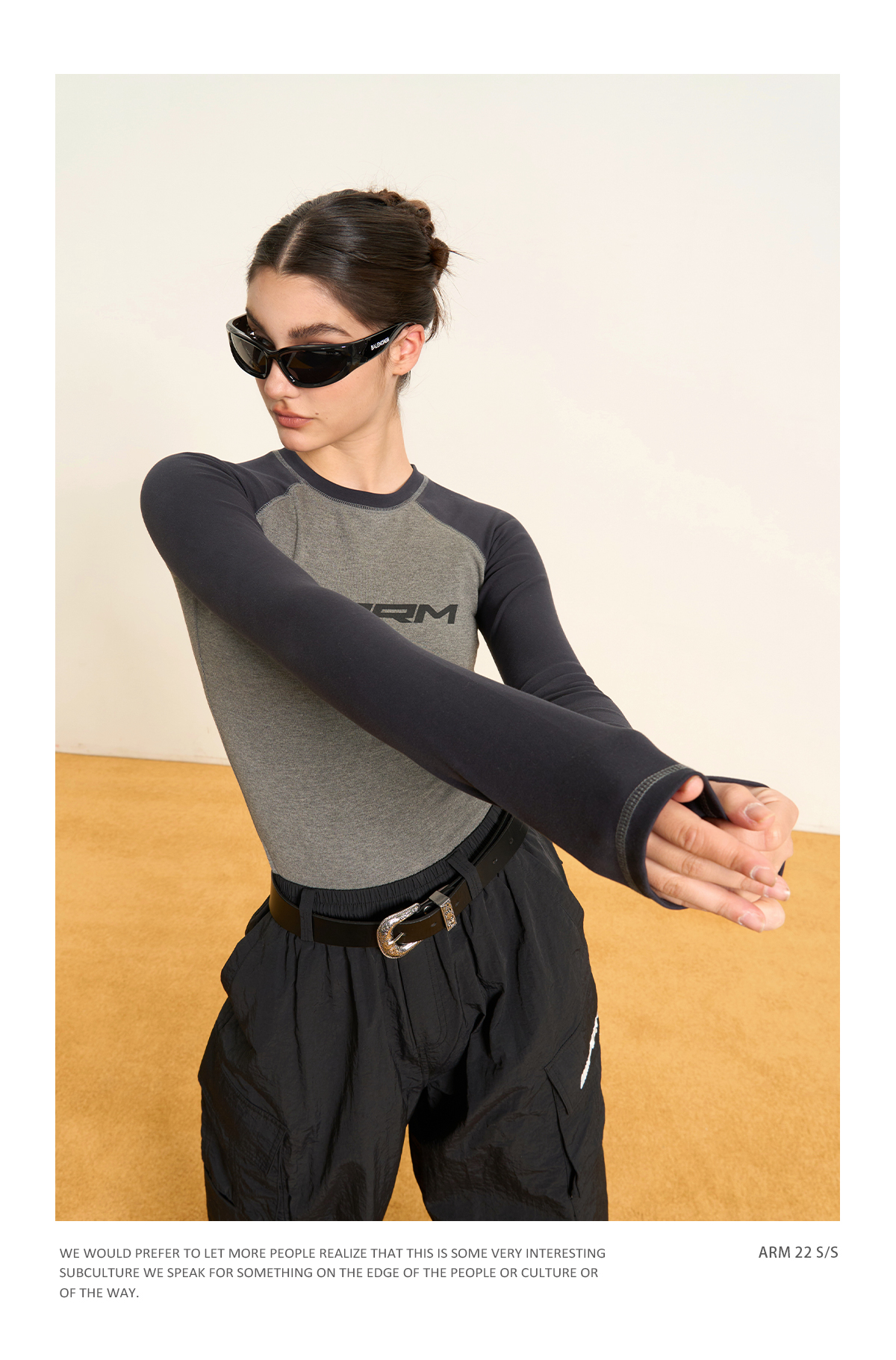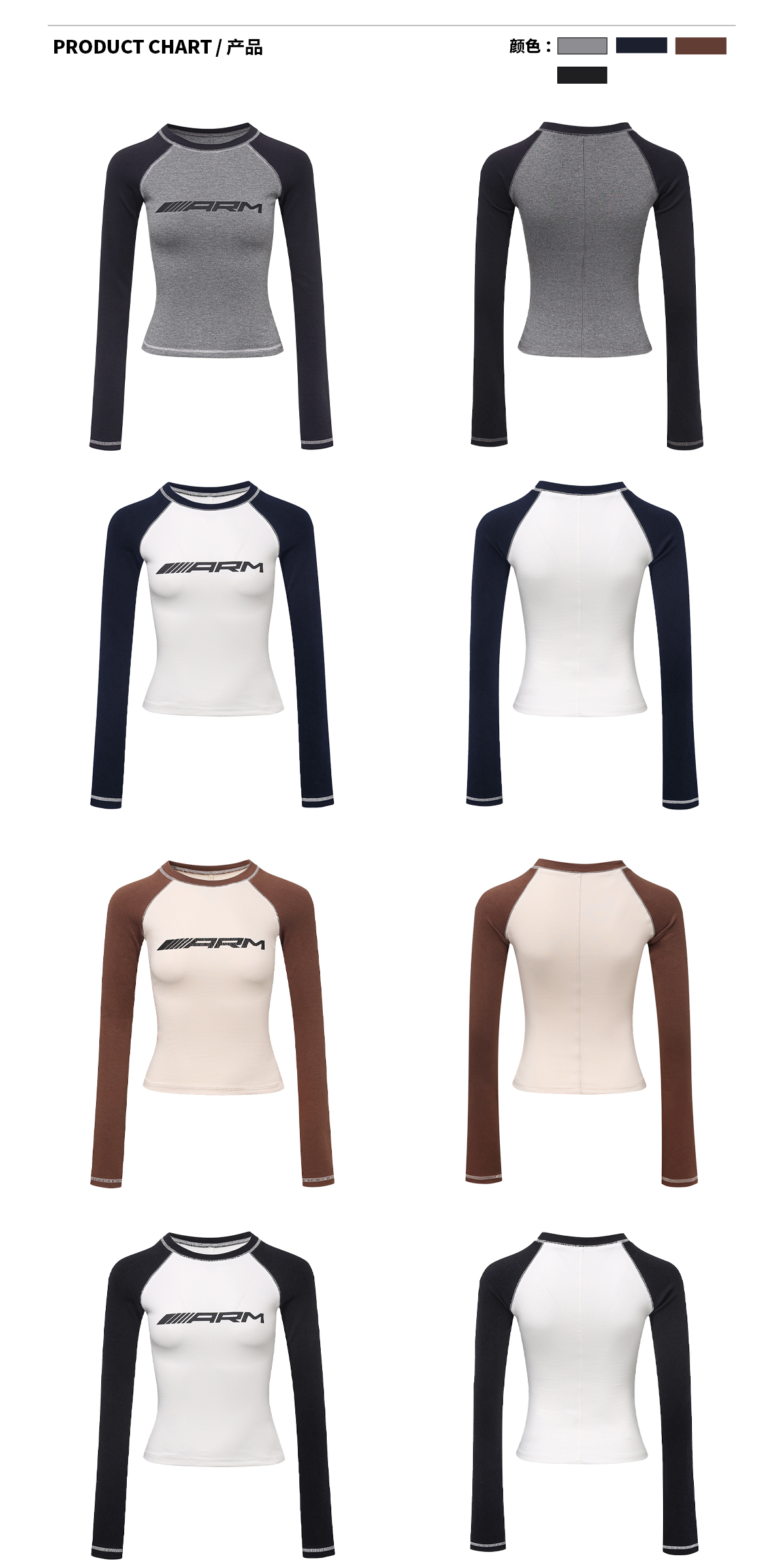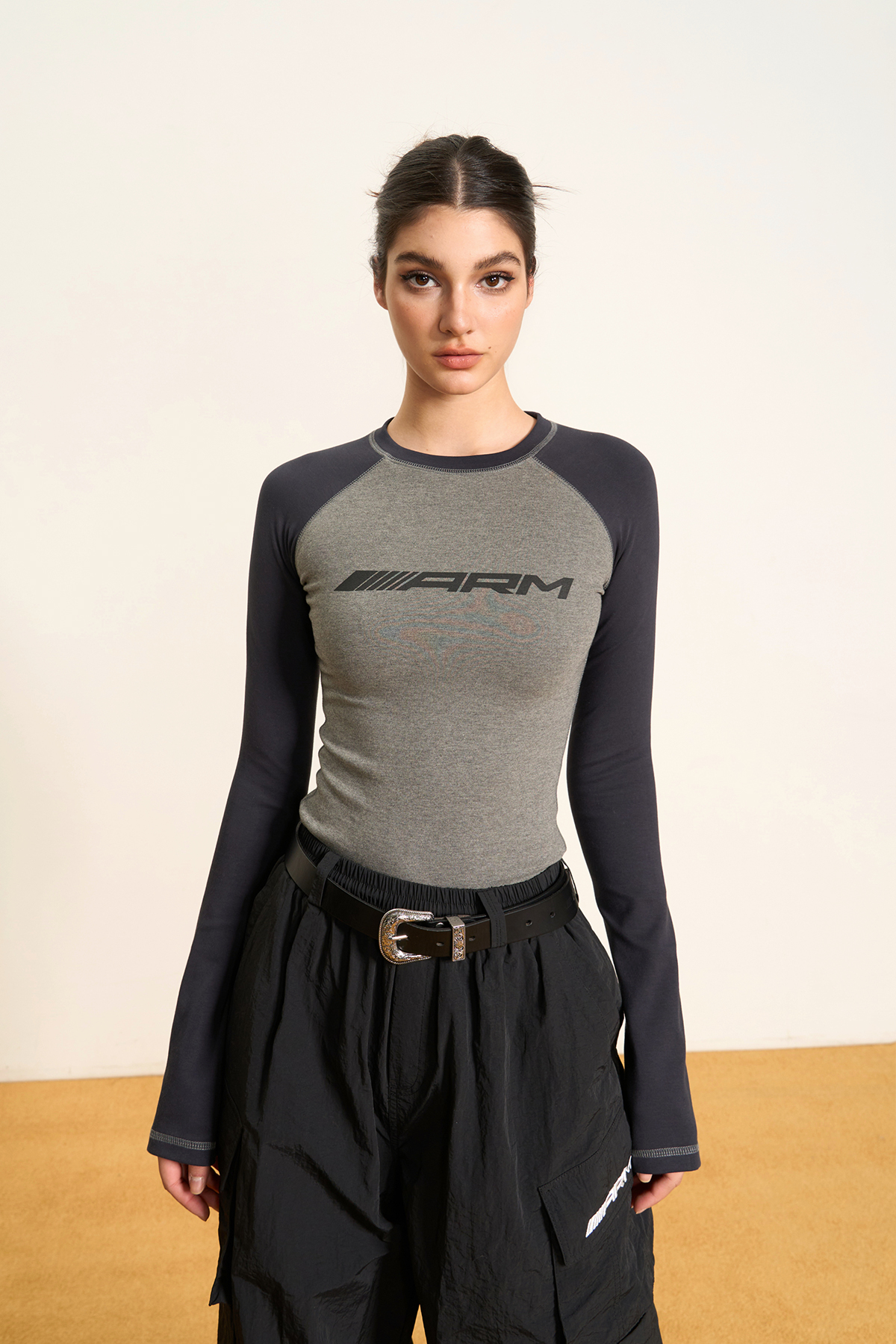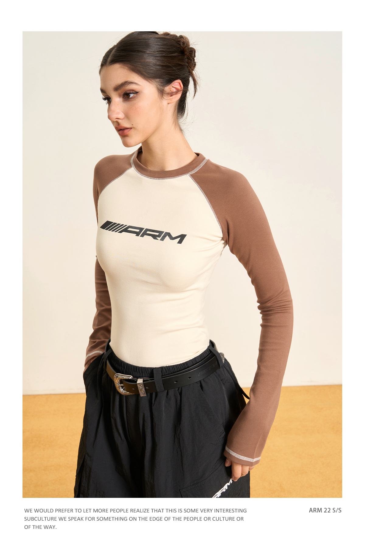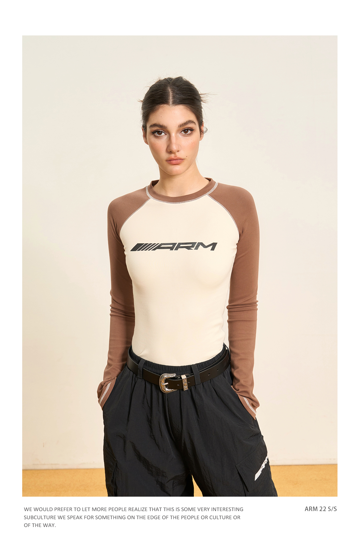 Ariseism 美式复古插肩紧身长袖t恤女2025秋季打底衫修身内搭上衣
