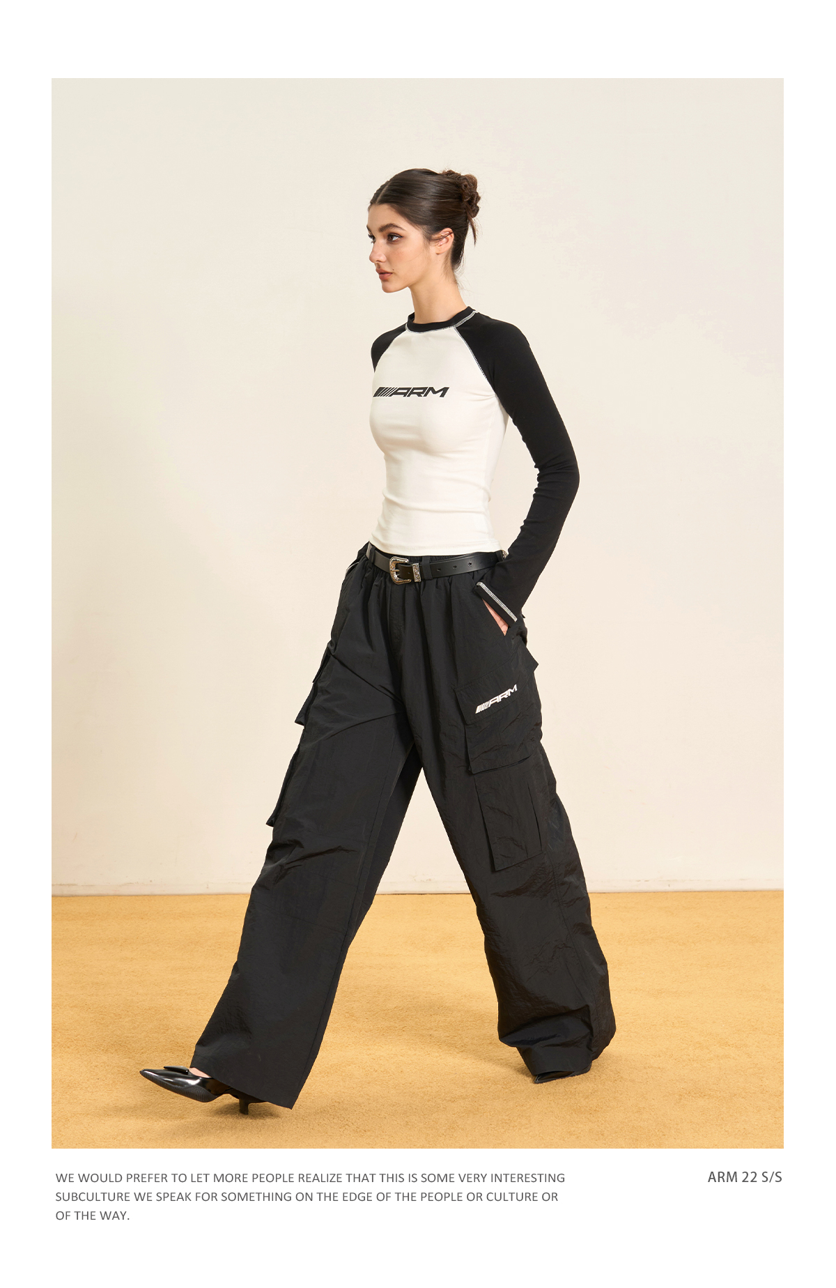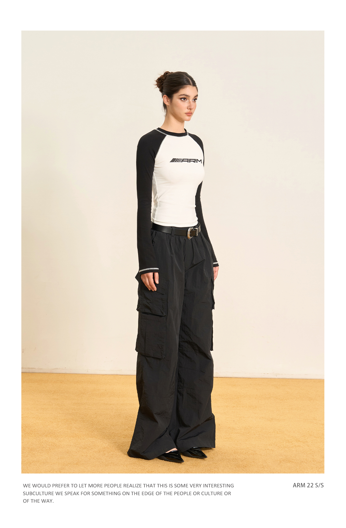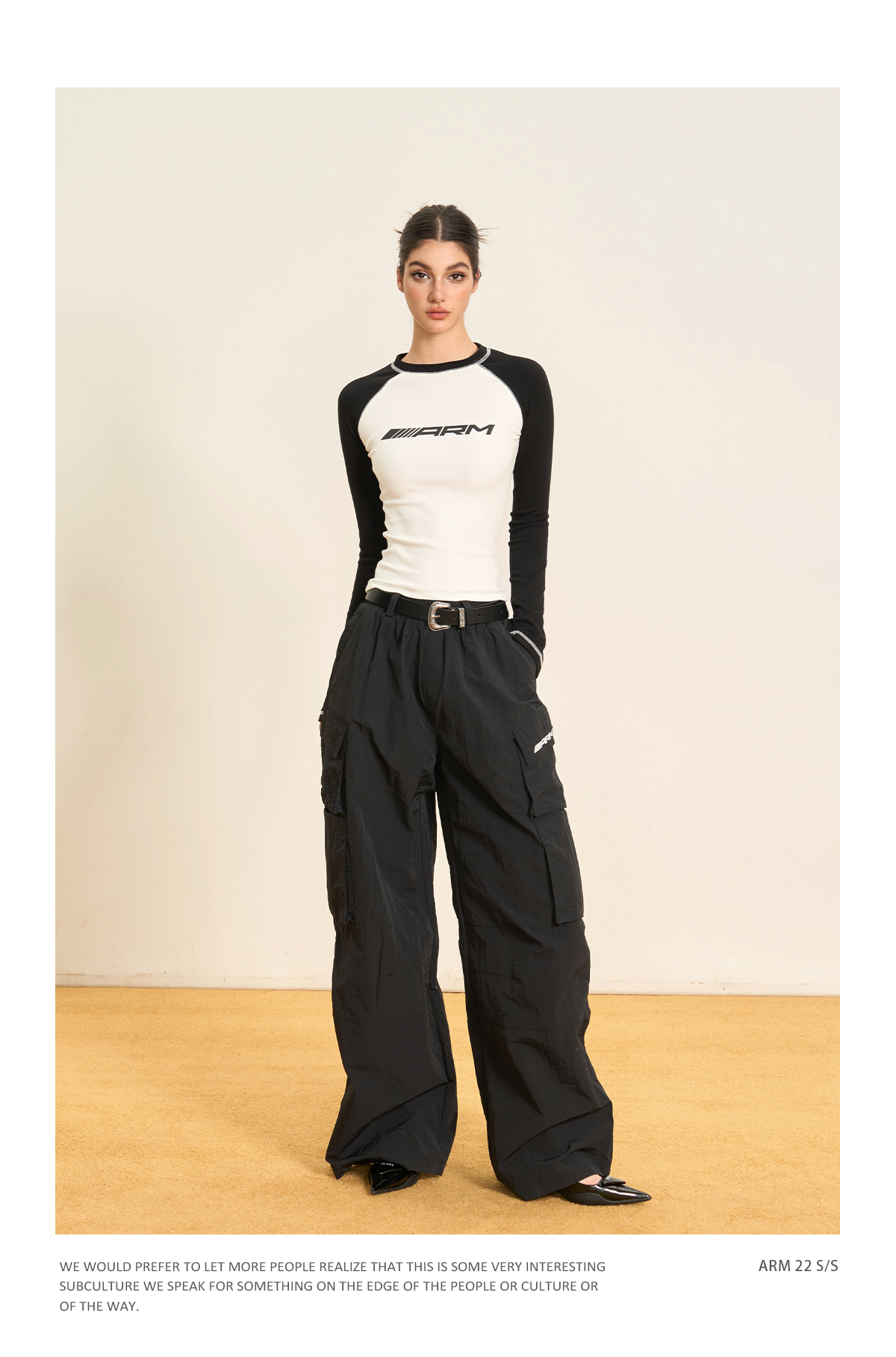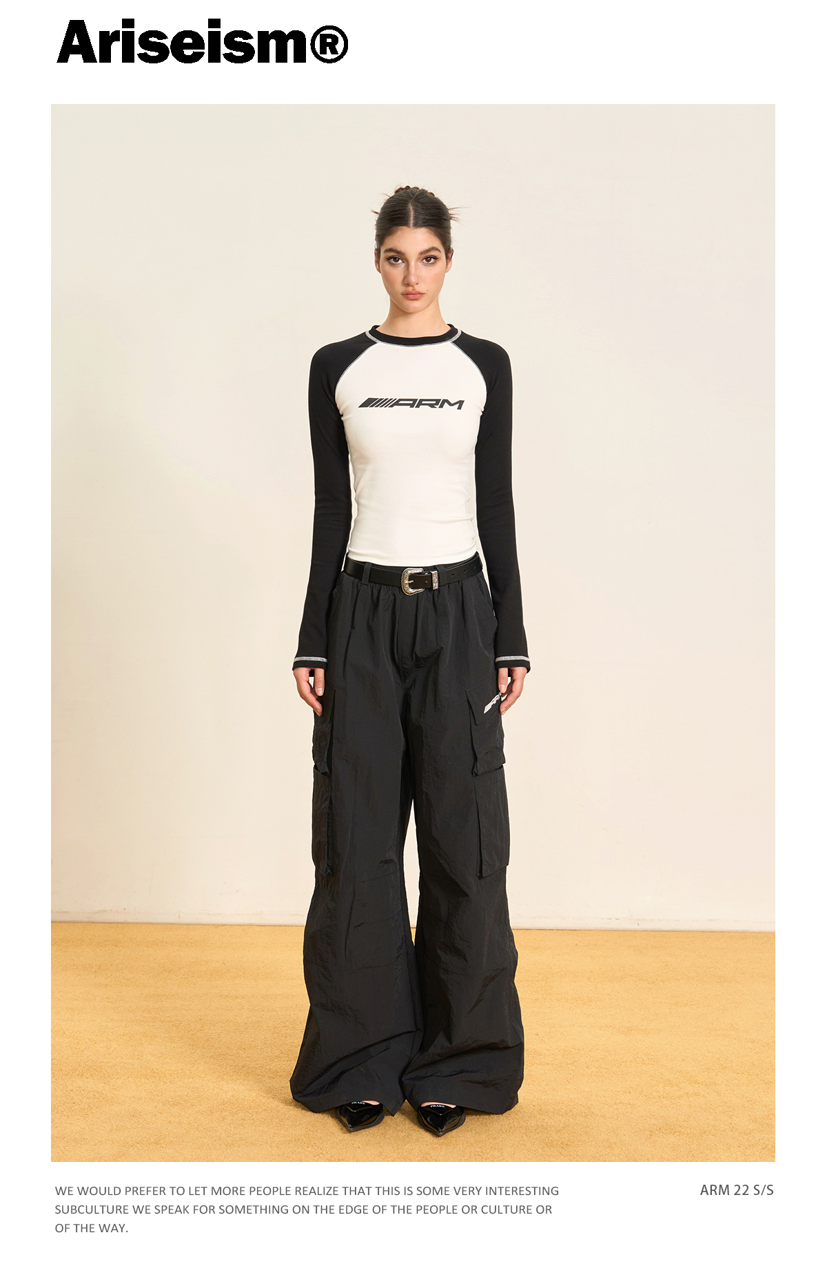 Ariseism 美式复古插肩紧身长袖t恤女2025秋季打底衫修身内搭上衣
