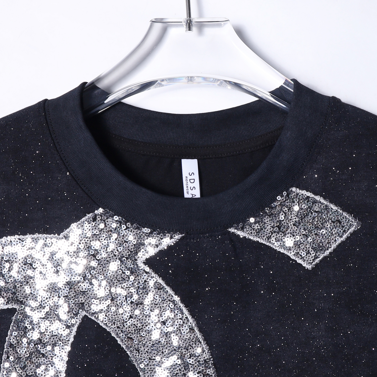 T4207SDSA夏季新款男士痞帅满天星亮片字母圆领短袖T恤百搭时尚上衣潮