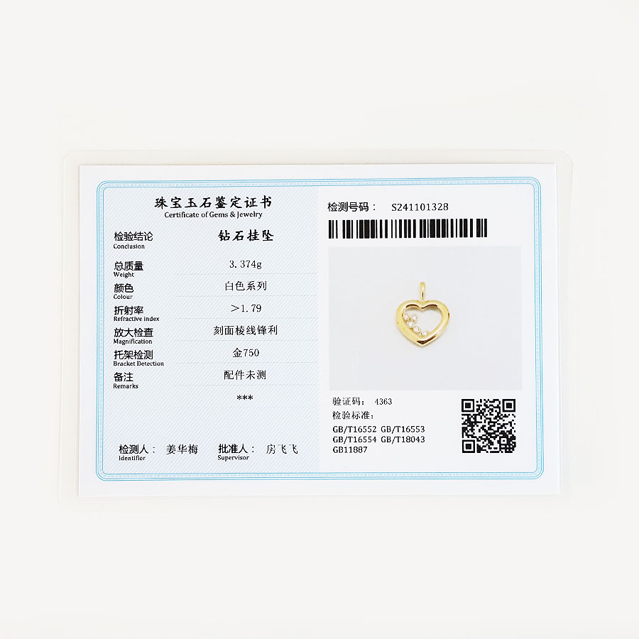 【天然正品】AU750黄金时尚设计款爱心造型钻石吊坠项链20.9*16.3*3.2MM(皆取最大值)女士现售价:3080!181124NJM51