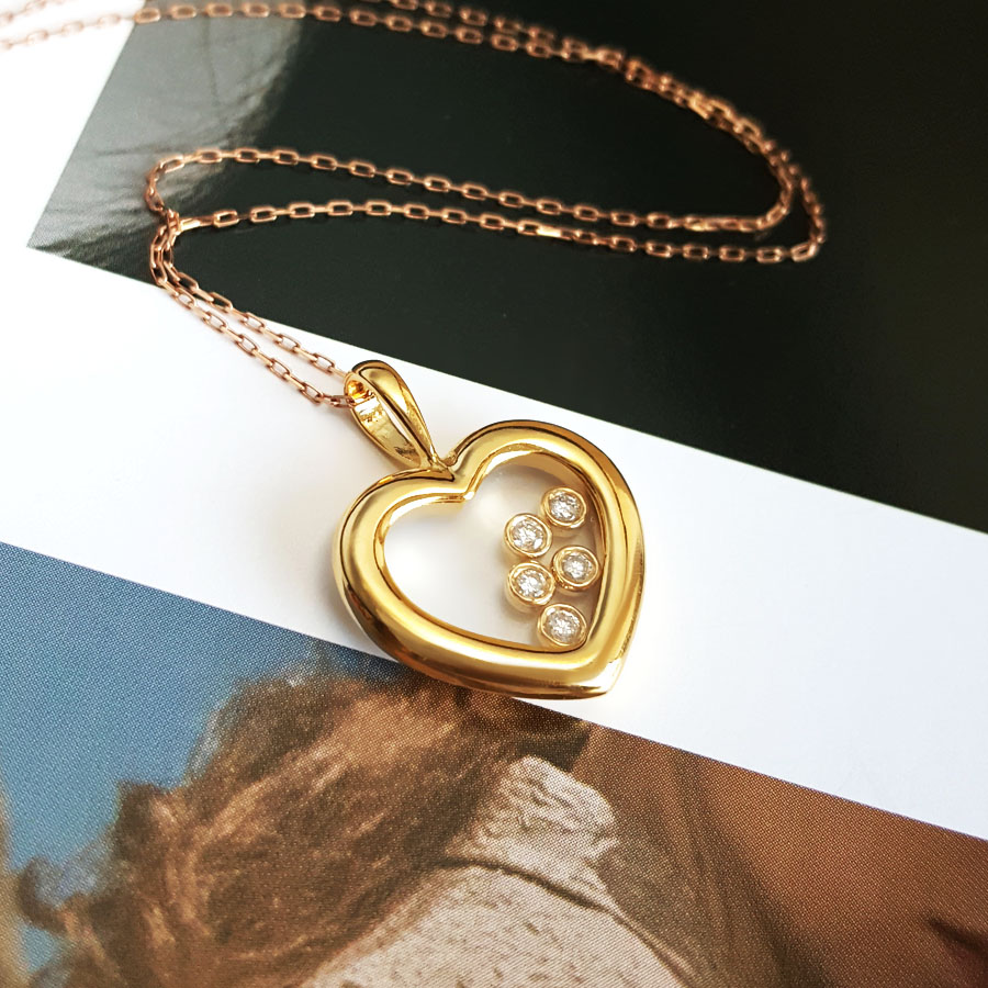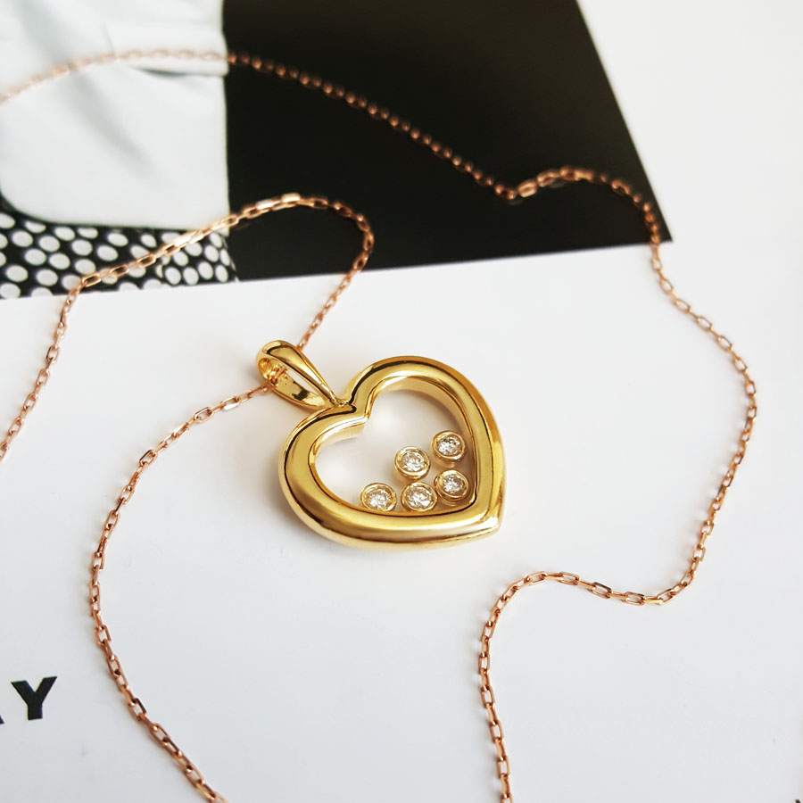 款式 | AU750黄金时尚设计款爱心造型钻石吊坠项链 |