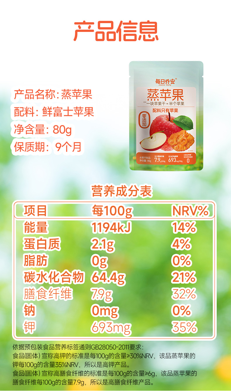 每日乔安蒸苹果干 配料干净 营养健康 商品图3