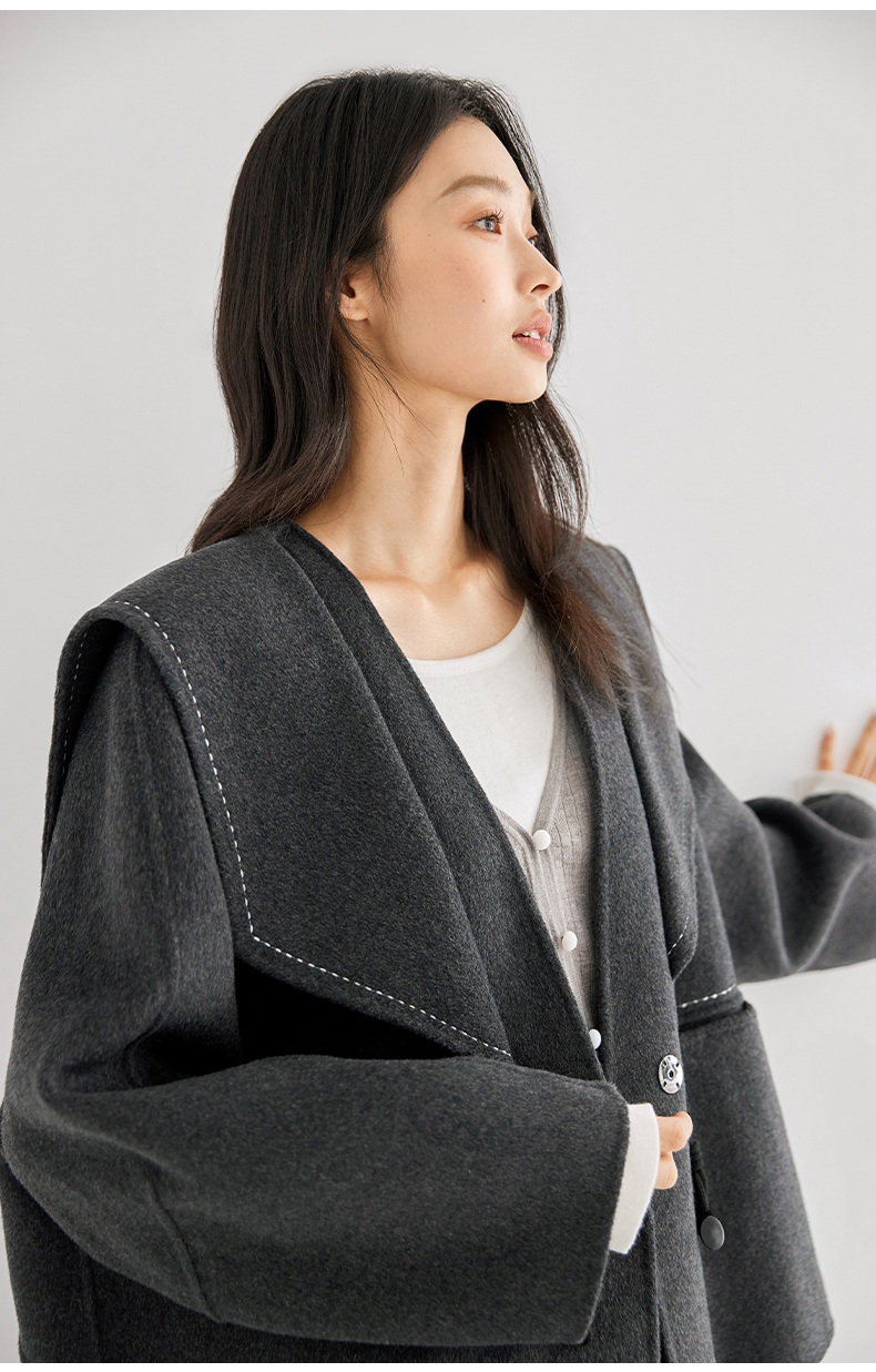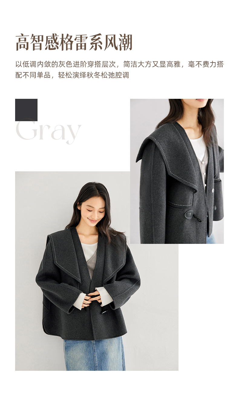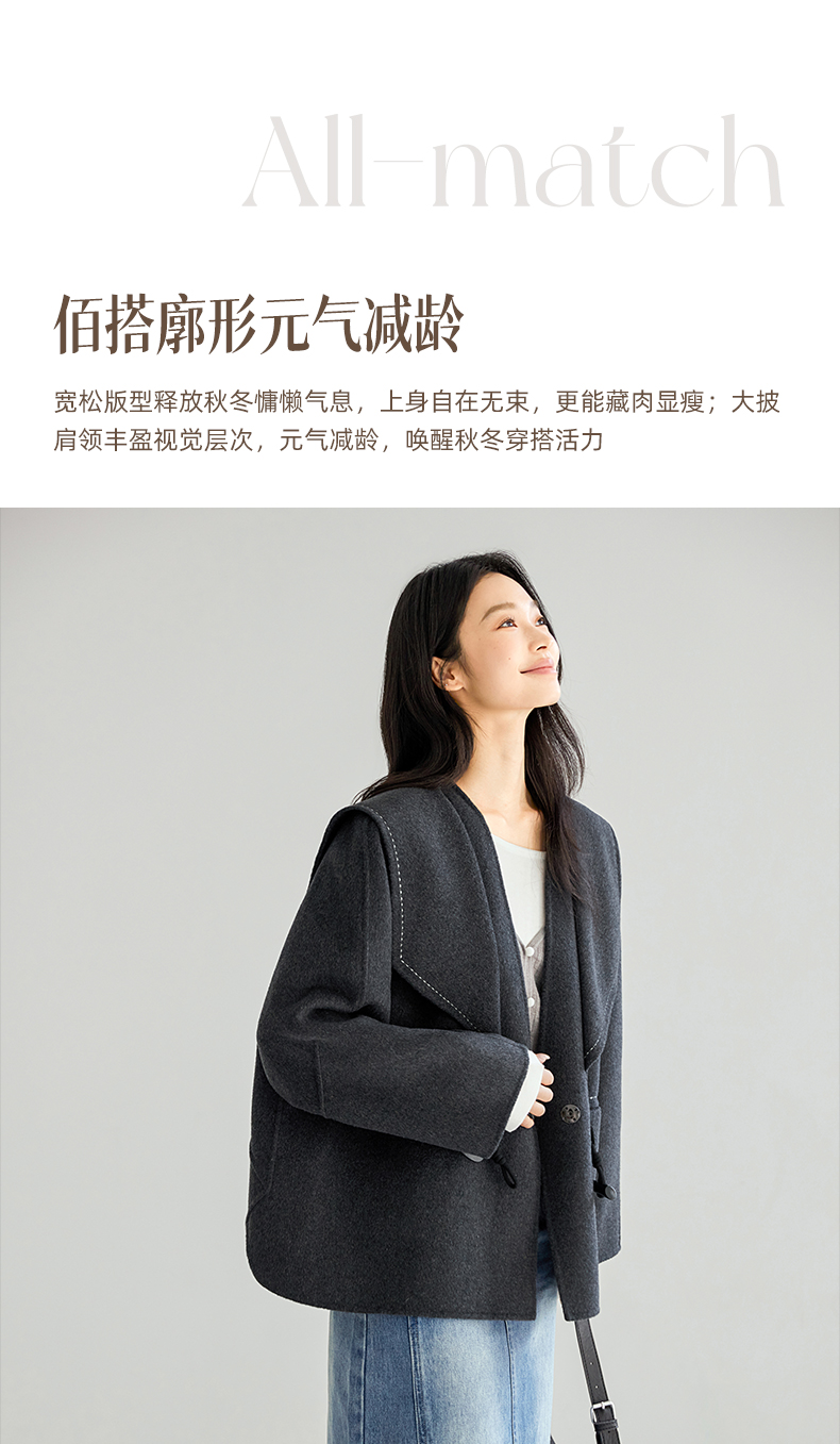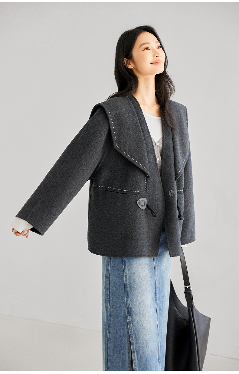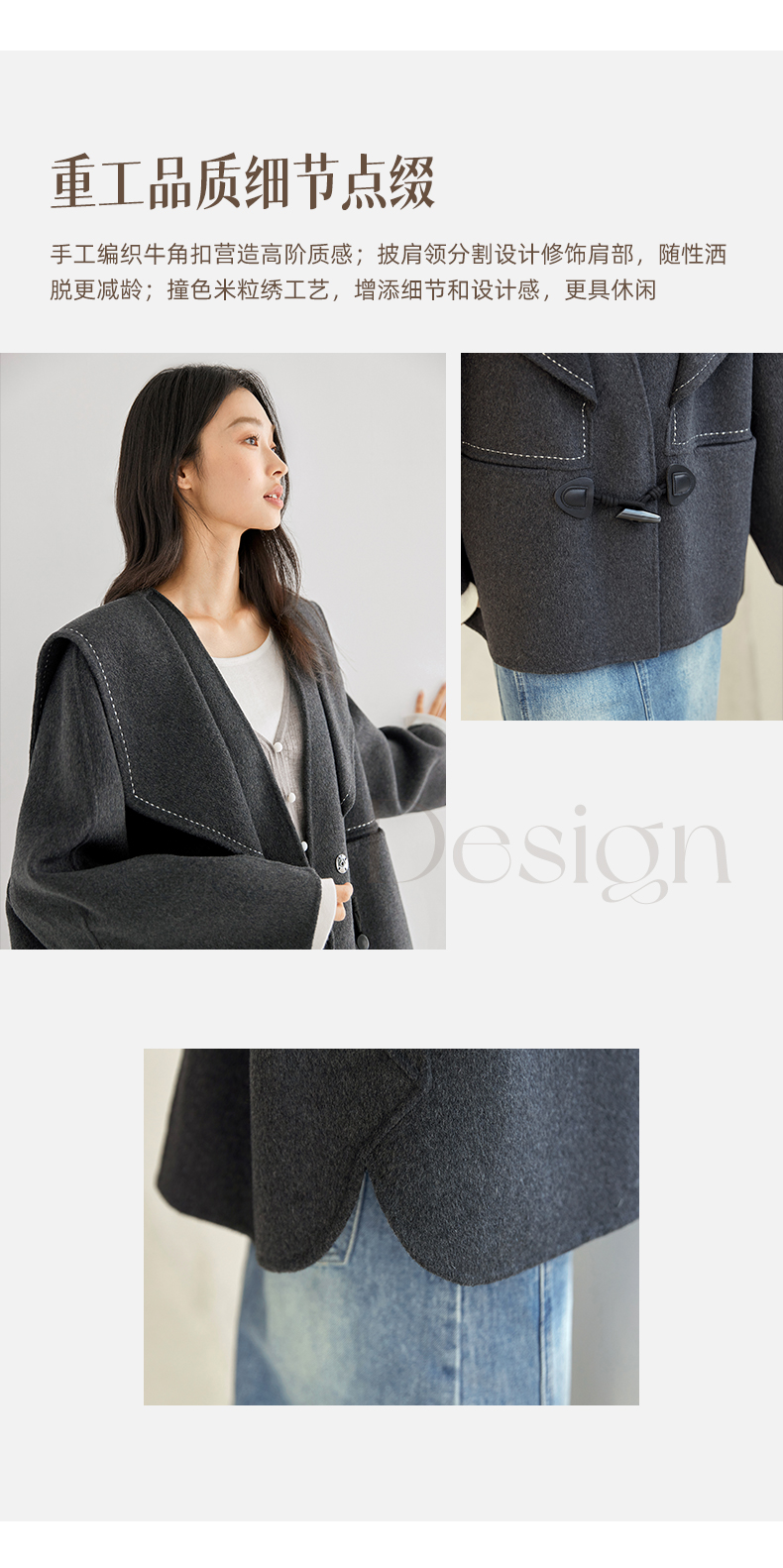 IC 百搭舒适休闲撞色米粒绣双面呢大衣外套女新款高级感上衣