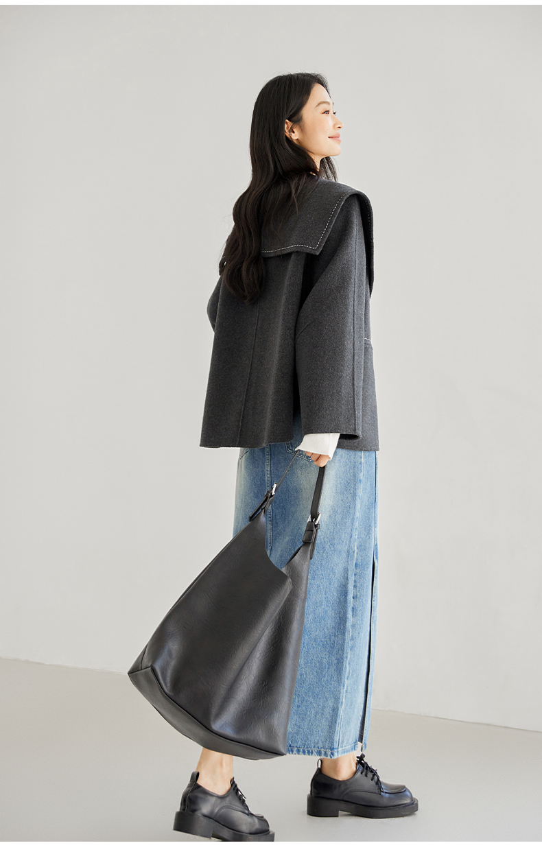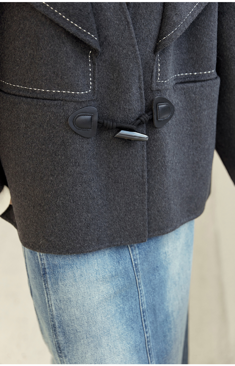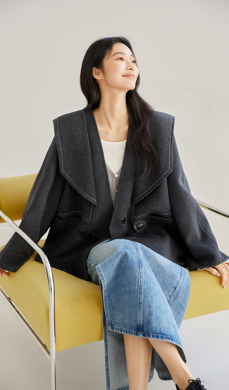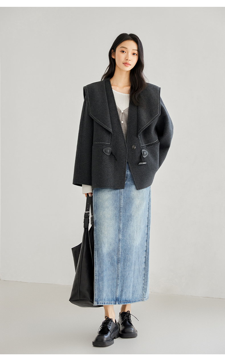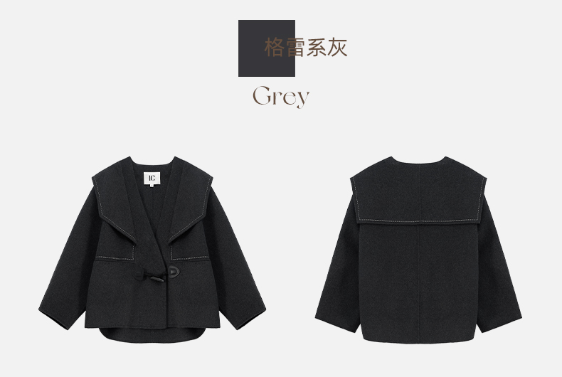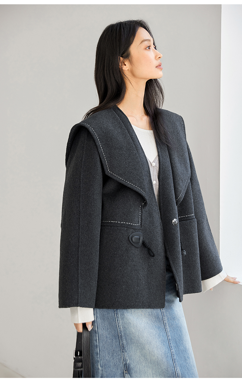 IC 百搭舒适休闲撞色米粒绣双面呢大衣外套女新款高级感上衣