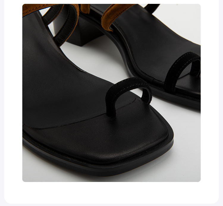 ROMI STUDIO“简约优雅”反绒方头夹趾粗跟一字套趾H百搭拖鞋S3528