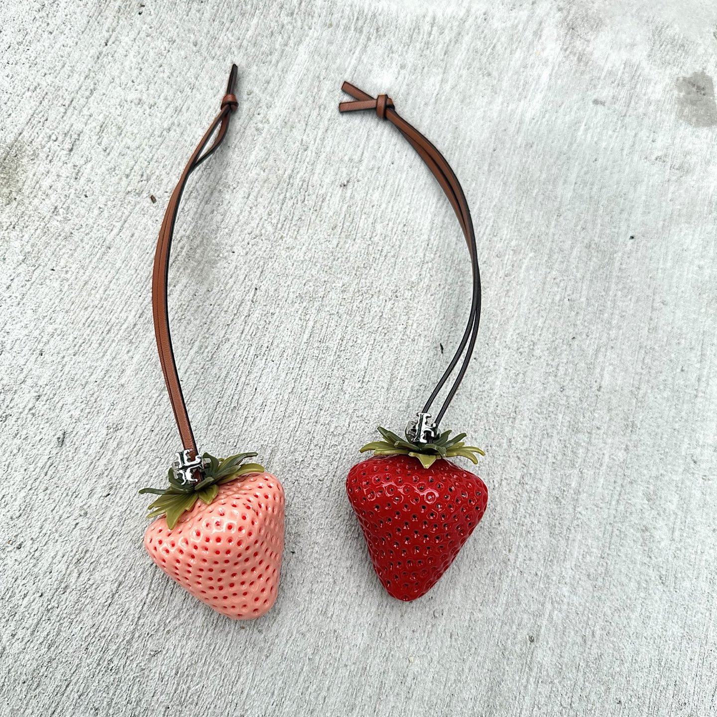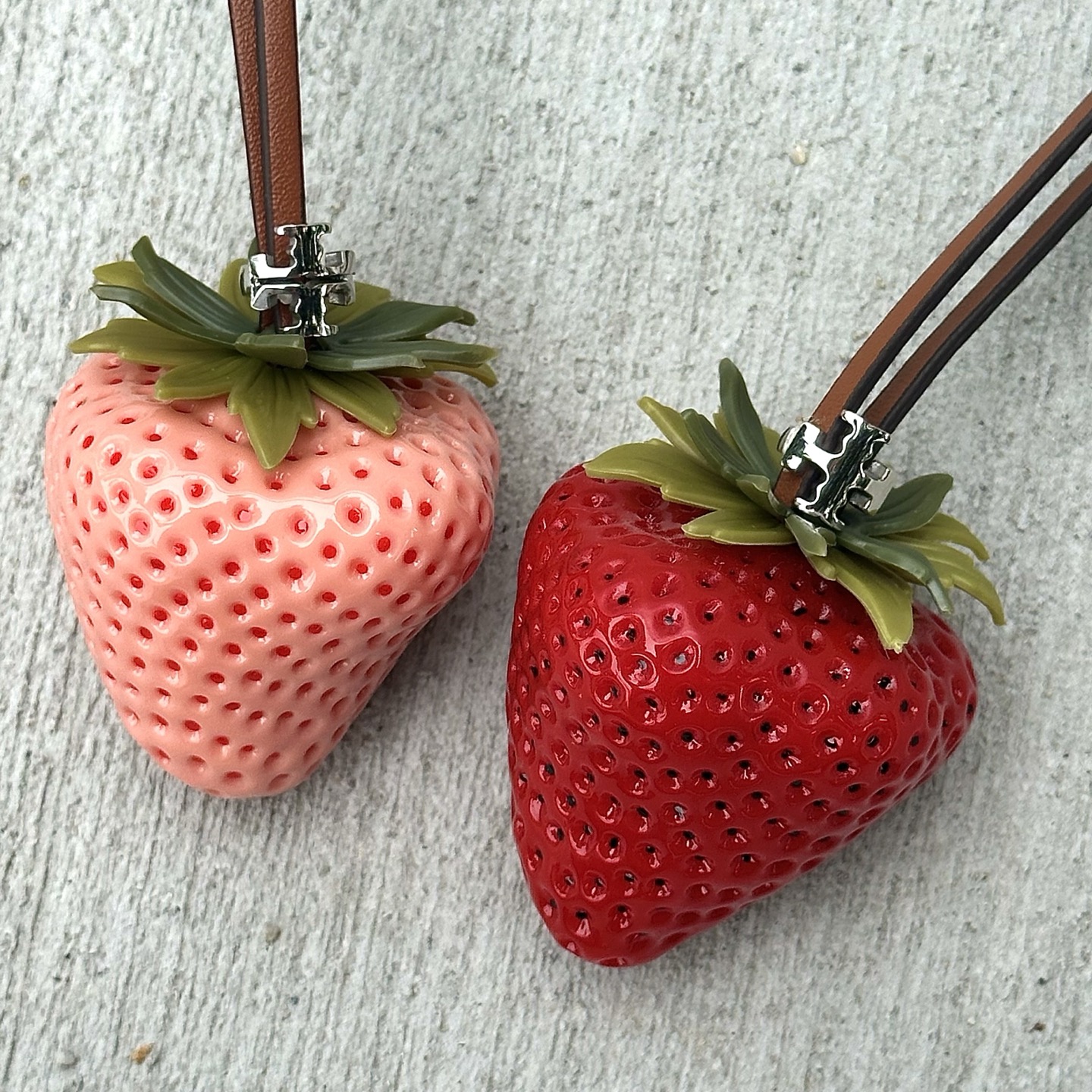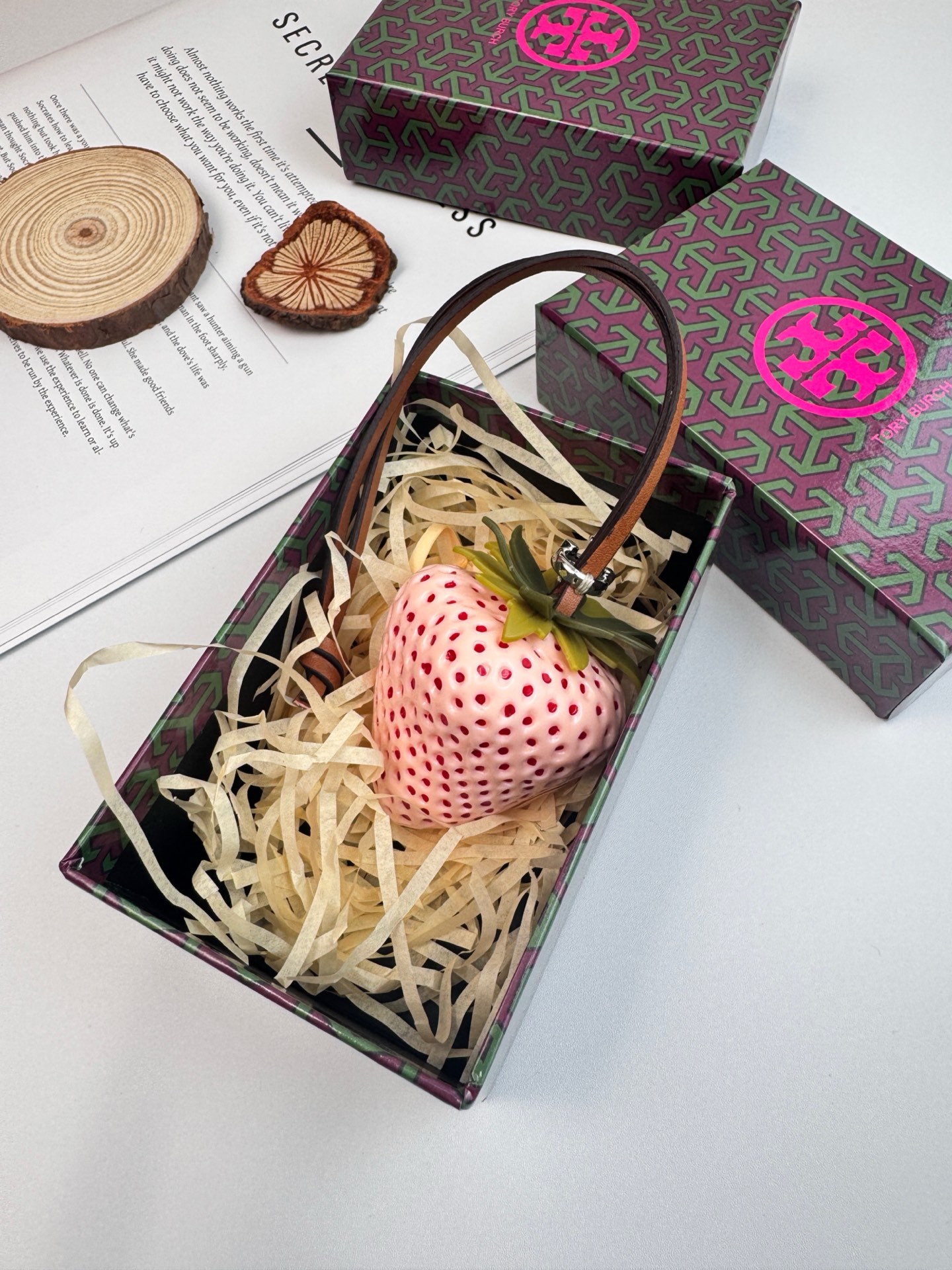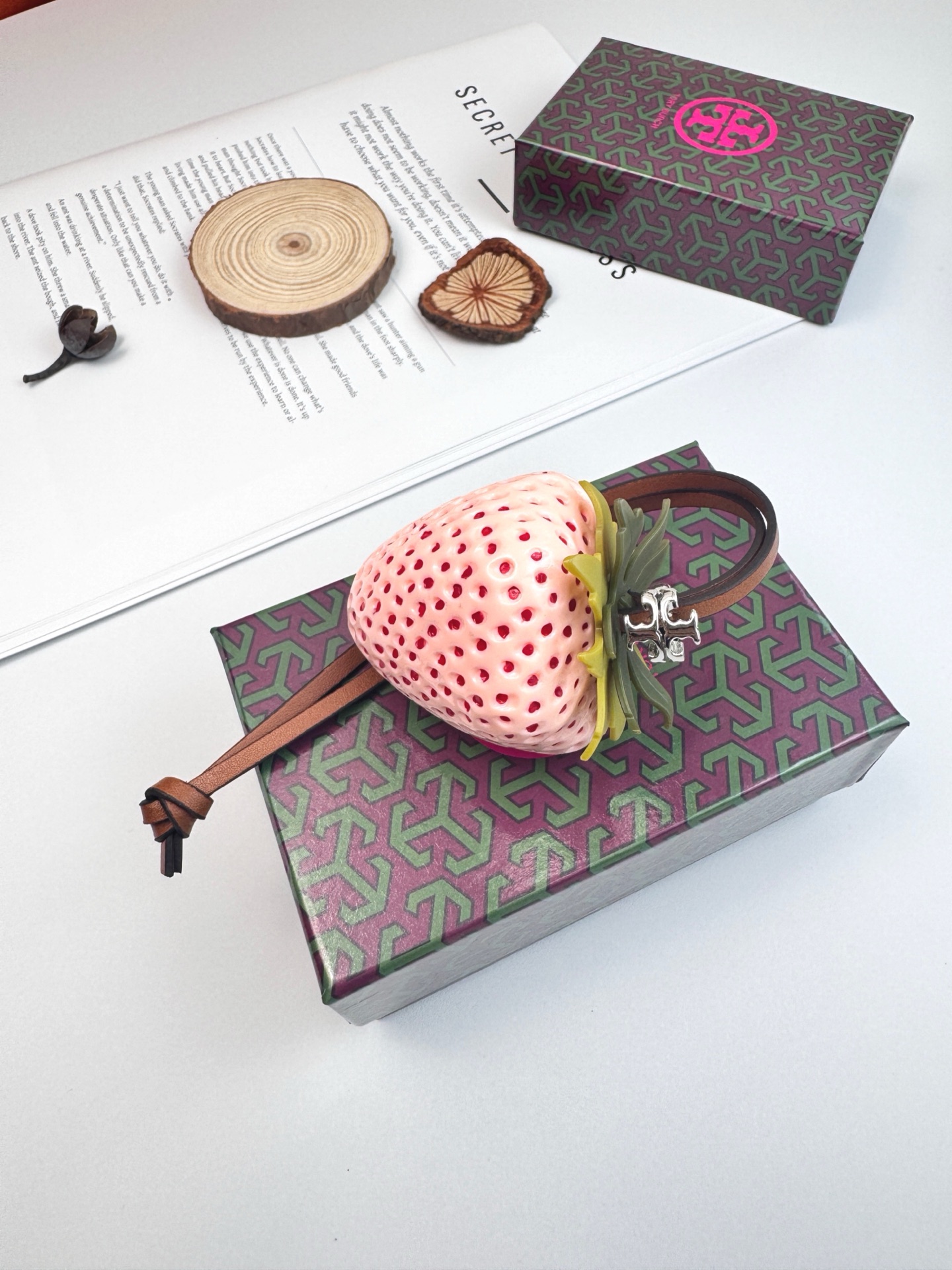 Tory Burch 草莓包挂 它来了它来了! 想一口吃掉的草莓包挂 可可爱爱 霉有烦恼 今年春夏最让我心动的配饰 这波必须按头安利!霉果上浮雕着双T logo 红珐琅光泽就像糖霜一样诱人 叶片栩栩如生 甜酷平衡感拿捏的刚刚好 万物皆可挂的百搭王~ 红色草莓太乖了 奶油草莓好春天 材质:树脂
