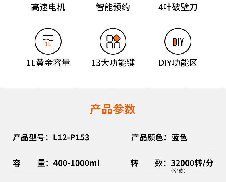 九阳(Joyoung)破壁机家用多功能双打豆浆机果蔬汁料理机L12-P153