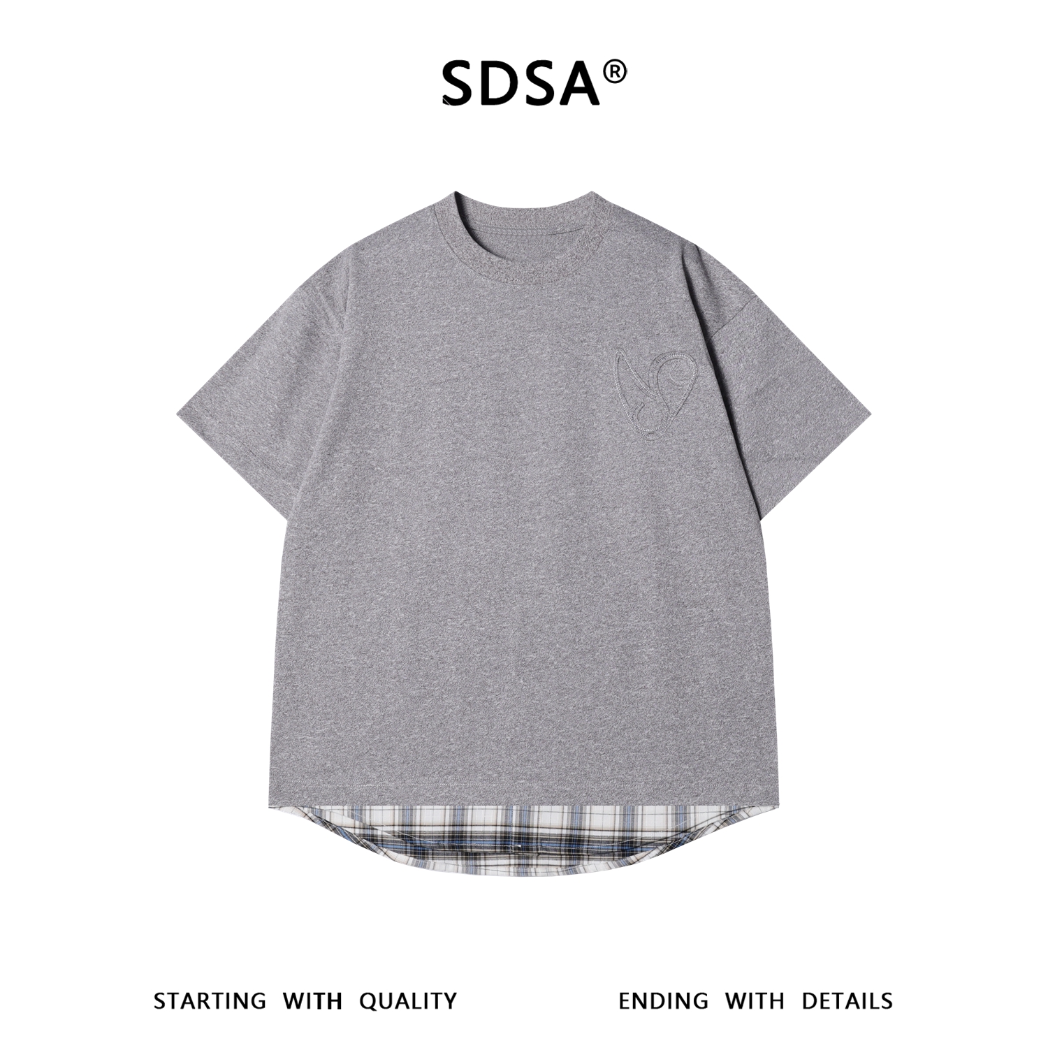 SDSA男装2026新款轻奢韩版爱心下摆拼接假两件短袖T恤百搭时尚潮