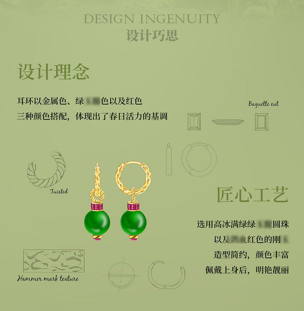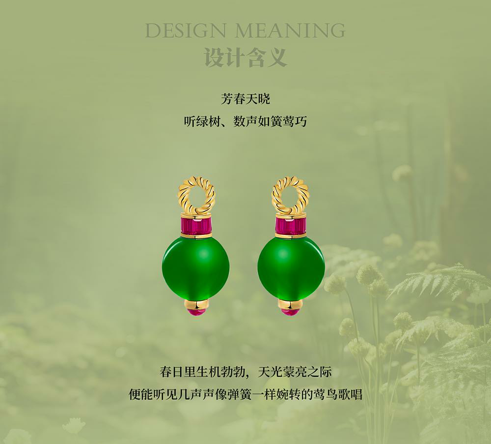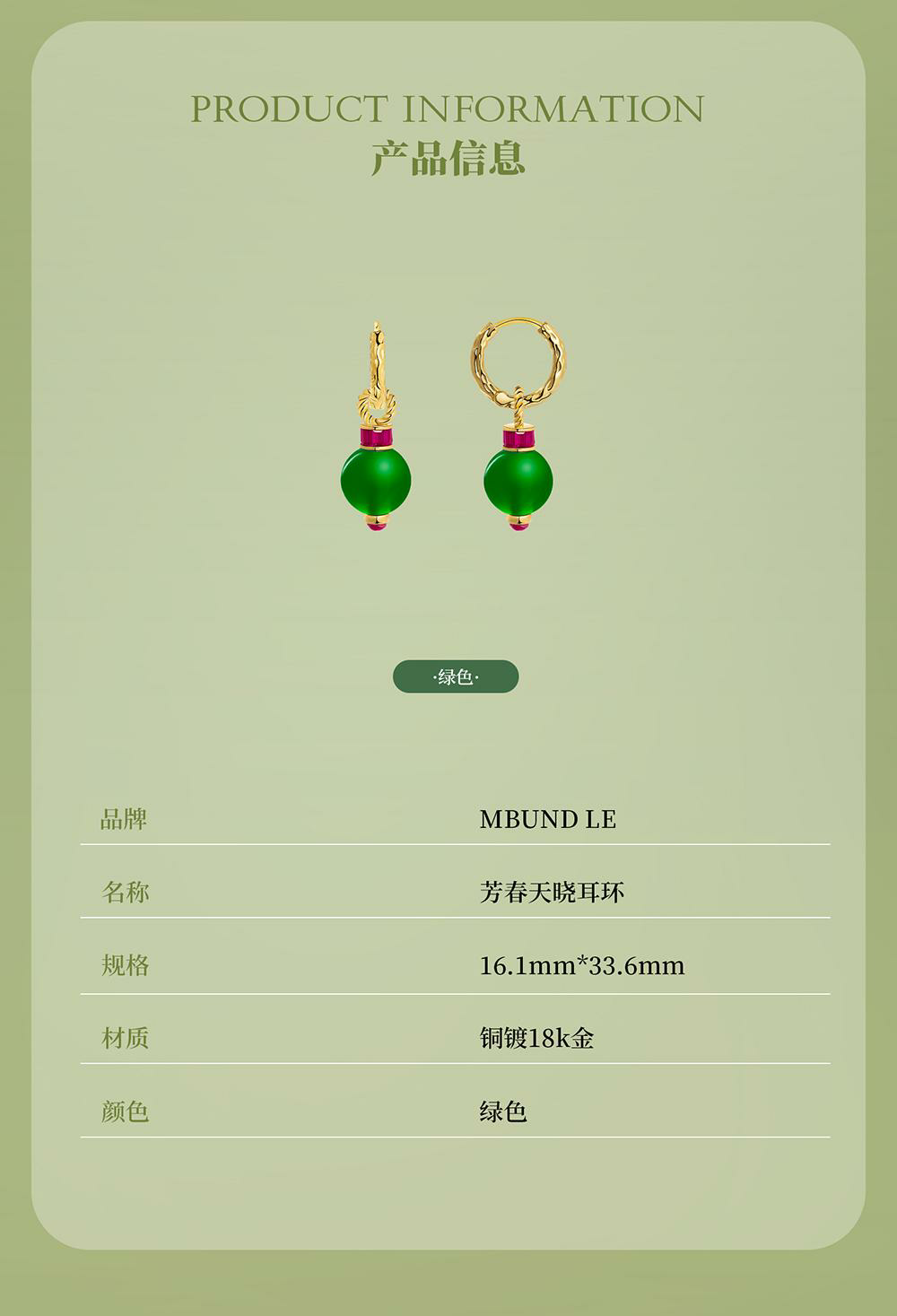 摩邦珠宝 铜合金耳饰 芳春天晓-绿珠子配红珠耳环