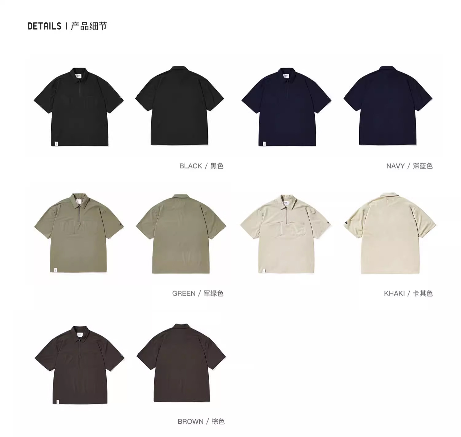 714street日系短袖工装衬衫男高级感夏季polo衫cheanfit纯色衬衫