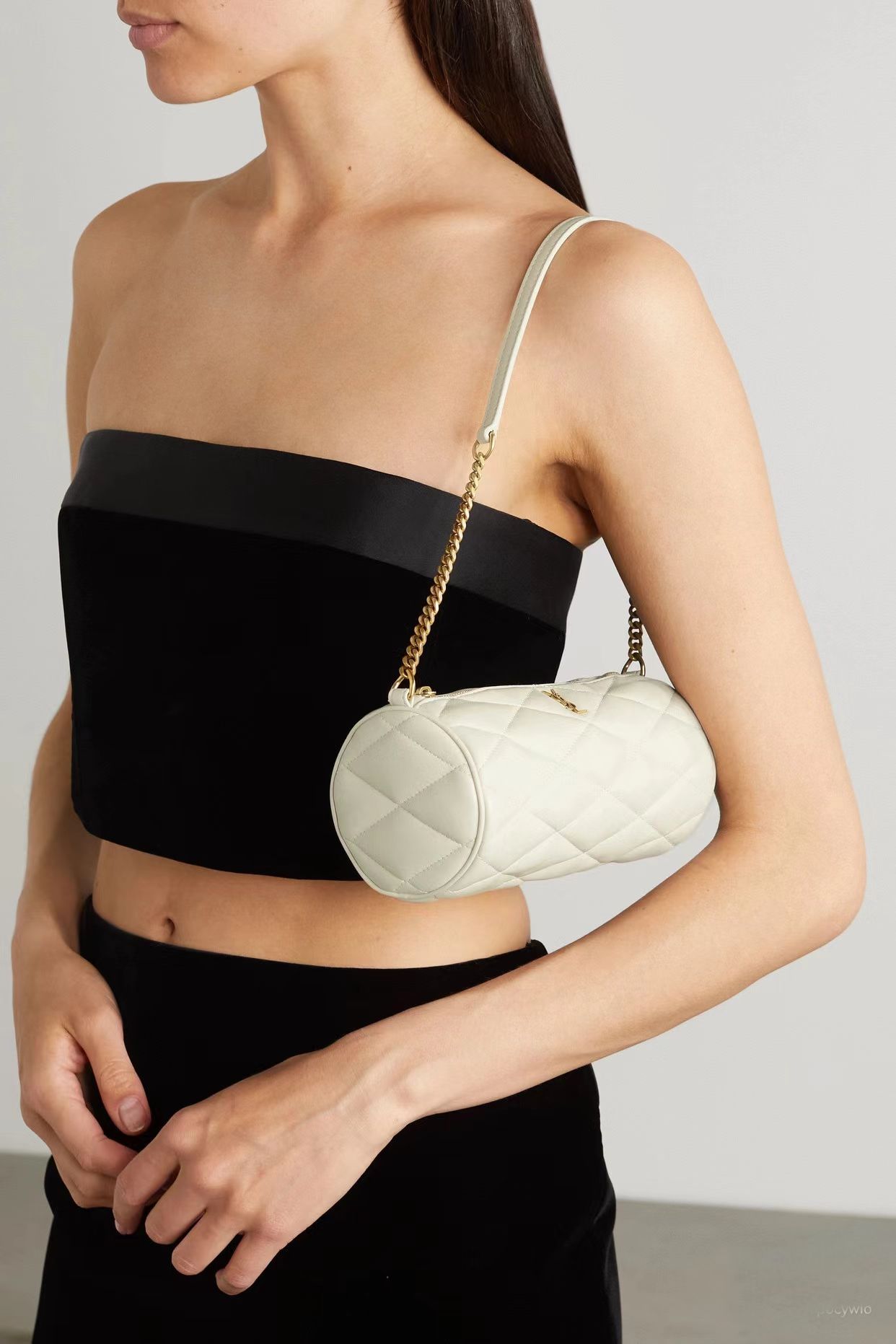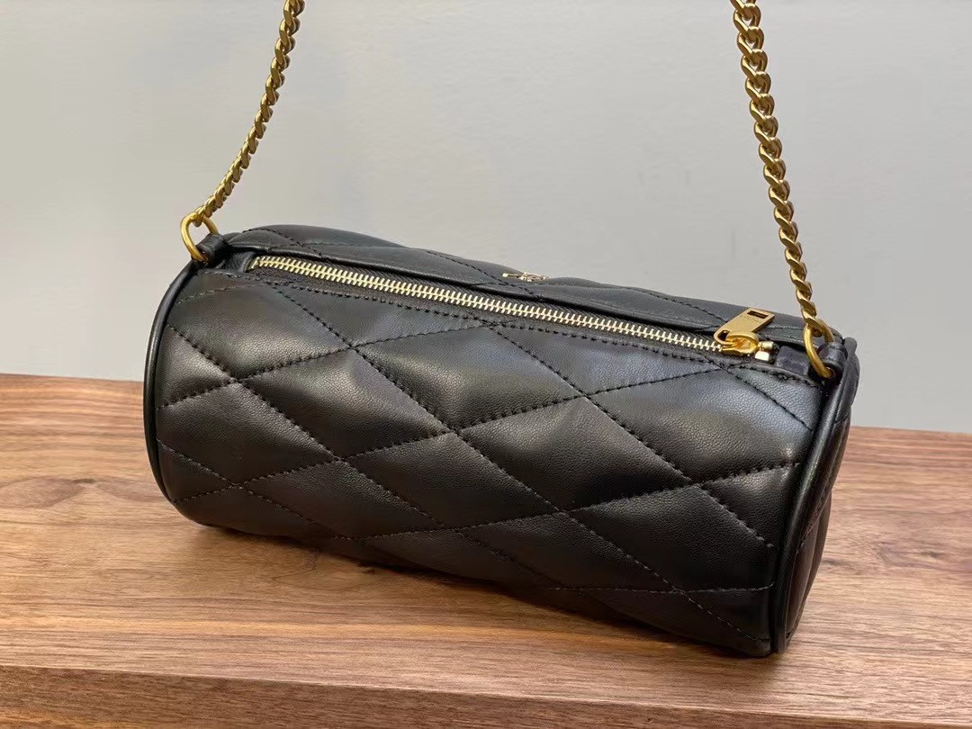 SAINT LAURENT圣罗兰 YSL 金标Logo链条 皮革 圆筒包腋下包单肩包 迷你 女款(CB)