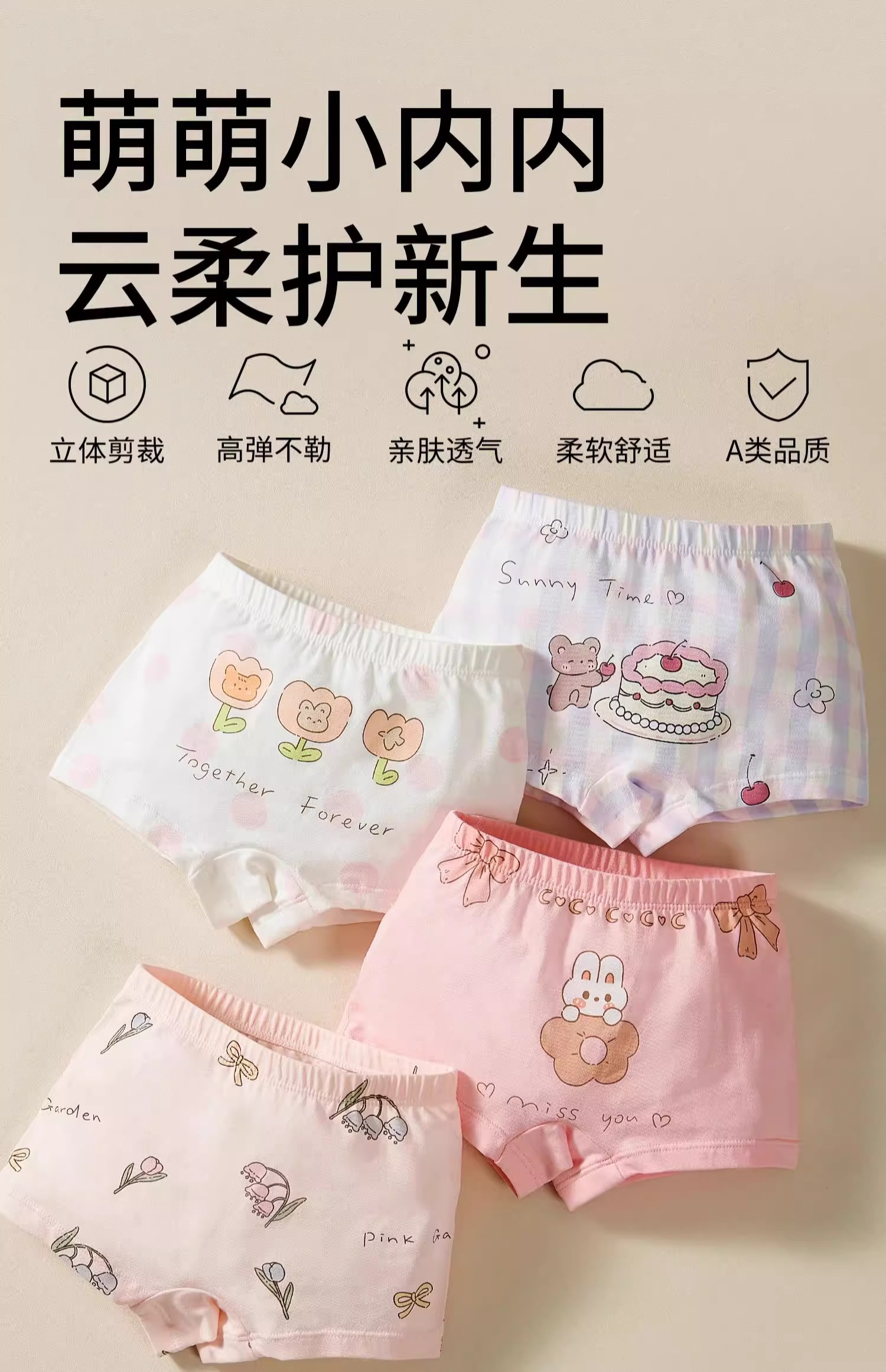 科巢女童内裤平角纯棉儿童中大童宝宝小女孩四角全棉短裤不夹屁股