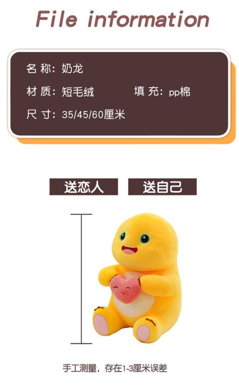 新款热销小奶龙毛绒玩具爱心奶龙可爱儿童节日公仔超萌款抱枕