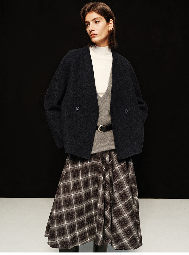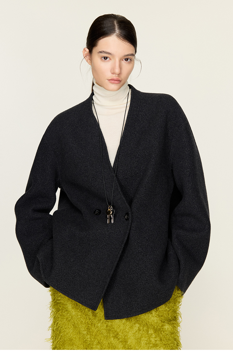 N°28 山羊绒毛呢外套女士秋冬宽松廓形百搭气质通勤短款呢子大衣8855A1D730