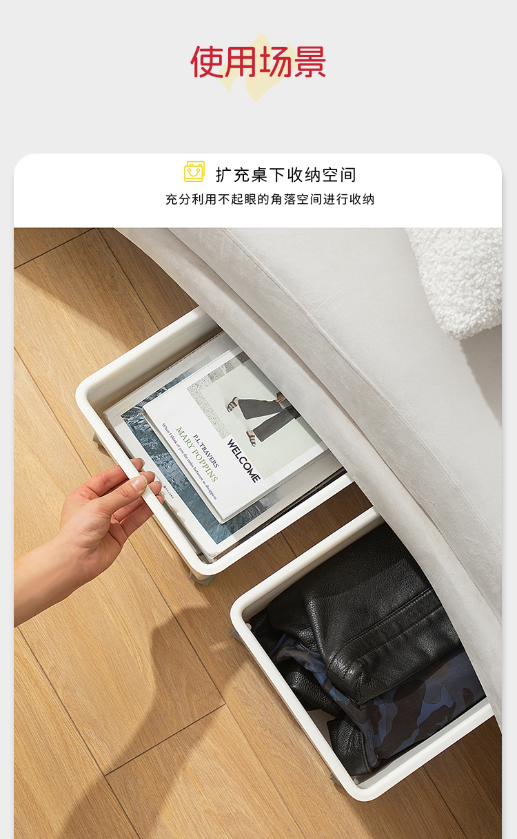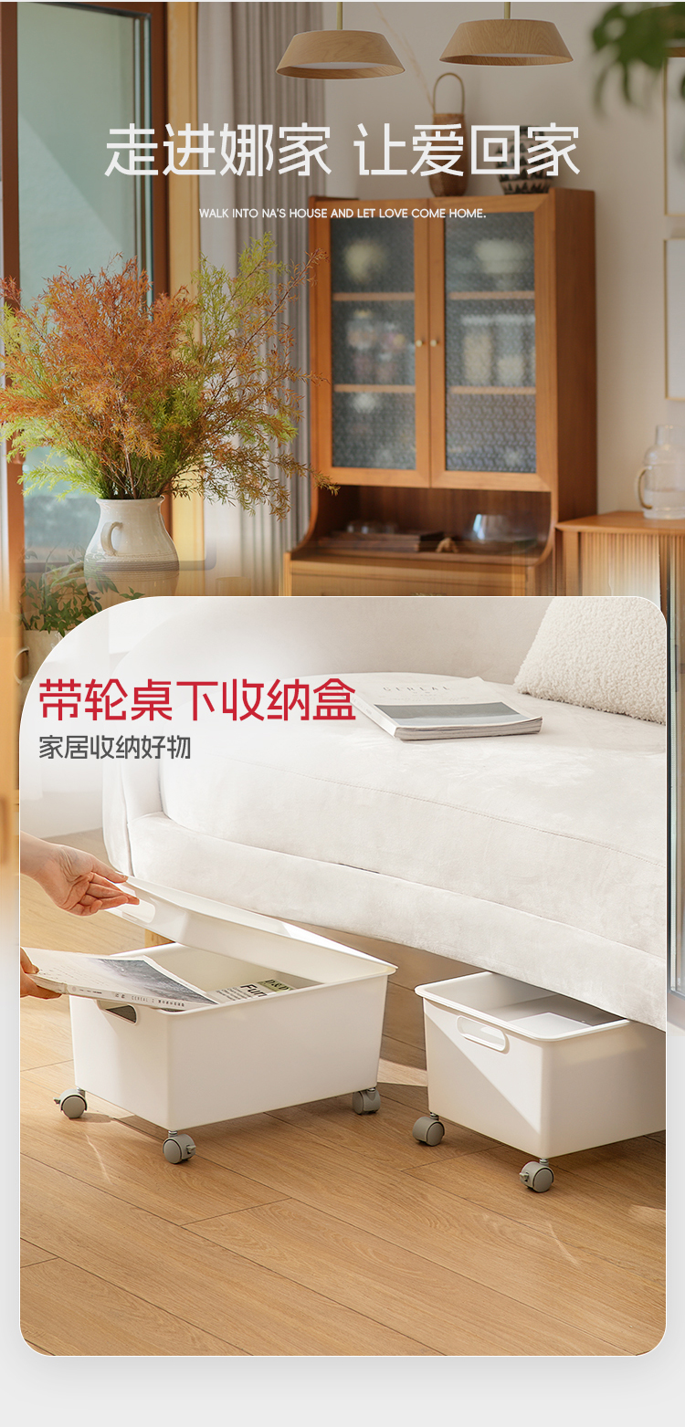 【白色矮款/高款】娜家带滑轮大容量杂物塑料收纳箱