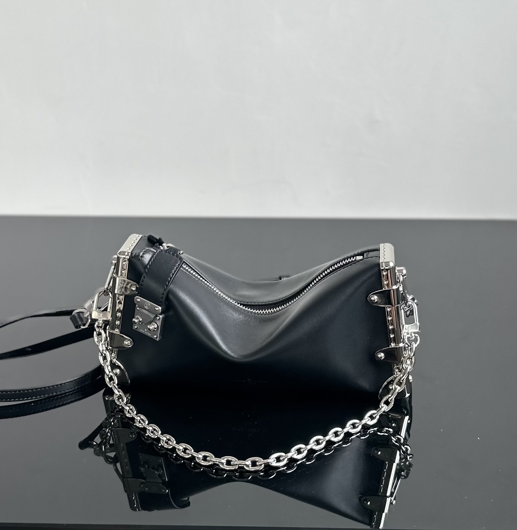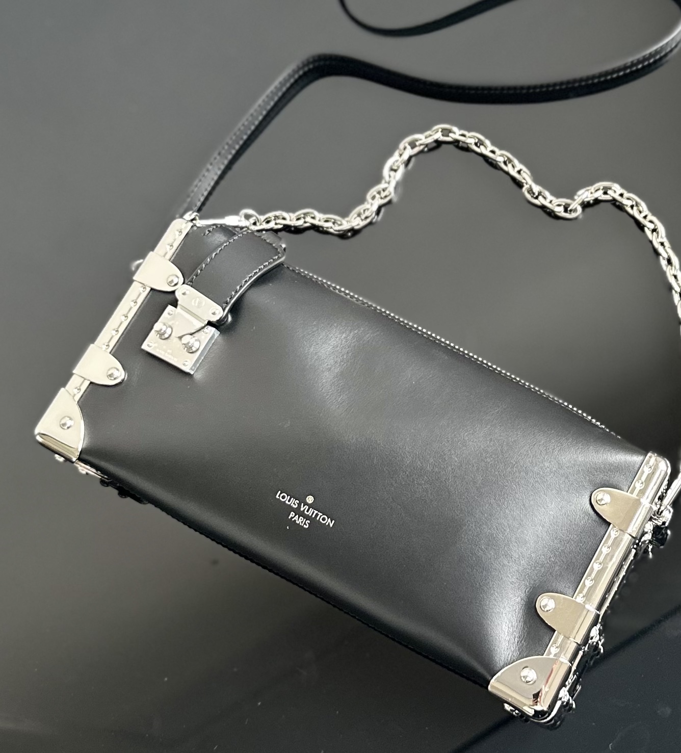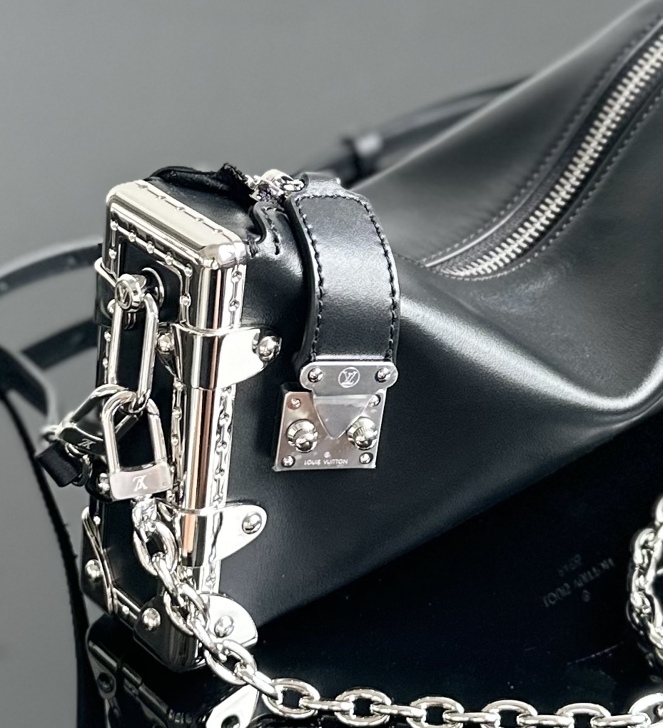 质感满分的柔软牛皮, 加上铆钉边框和金属S-lock锁扣, 简直是前卫摇滚风的完美演绎! 链条和皮革肩带 不管是斜挎还是单肩背, 都能轻松hold住各种场合! 尺寸刚刚好,23x12x4厘米, 日常出行或者小聚会都超实用。 而且,这还是我们女神刘亦菲代言的同款哦! 跟偶像用一样的好物,心情都美美哒~ 快来一起get明星同款,做个时髦精吧。