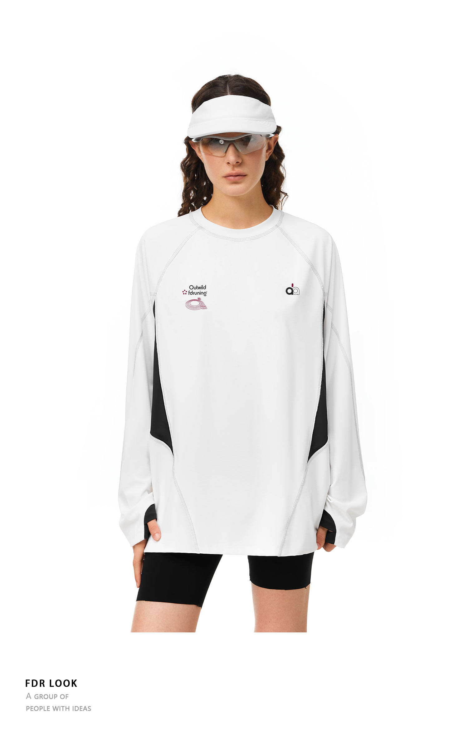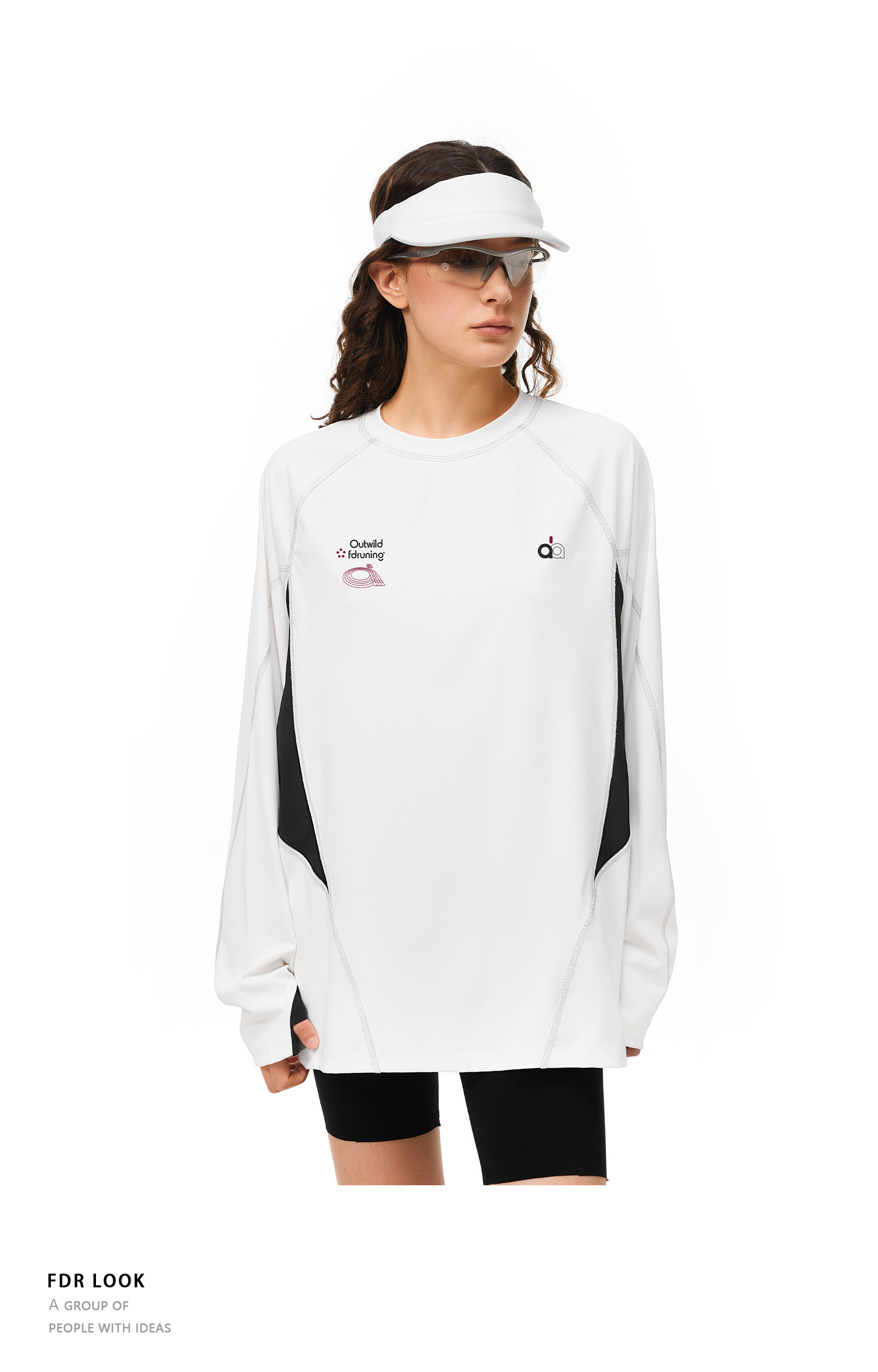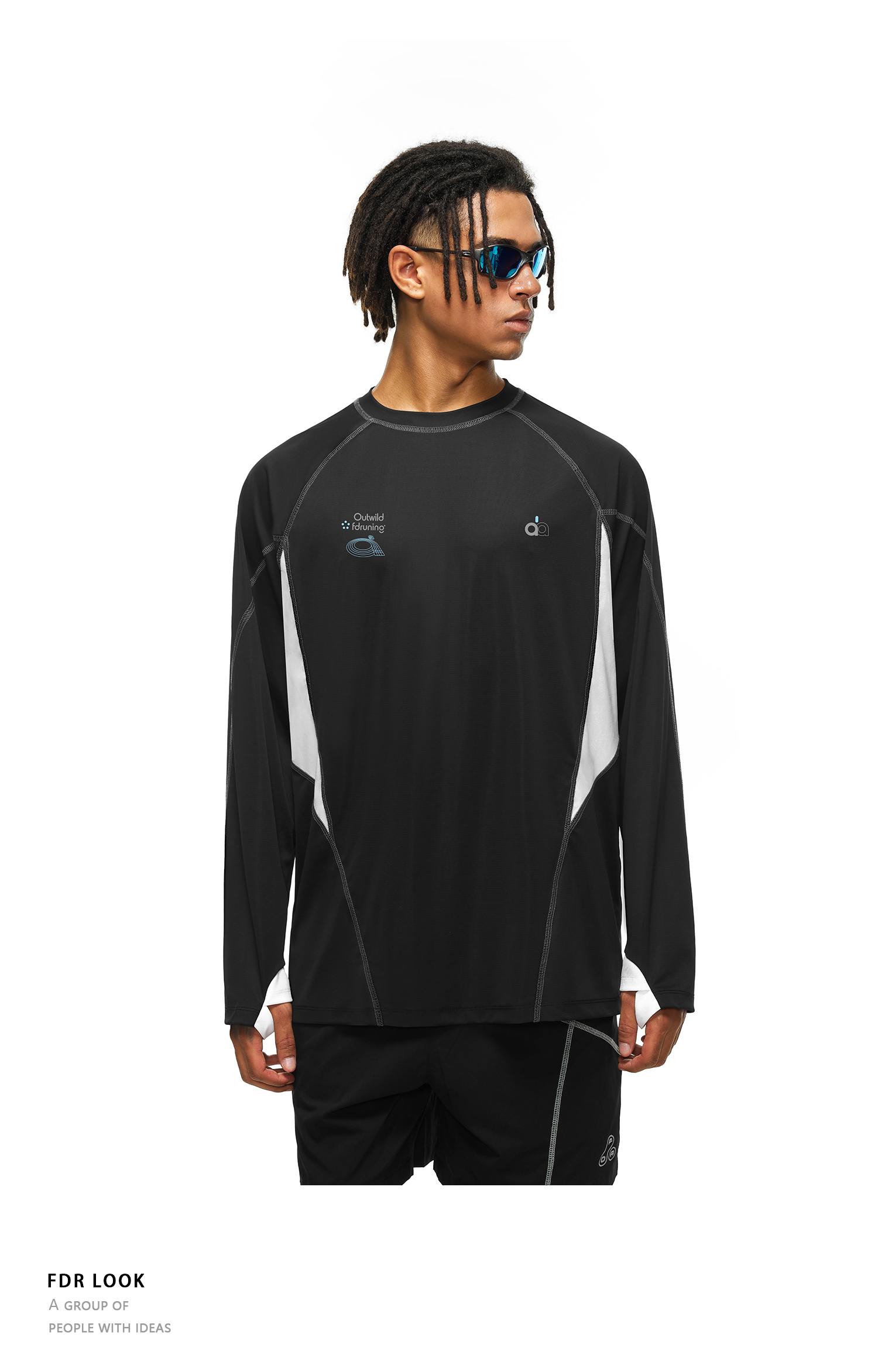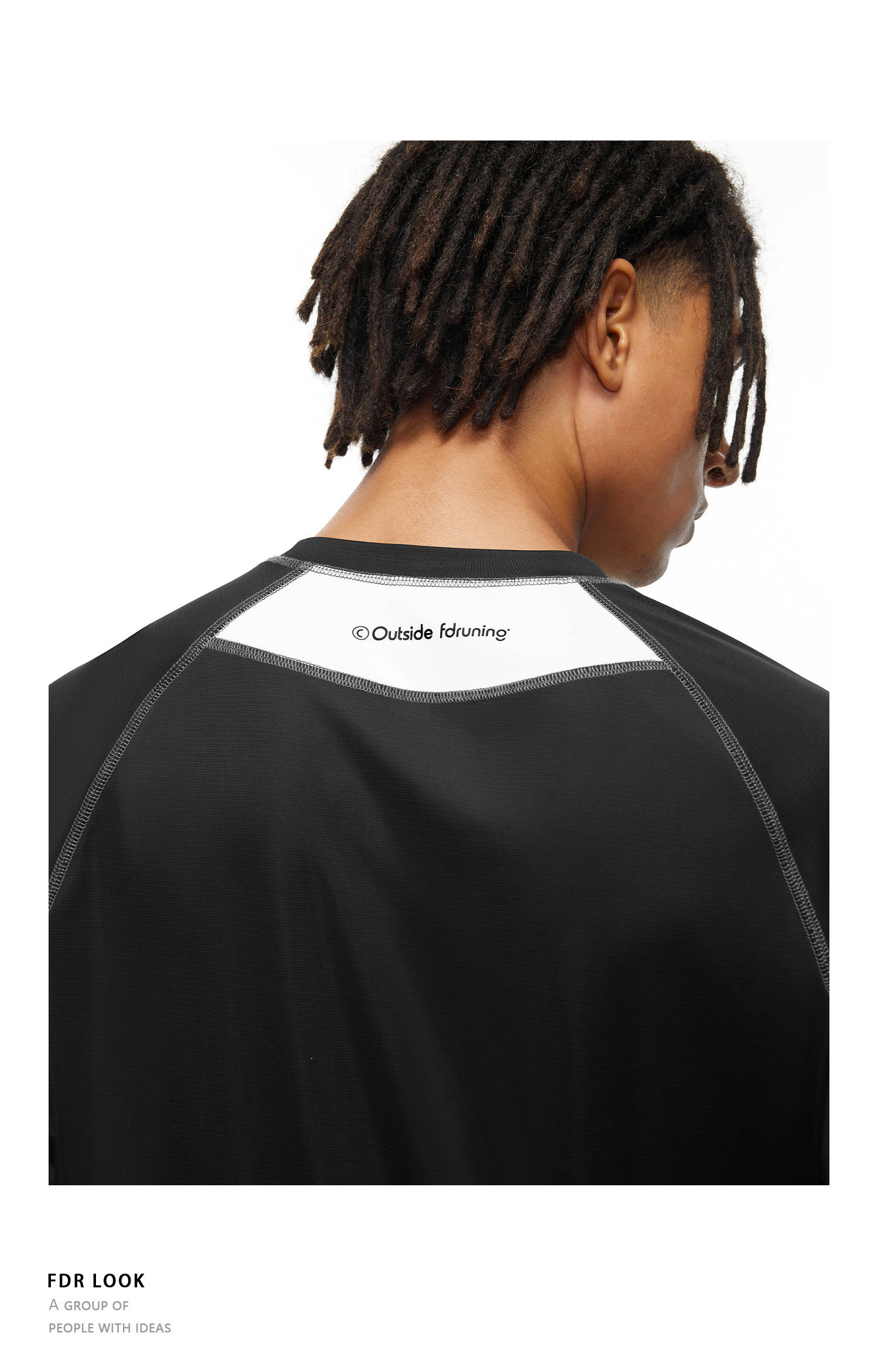 【178元任选3件】FDR官方店 防晒UPF哈苏线拼接速干运动宽松长袖T恤男女秋季上衣