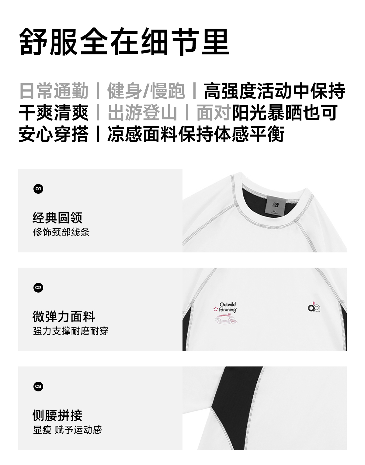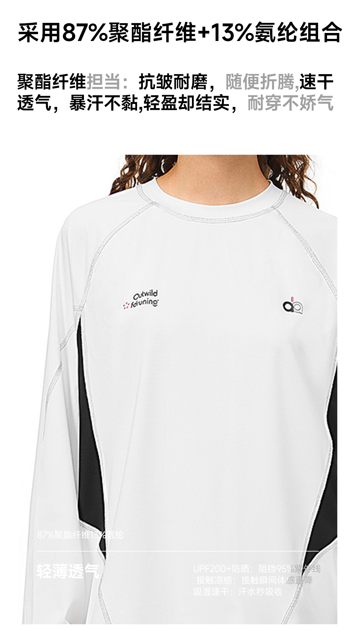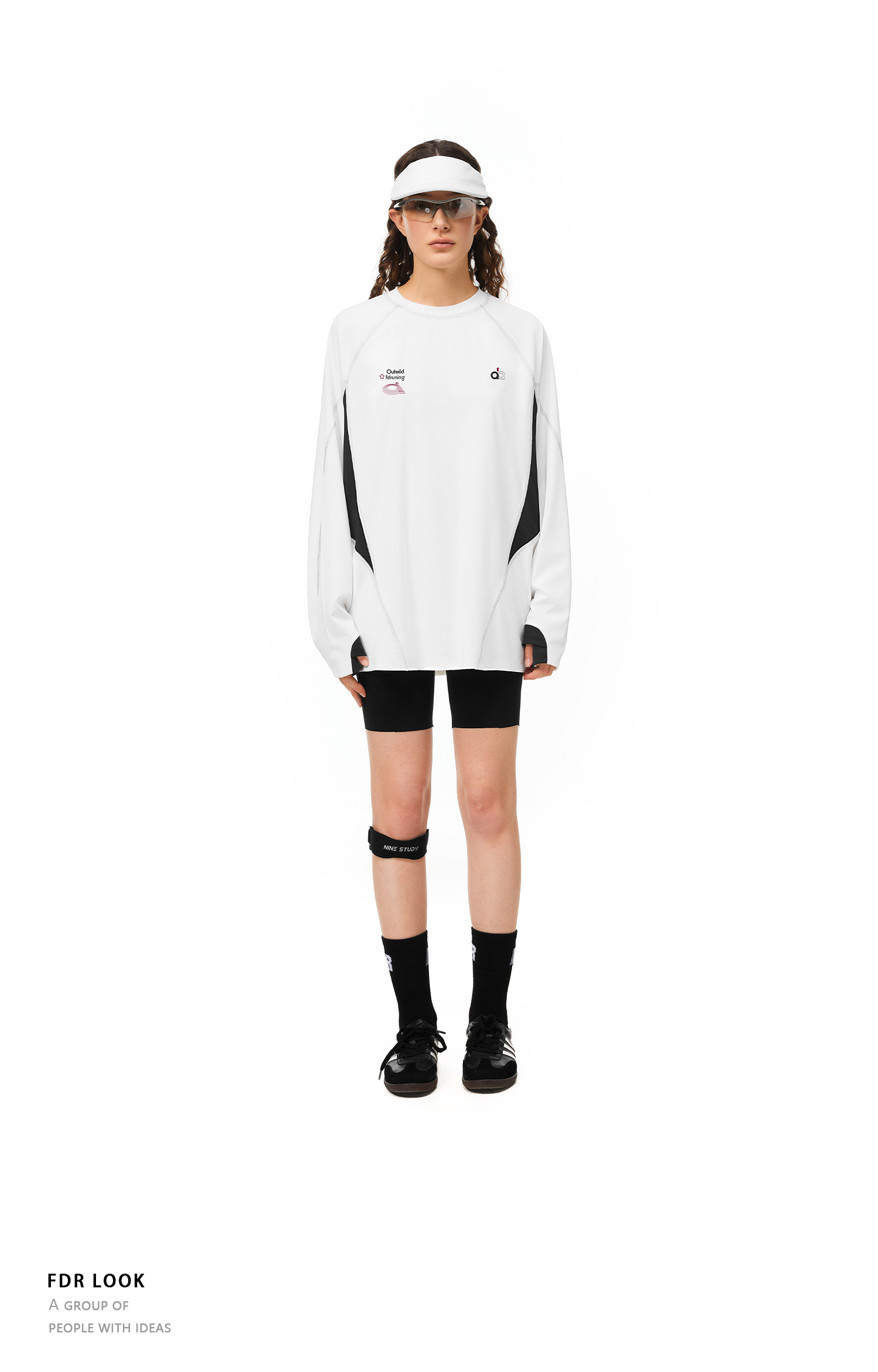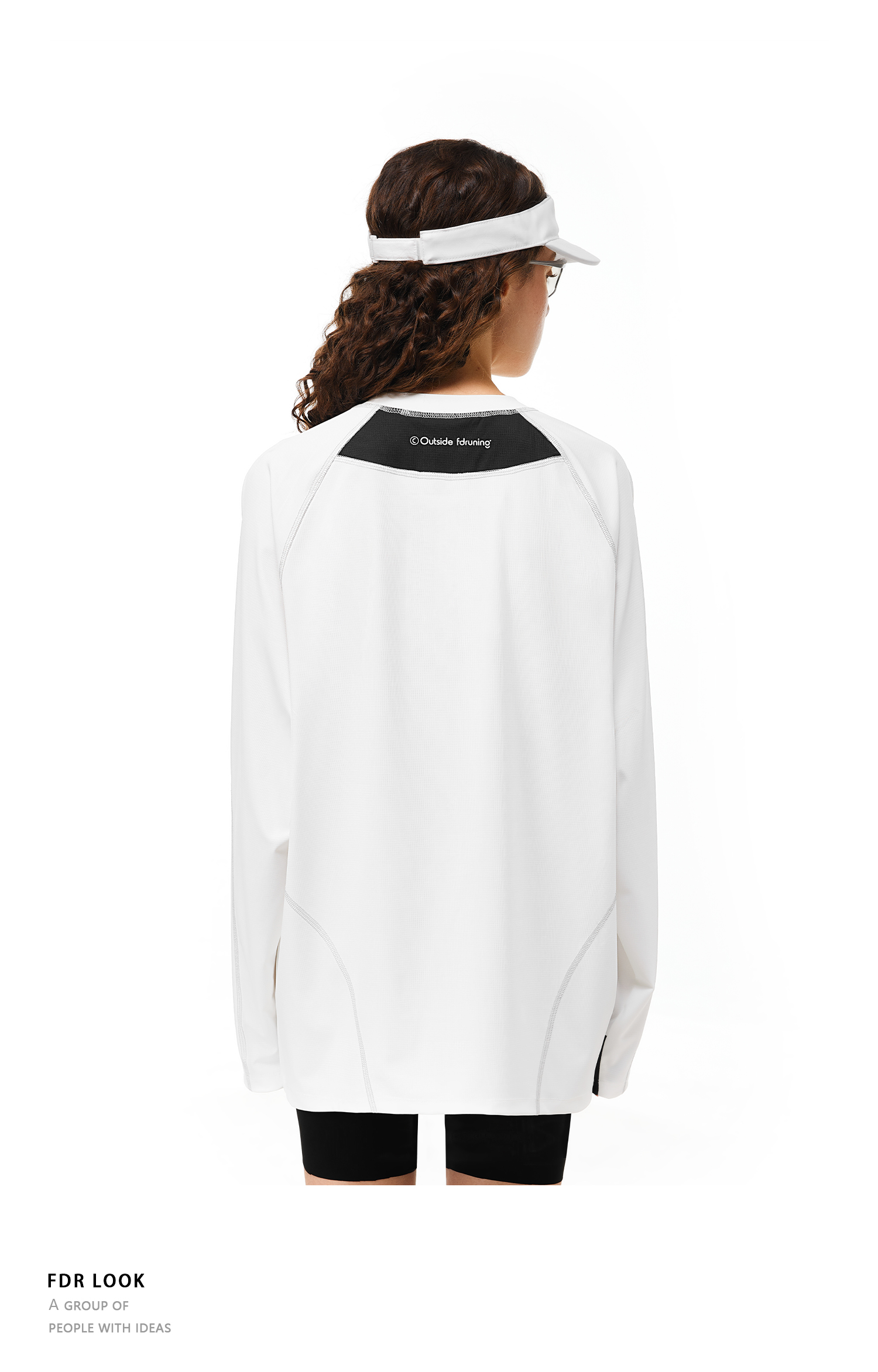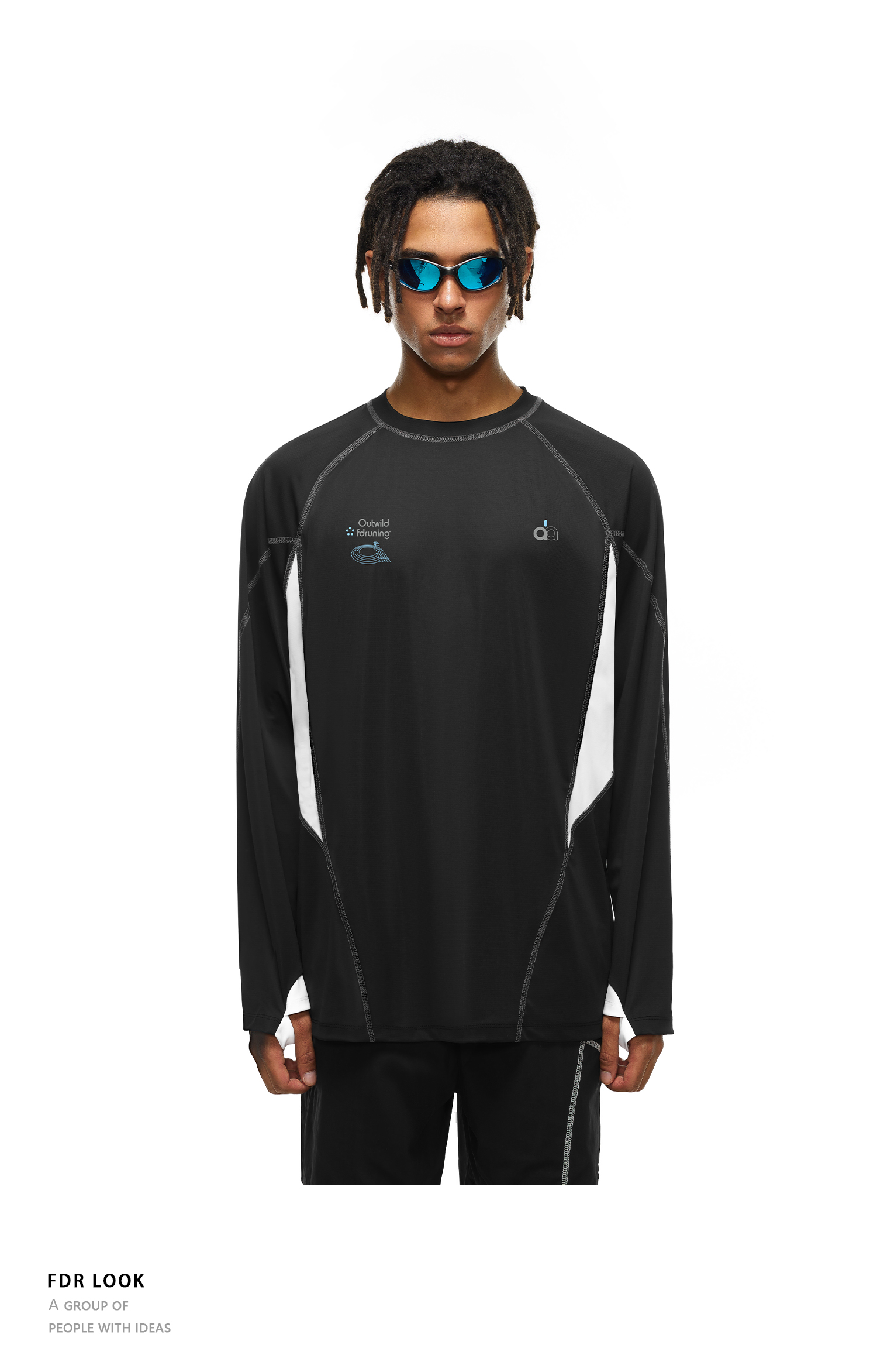 【178元任选3件】FDR官方店 防晒UPF哈苏线拼接速干运动宽松长袖T恤男女秋季上衣