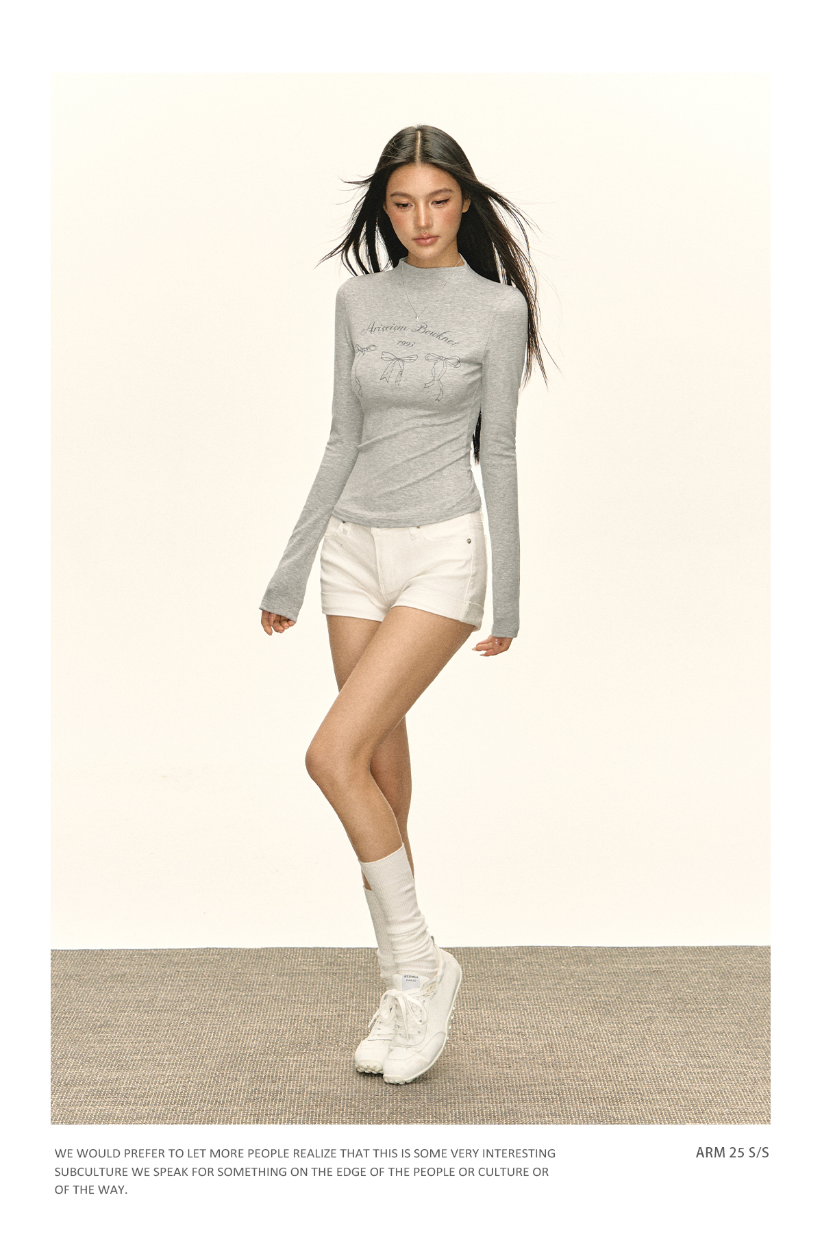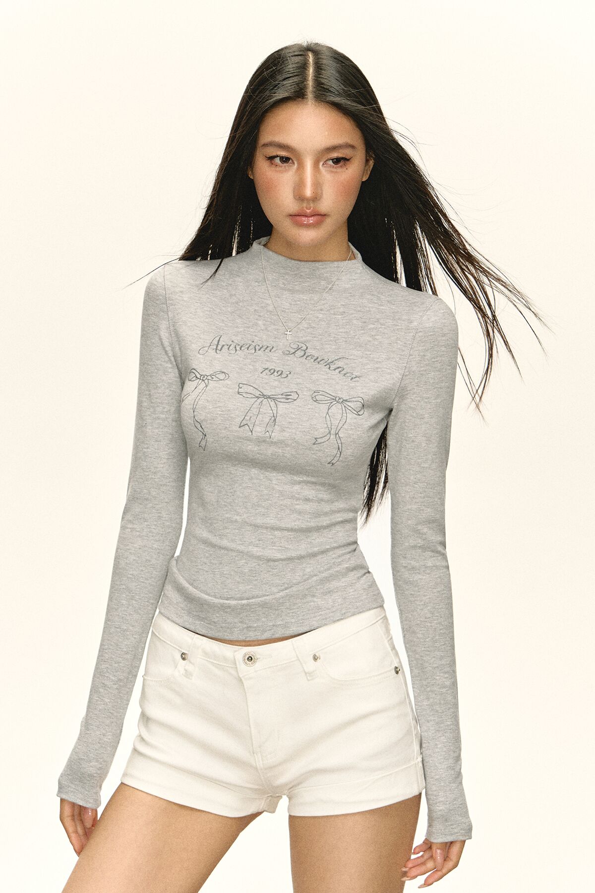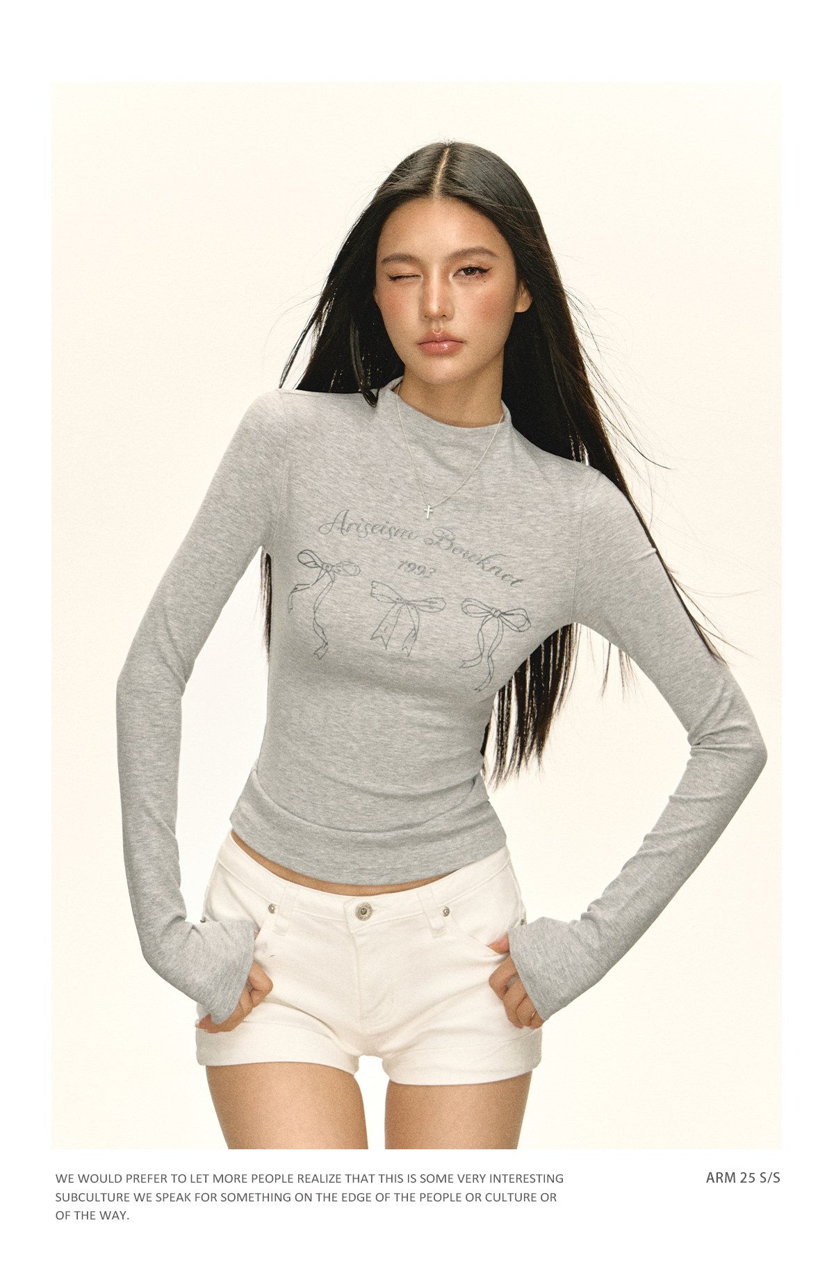 Ariseism 美式复古设计感半高领蝴蝶结长袖t恤女秋季新款修身上衣