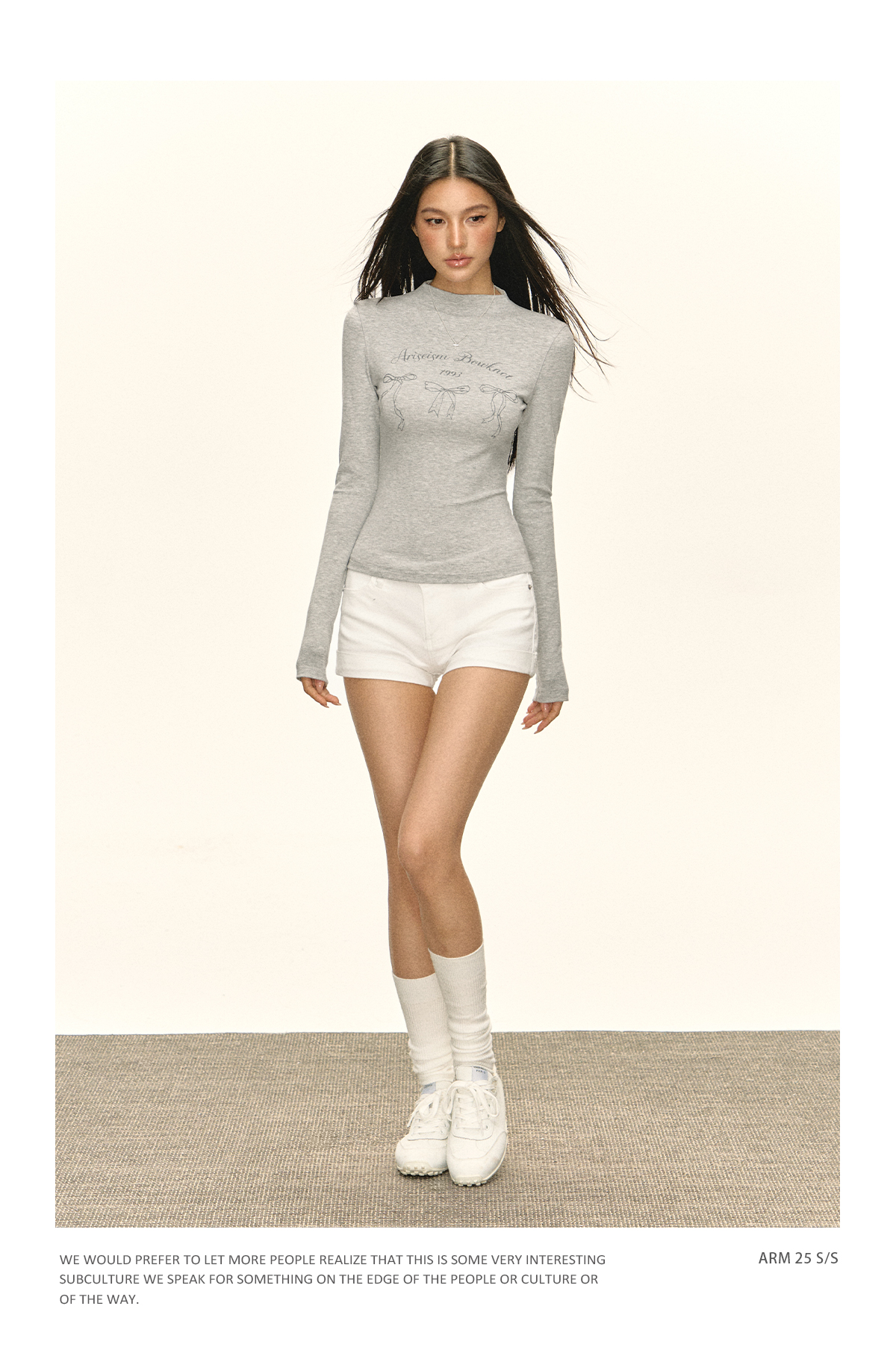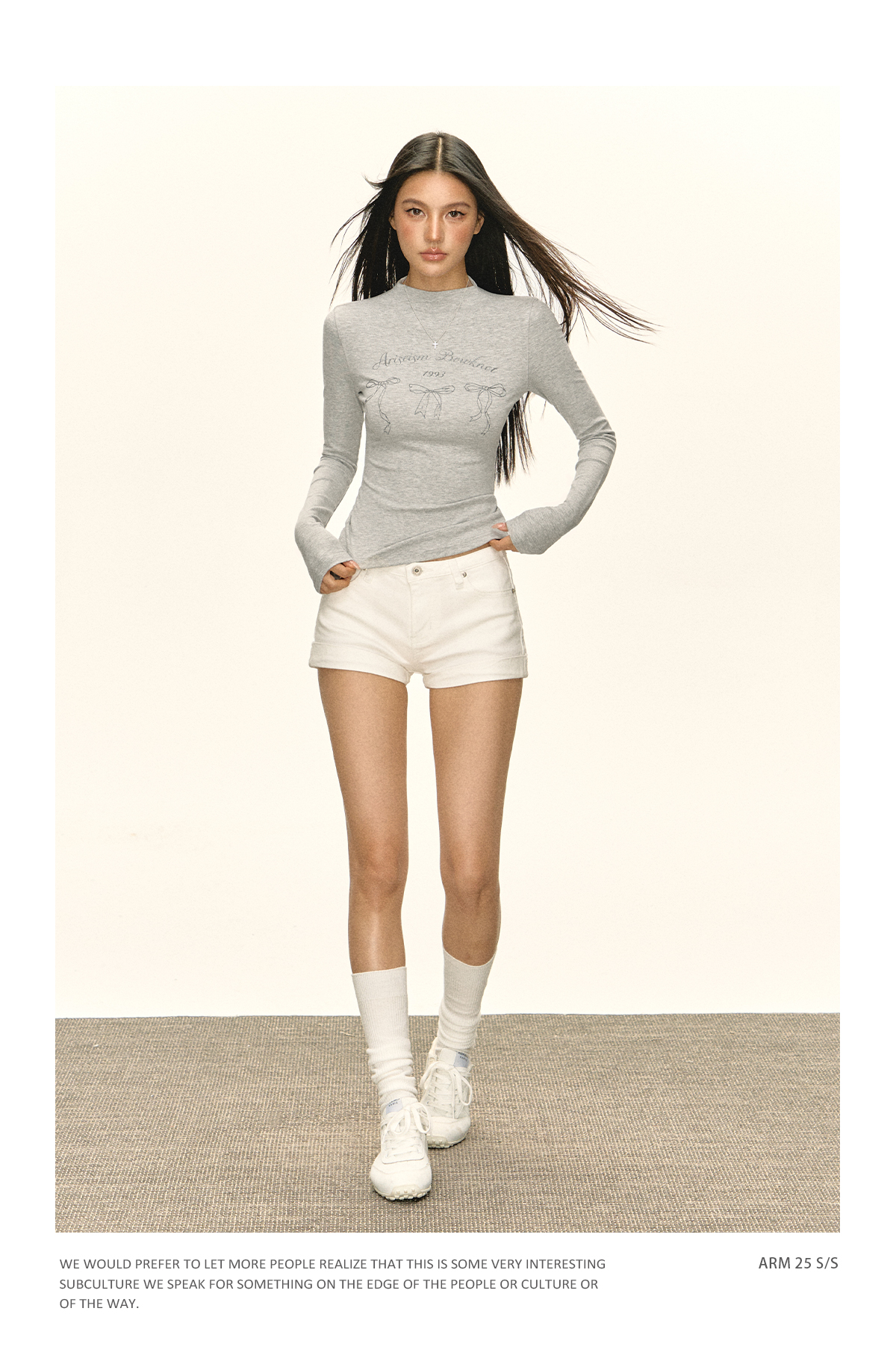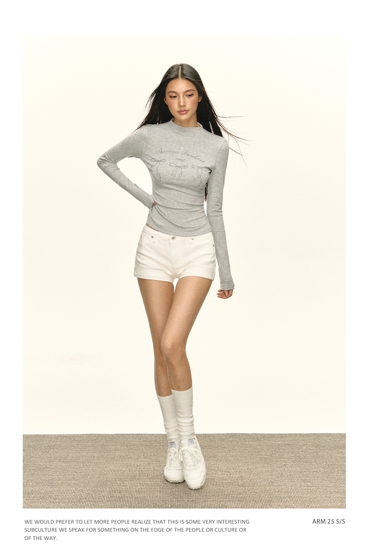 Ariseism 美式复古设计感半高领蝴蝶结长袖t恤女秋季新款修身上衣