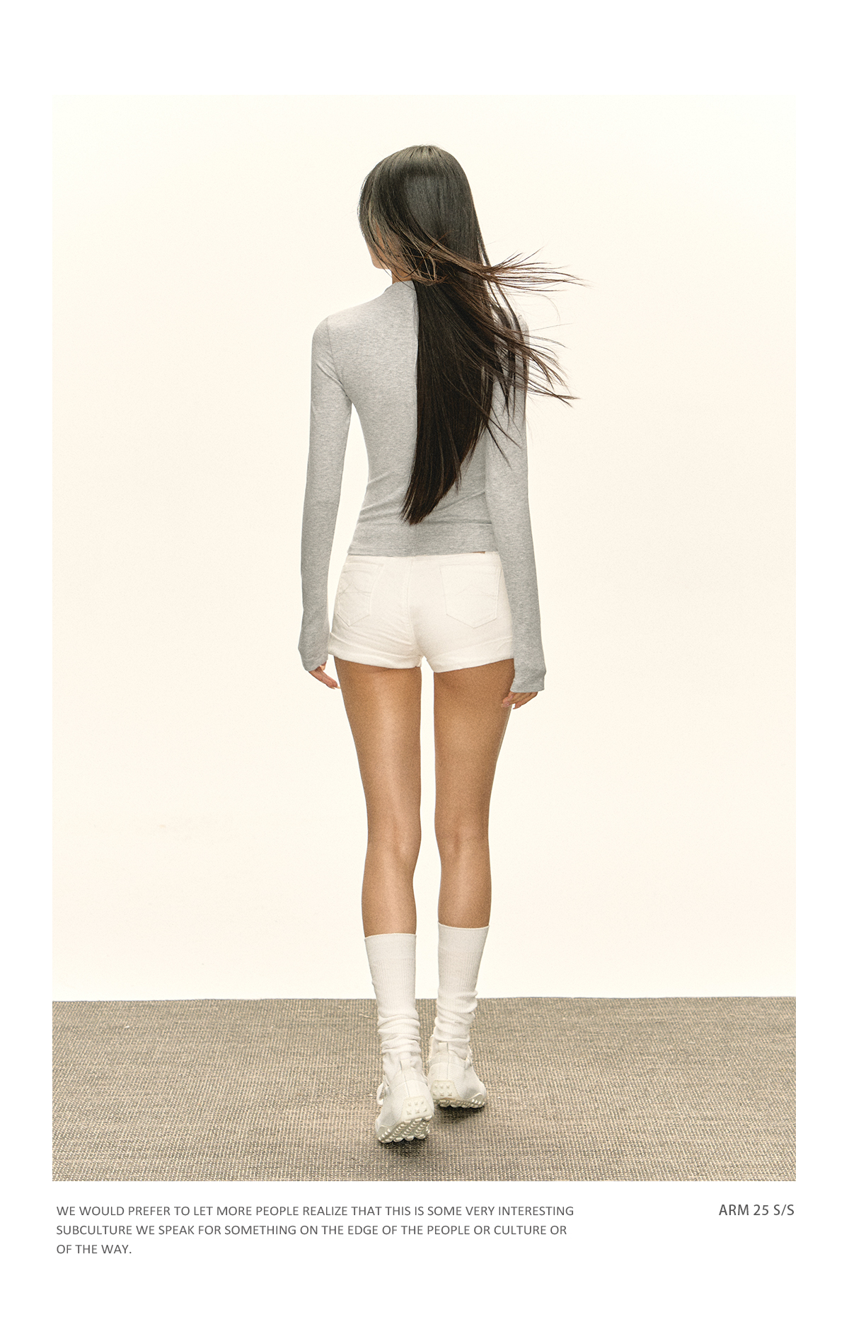 Ariseism 美式复古斜肩长袖上衣+短裤两件套早秋新款套装女