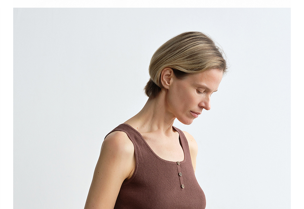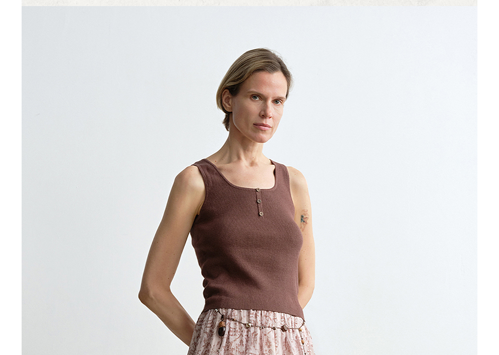 ROMI STUDIO"简约复古"经典坑条纹轻薄无袖圆领背心 RWDSS61954