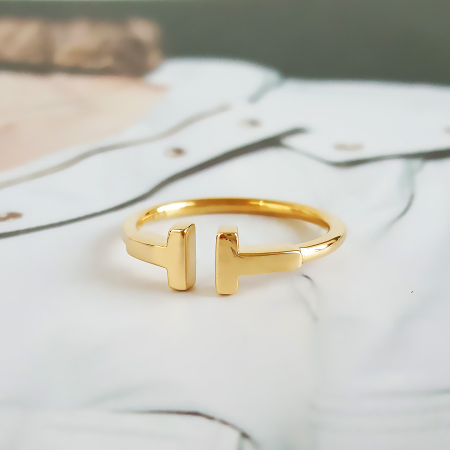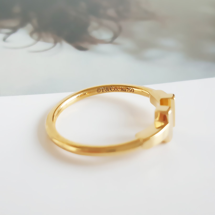 【95新】Tiffany & Co.蒂芙尼Tiffany T 系列18K黄金双T线圈开口戒指54号女士 091225TH13