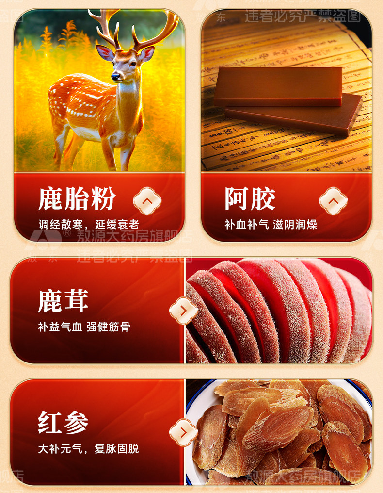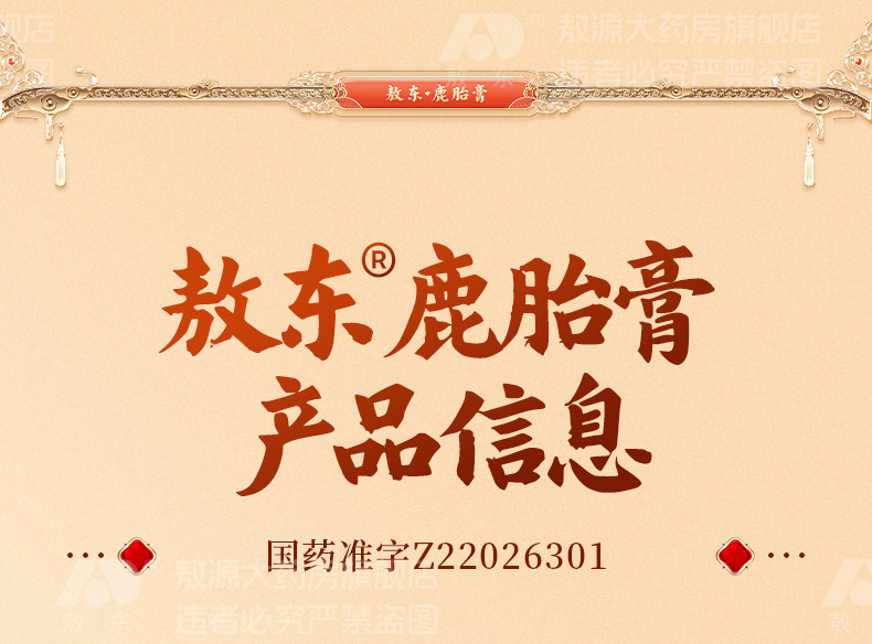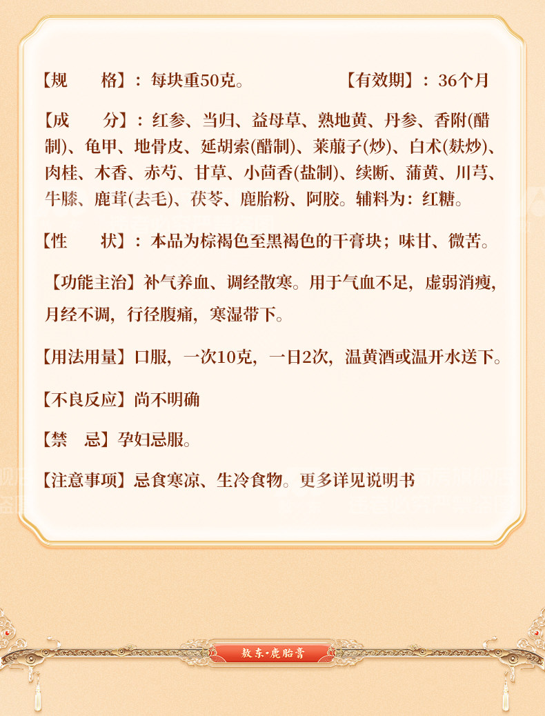 搭阿胶】敖东鹿胎膏100g盒补气养血中药调理月经不调痛经旗舰店