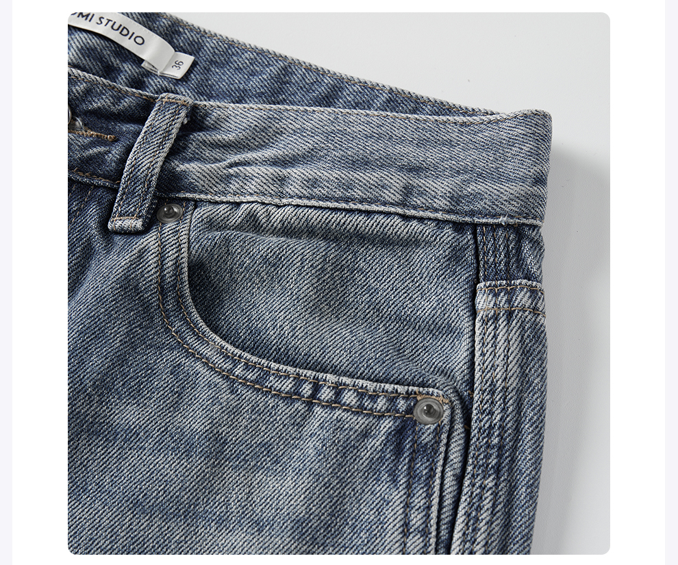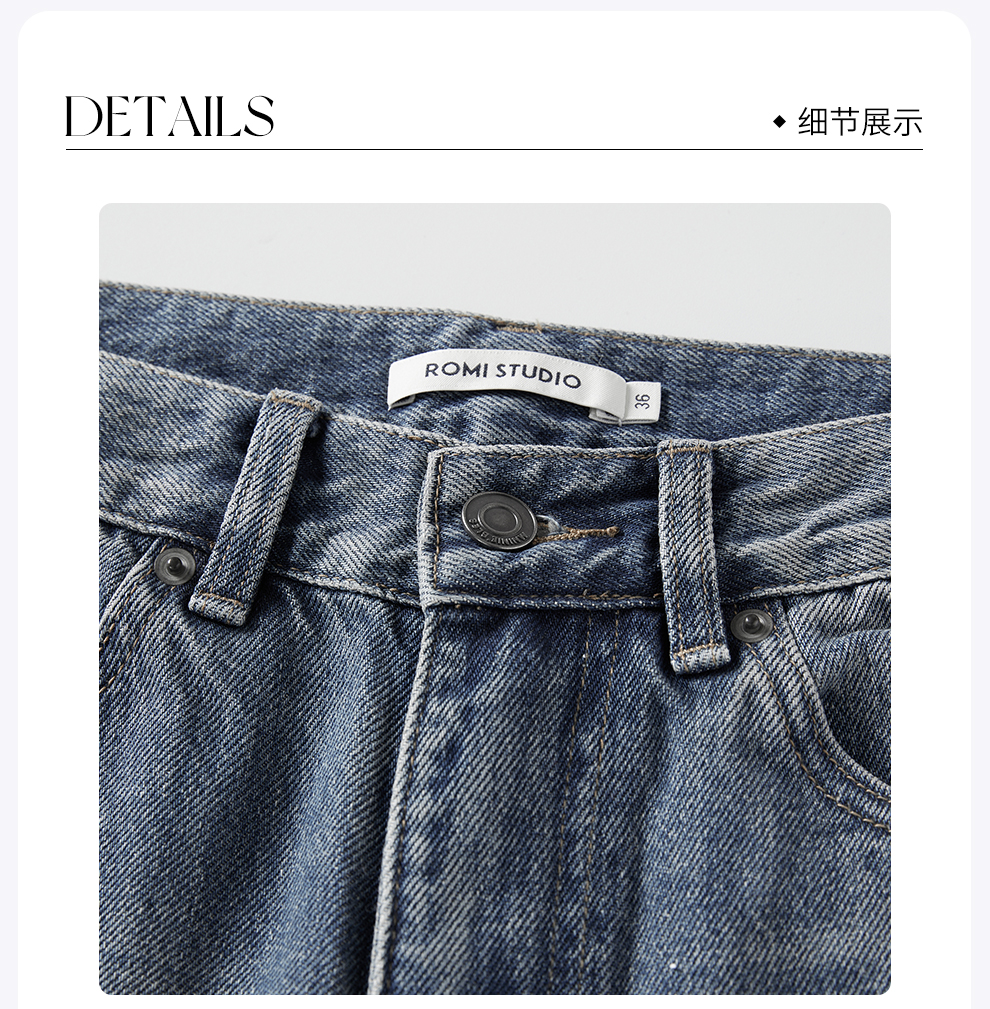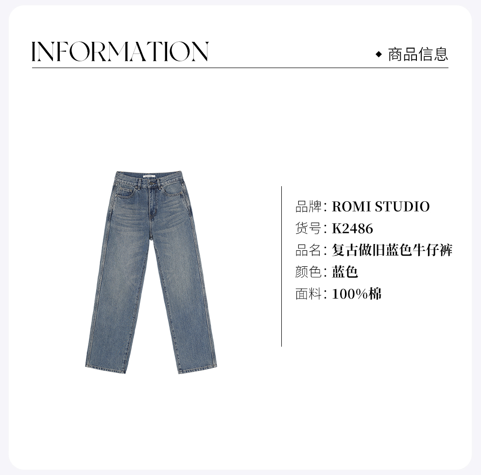 ROMI STUDIO时尚百搭高腰复古直筒休闲蓝色牛仔裤K2486