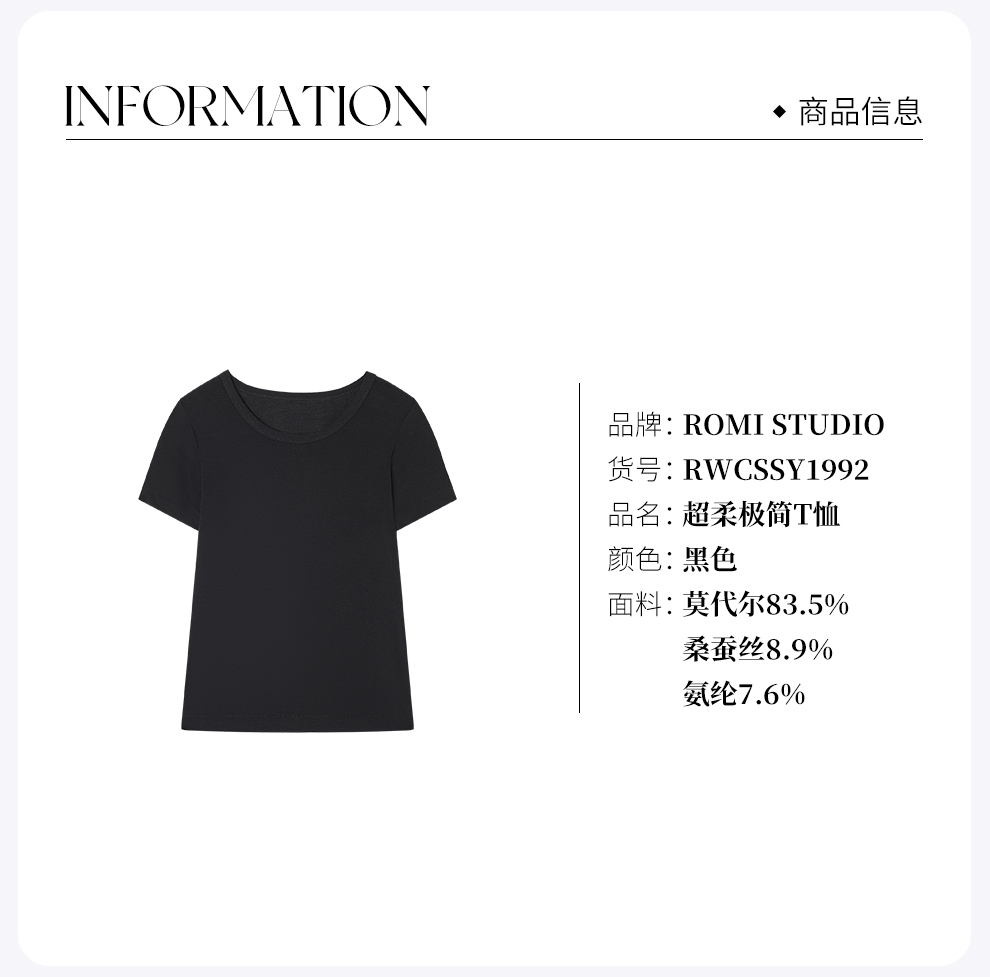 ROMI STUDIO“肤感至上”莫代尔桑蚕丝轻柔高弹短袖T恤 RWCSSY1992(现货)