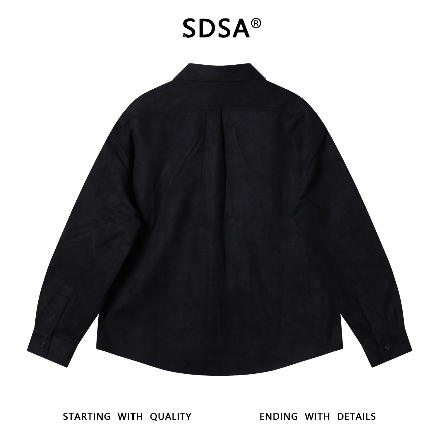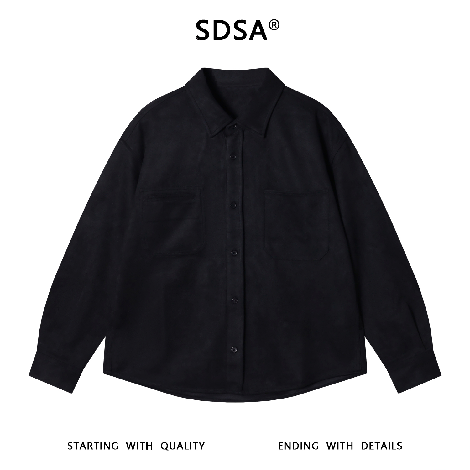 6354SDSA男士秋冬新款痞帅男装极简风绒面纯色翻领长袖衬衫复古百搭