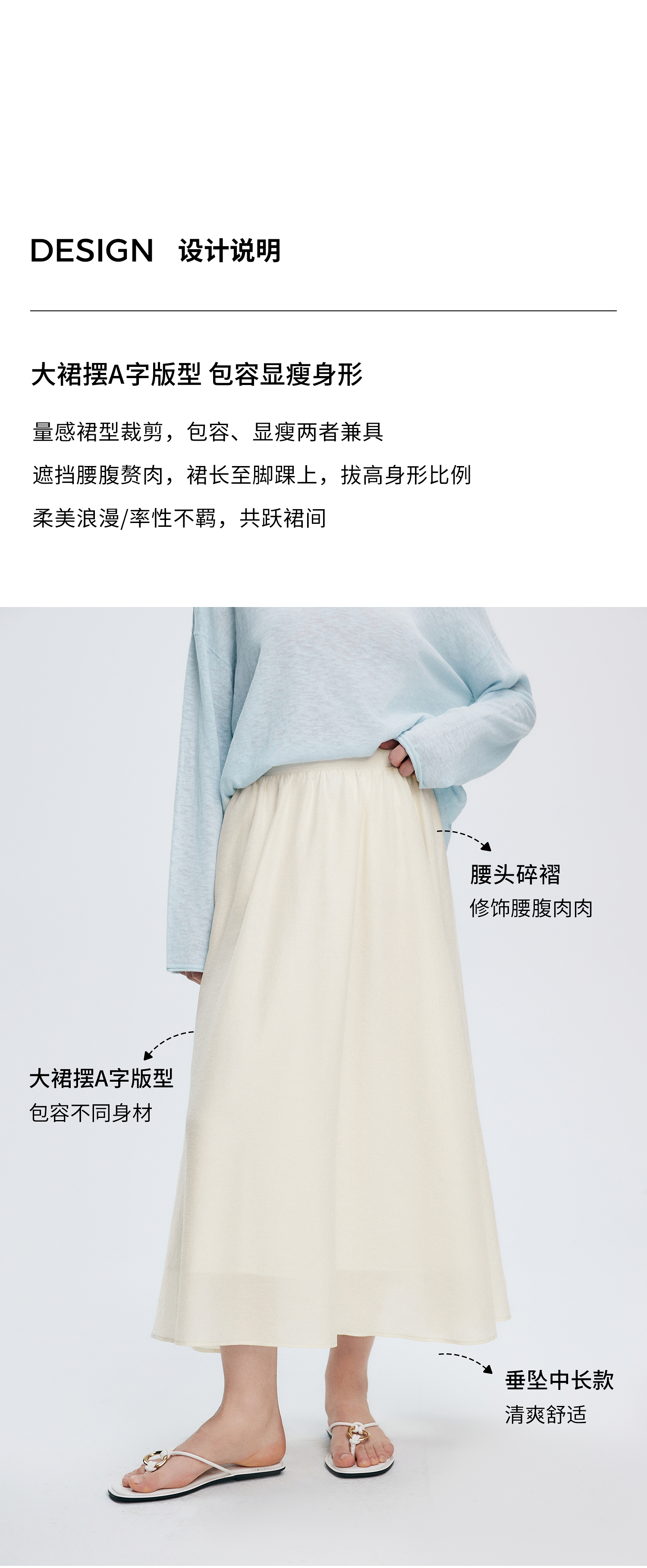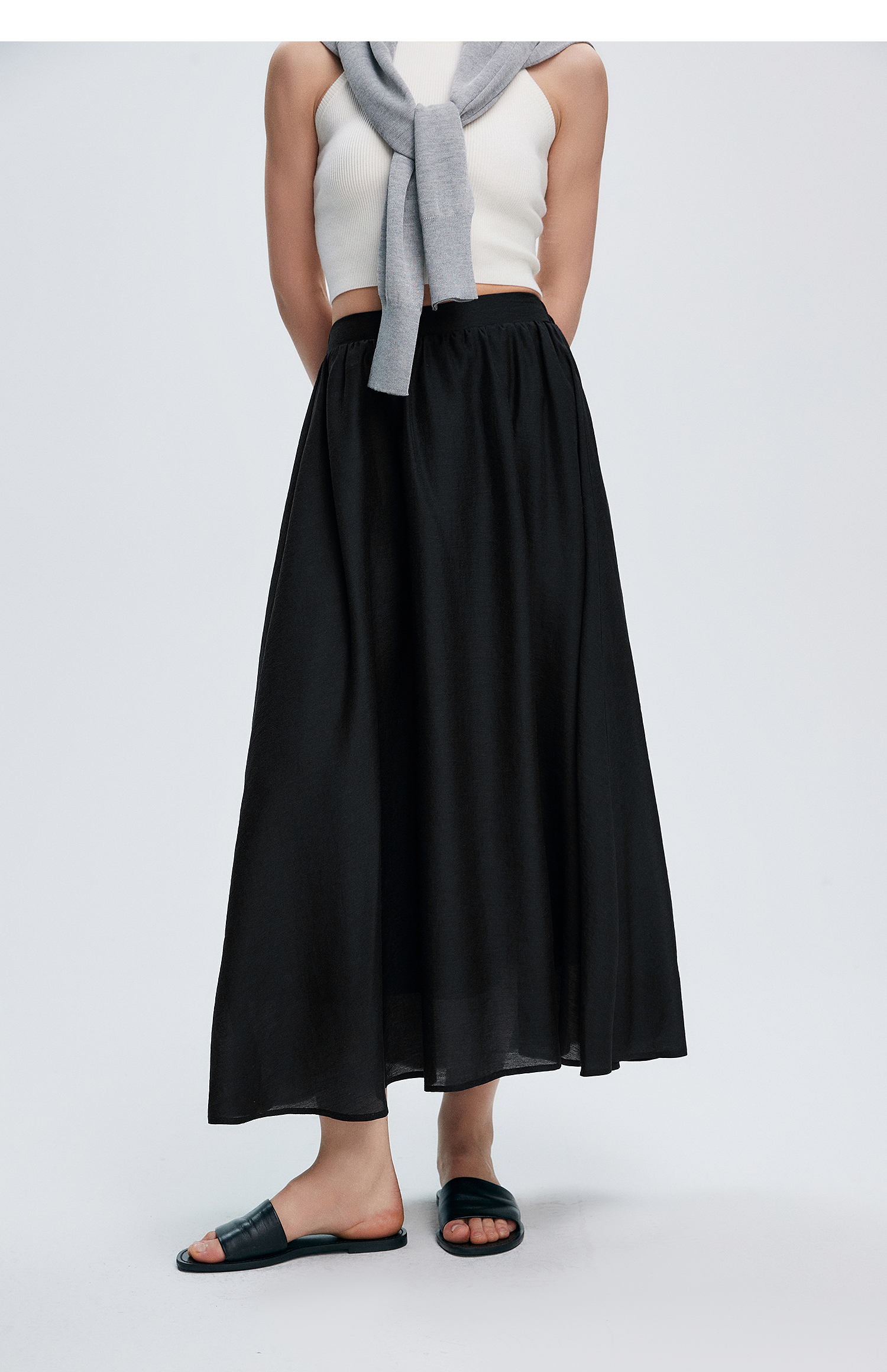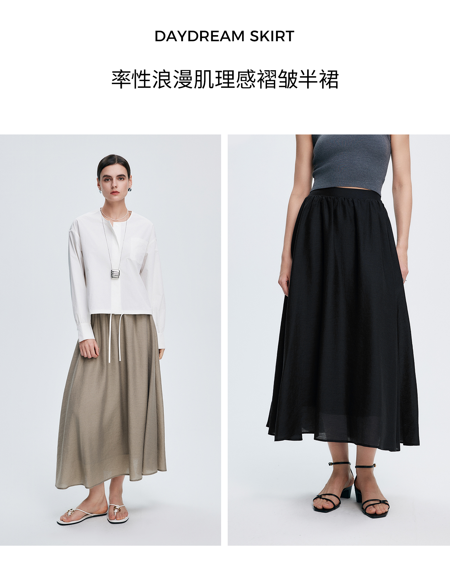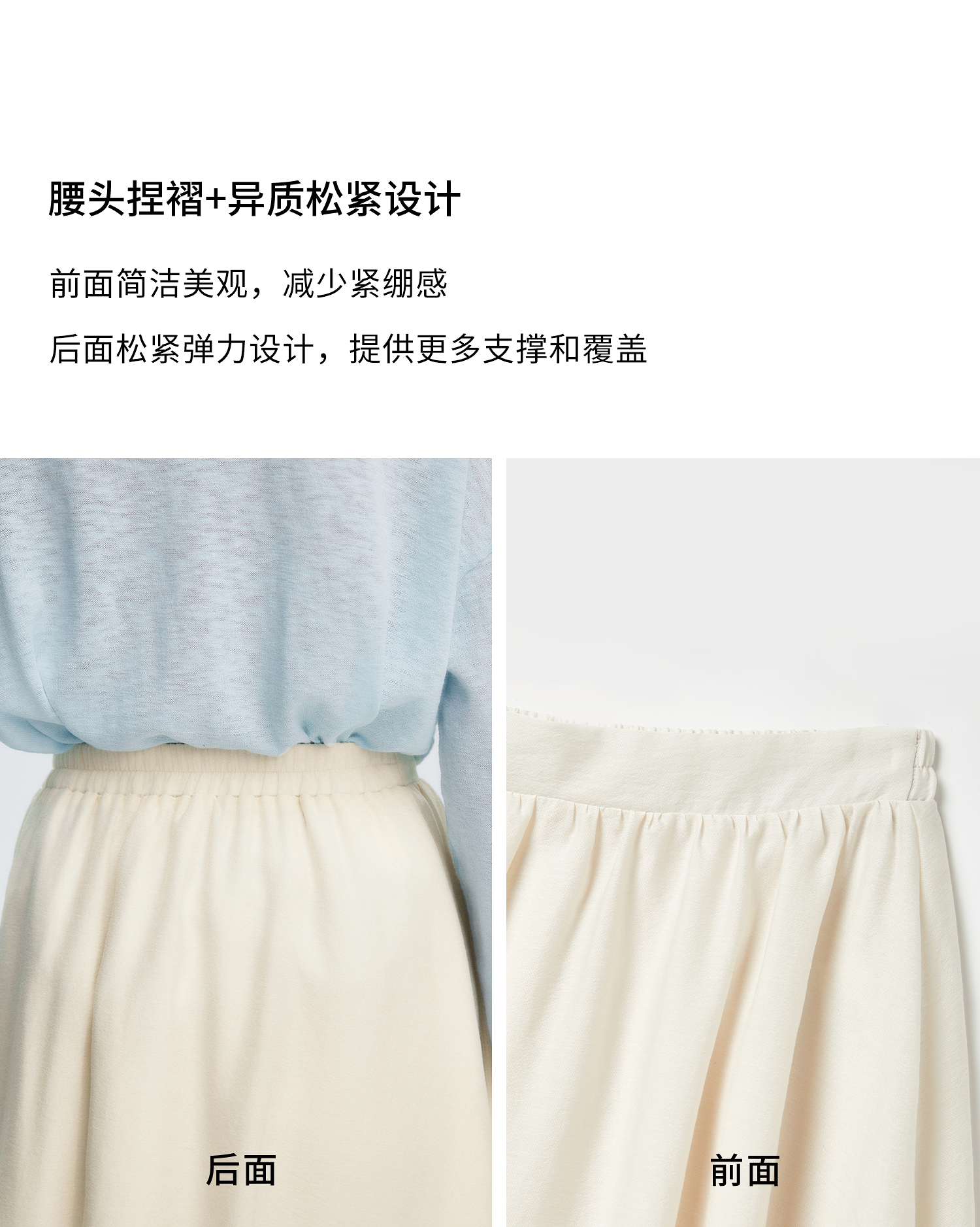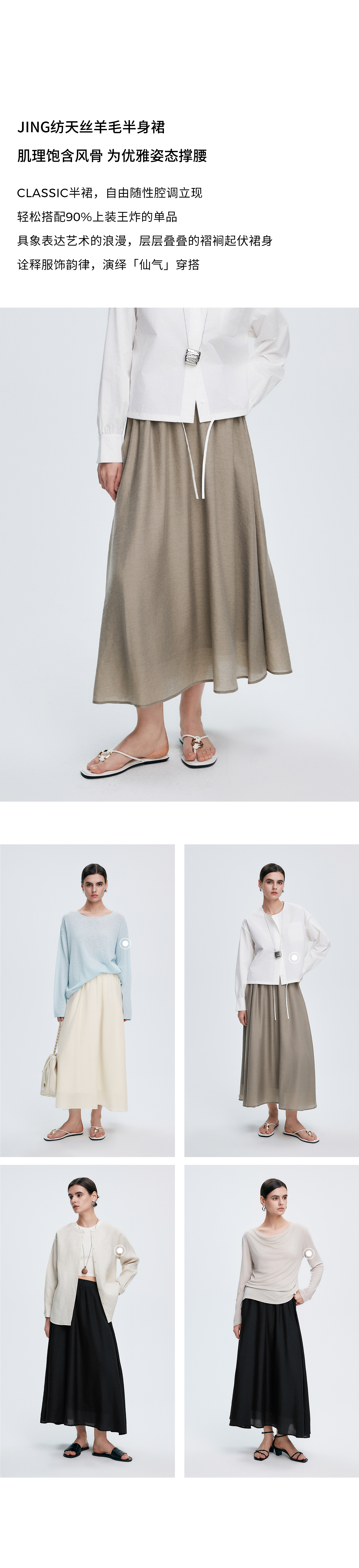 初棉 秋冬涤天丝羊毛半身裙 纯色百褶A字裙