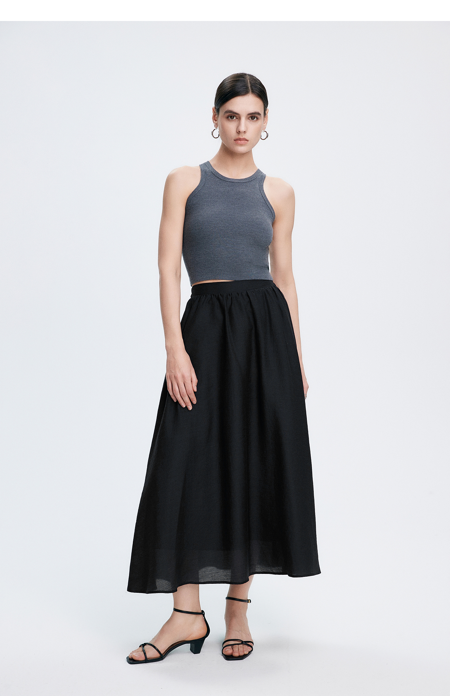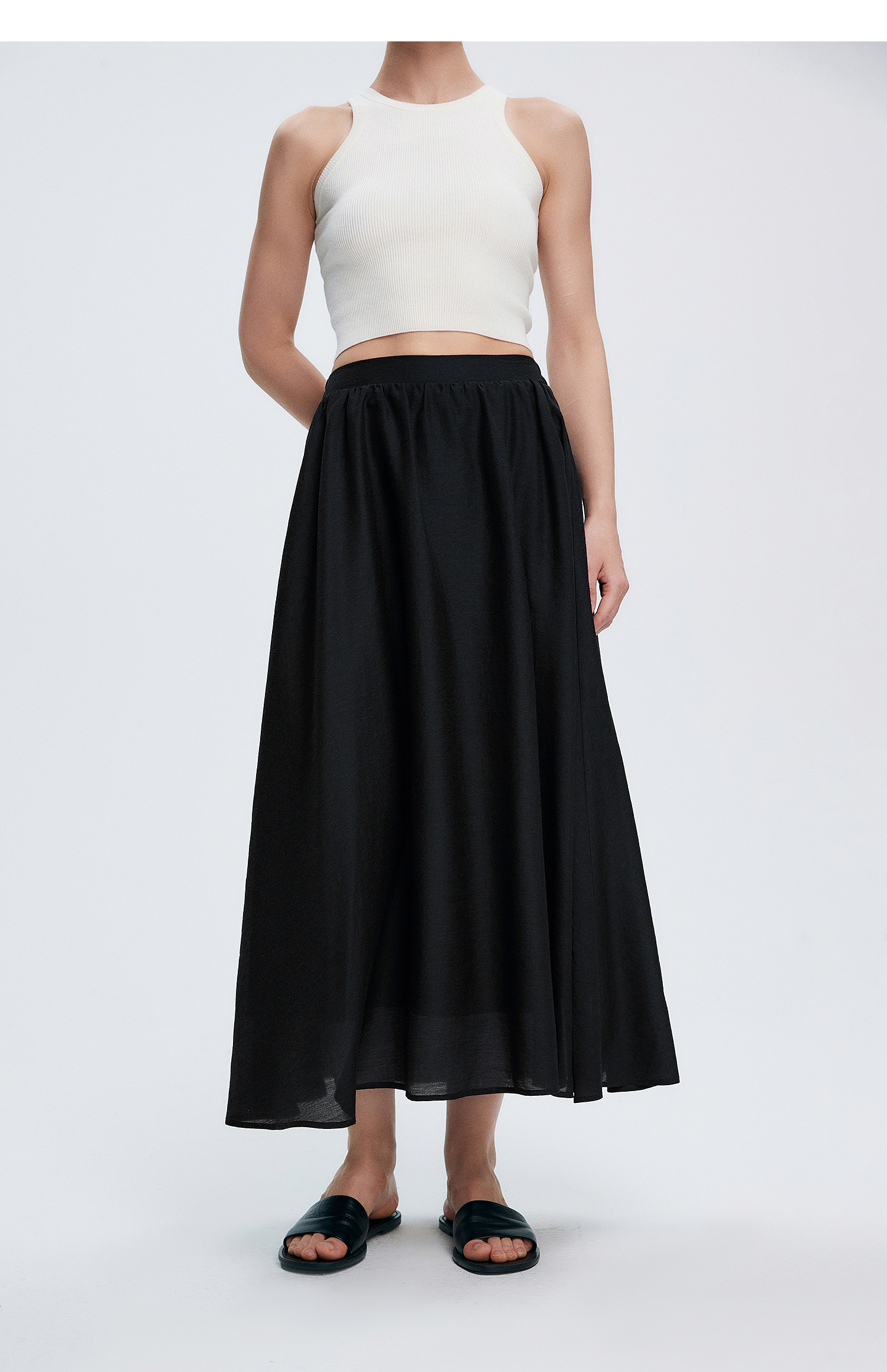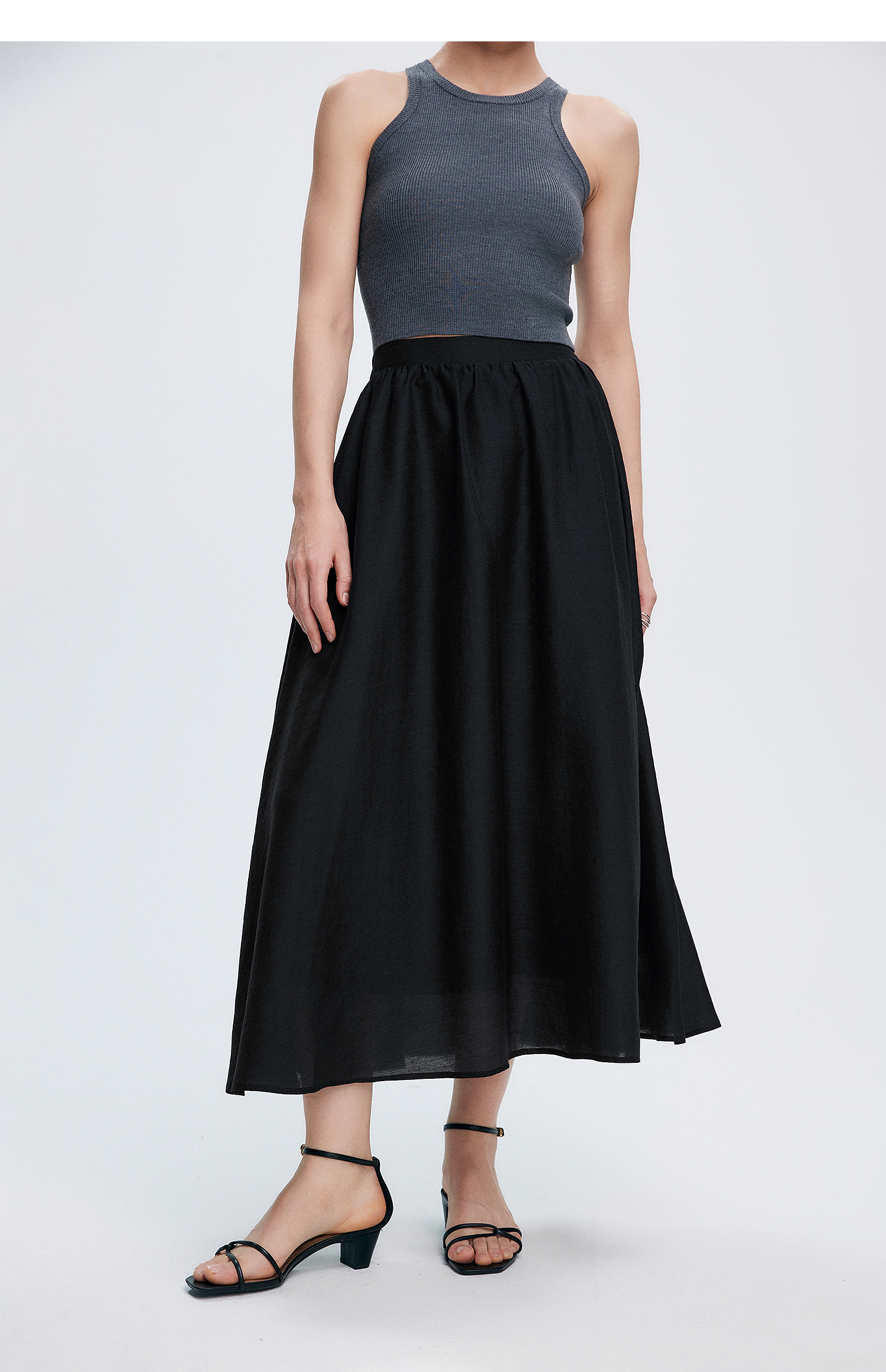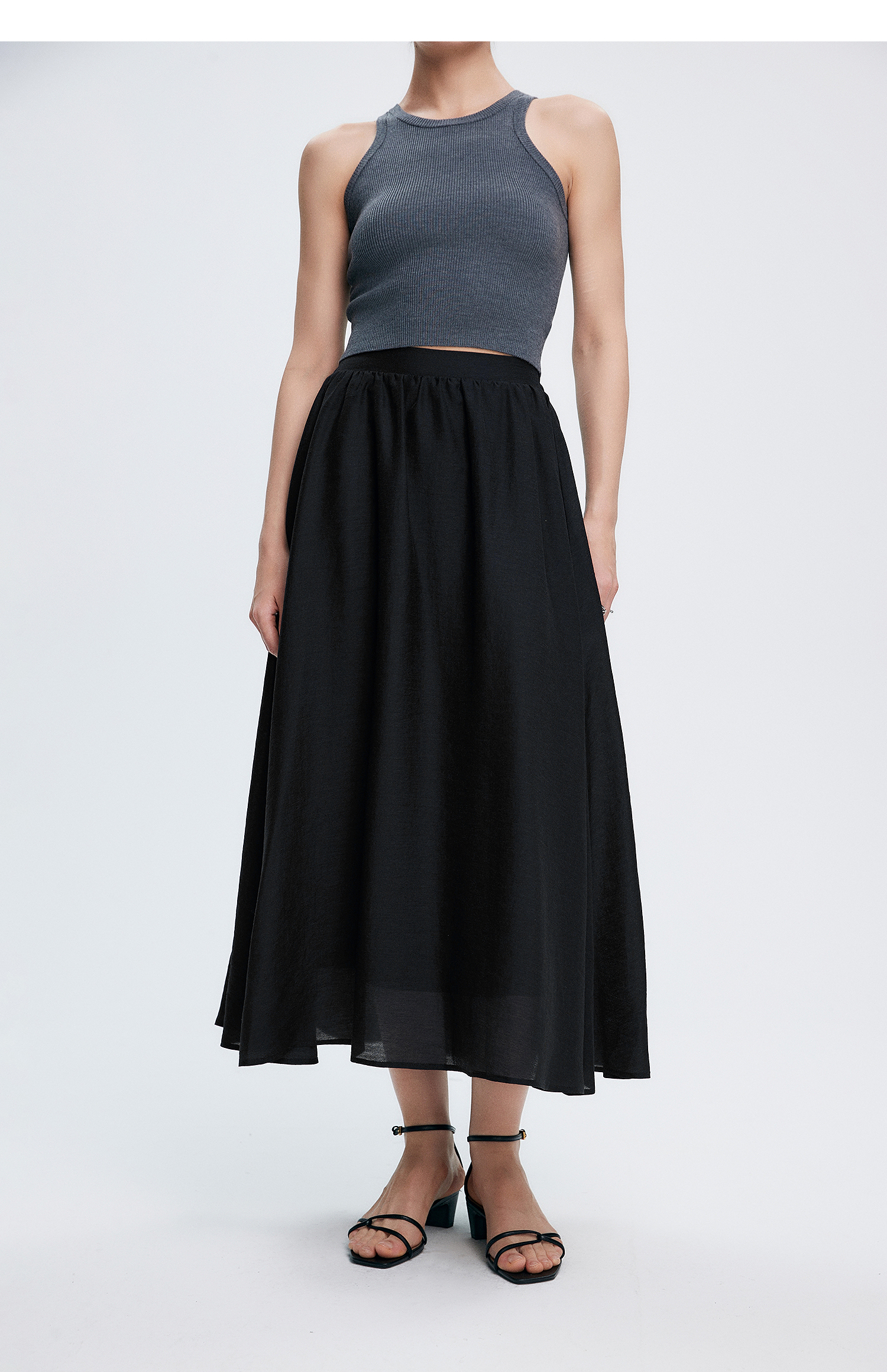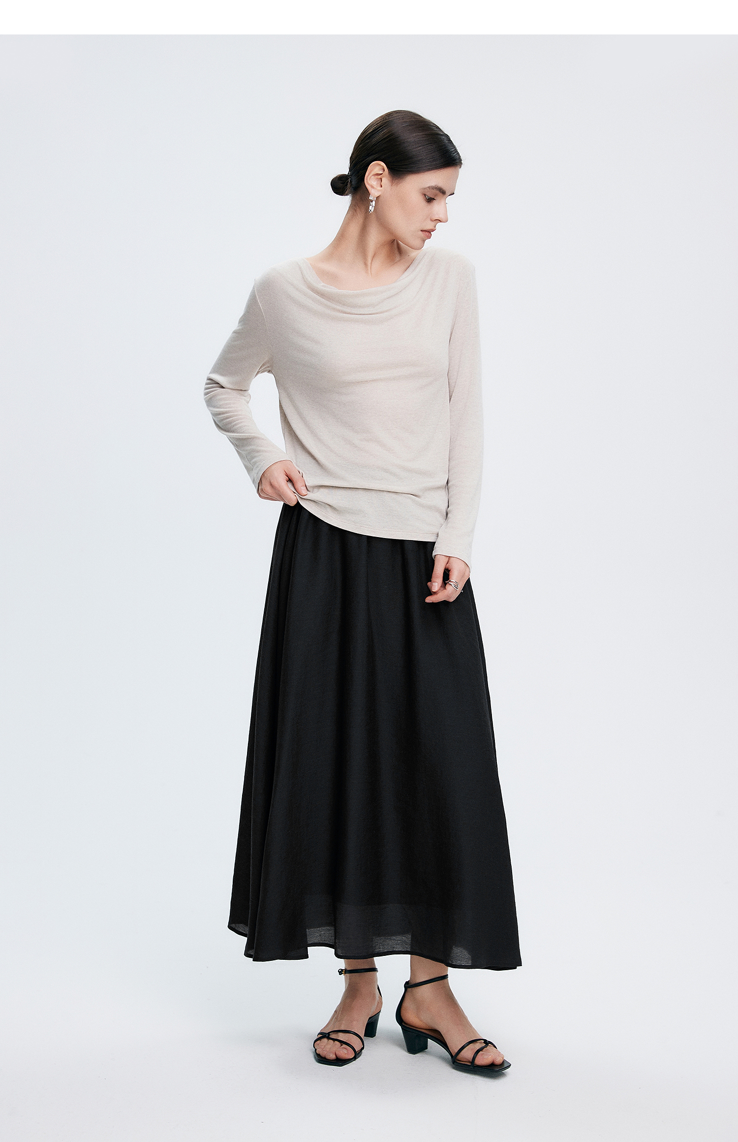 初棉 秋冬涤天丝羊毛半身裙 纯色百褶A字裙