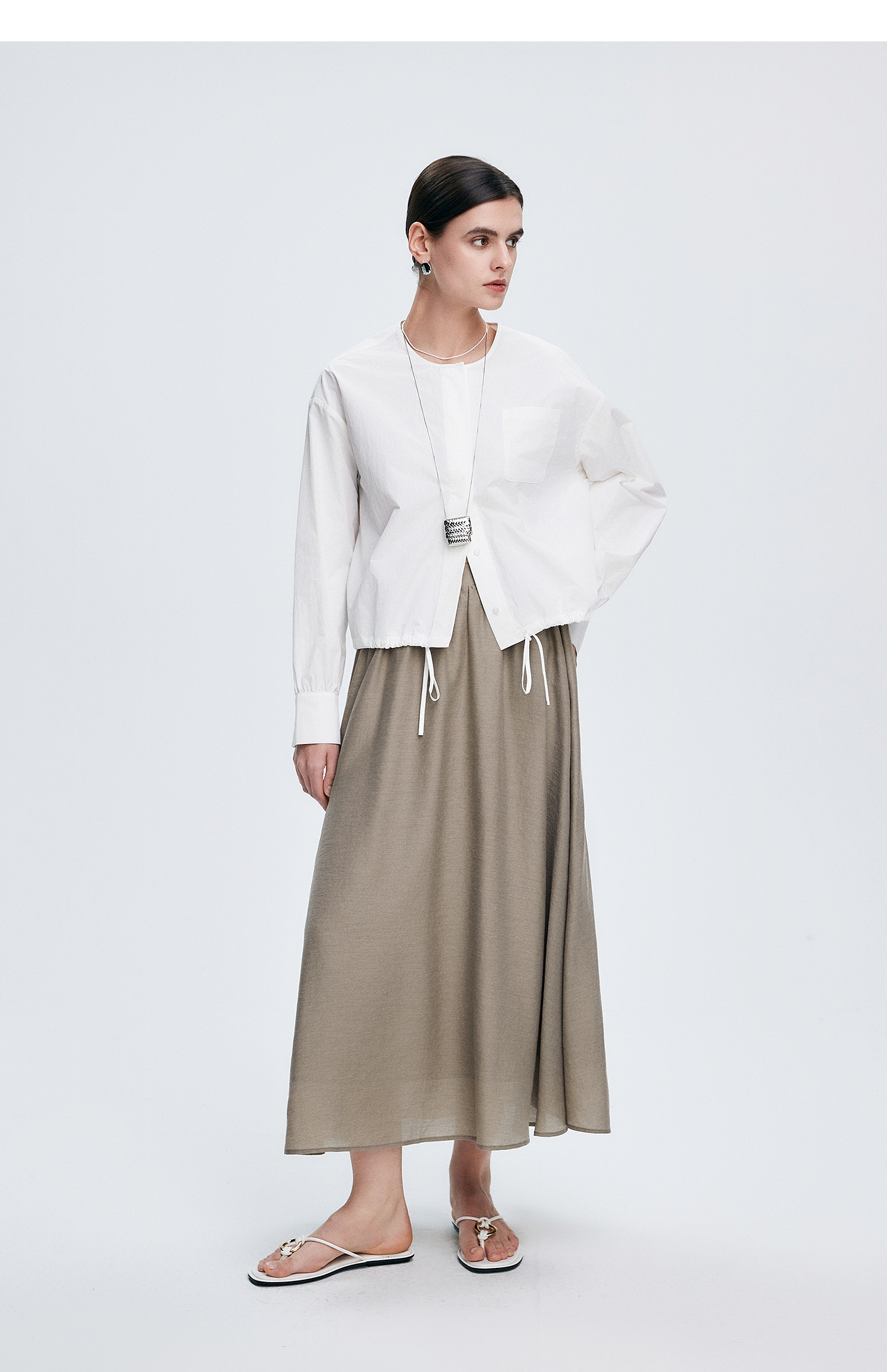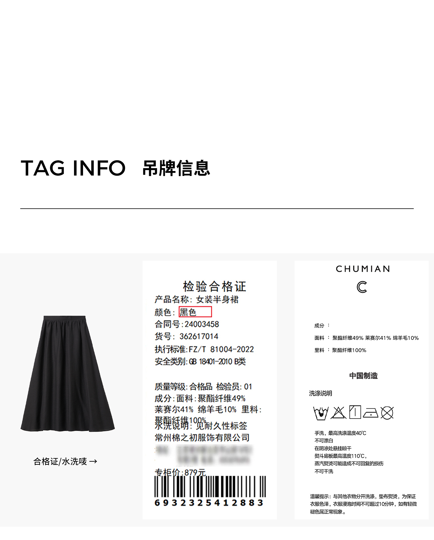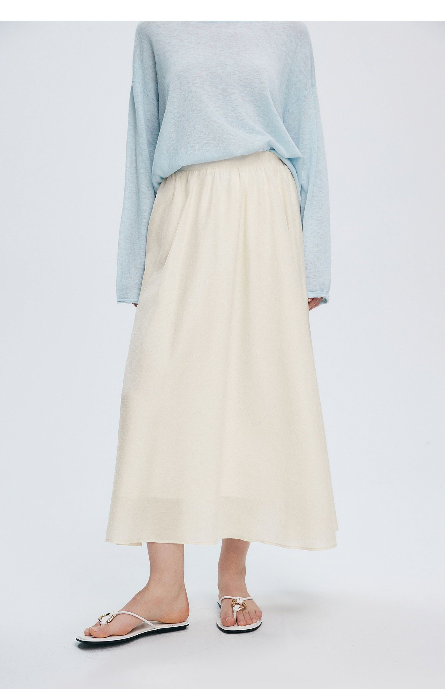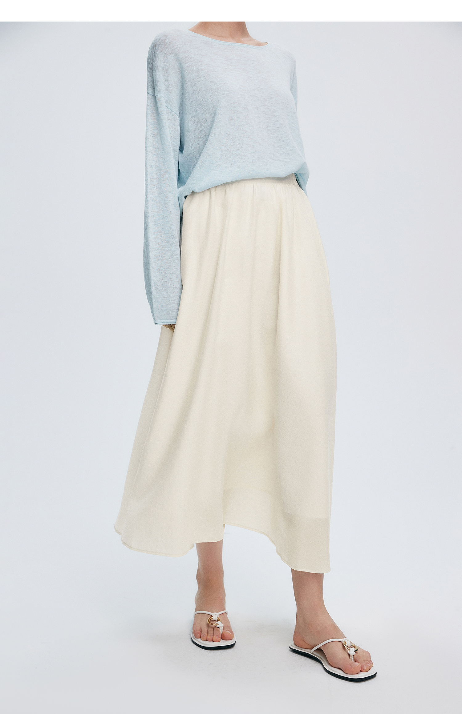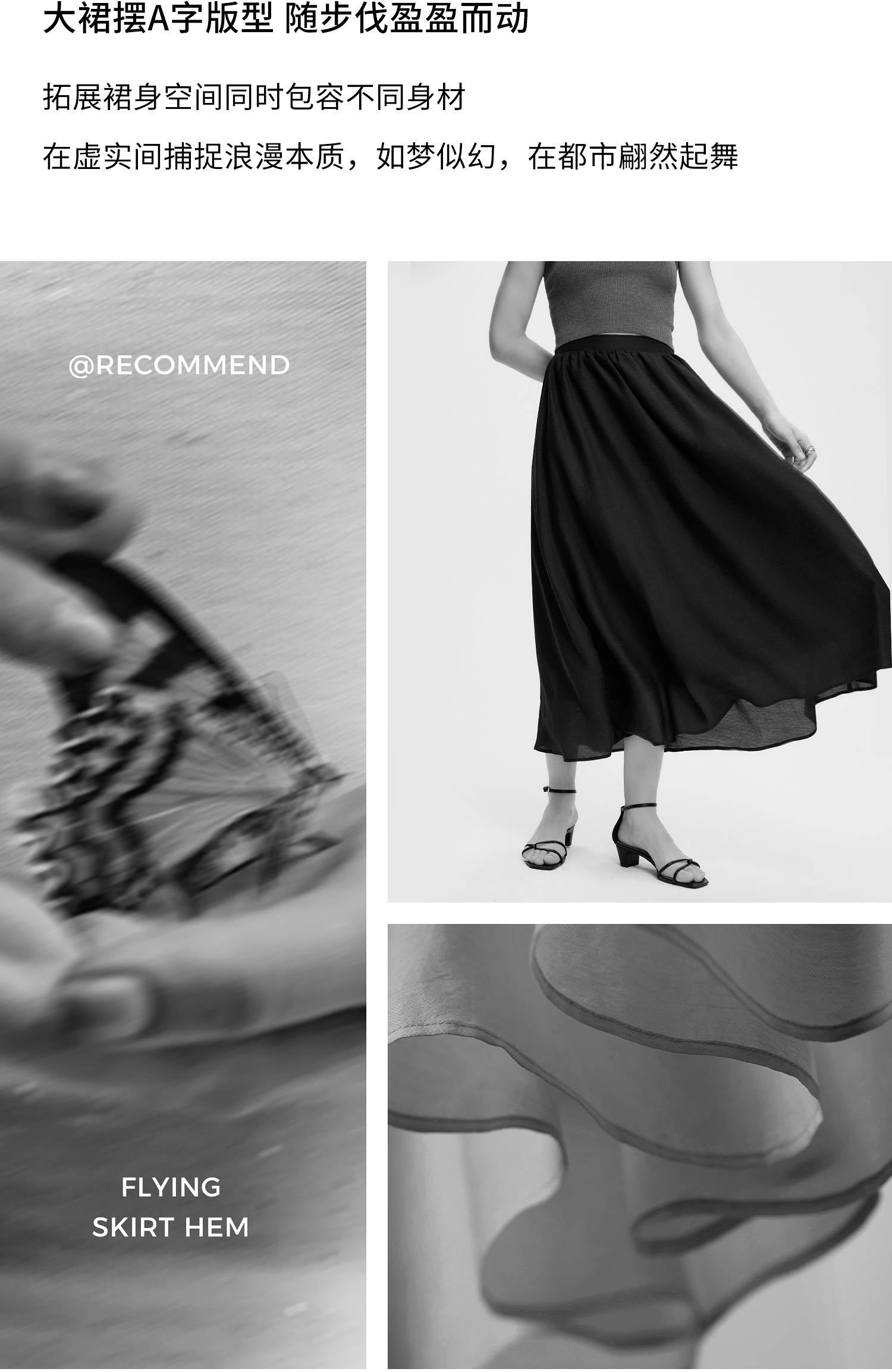 初棉 秋冬涤天丝羊毛半身裙 纯色百褶A字裙