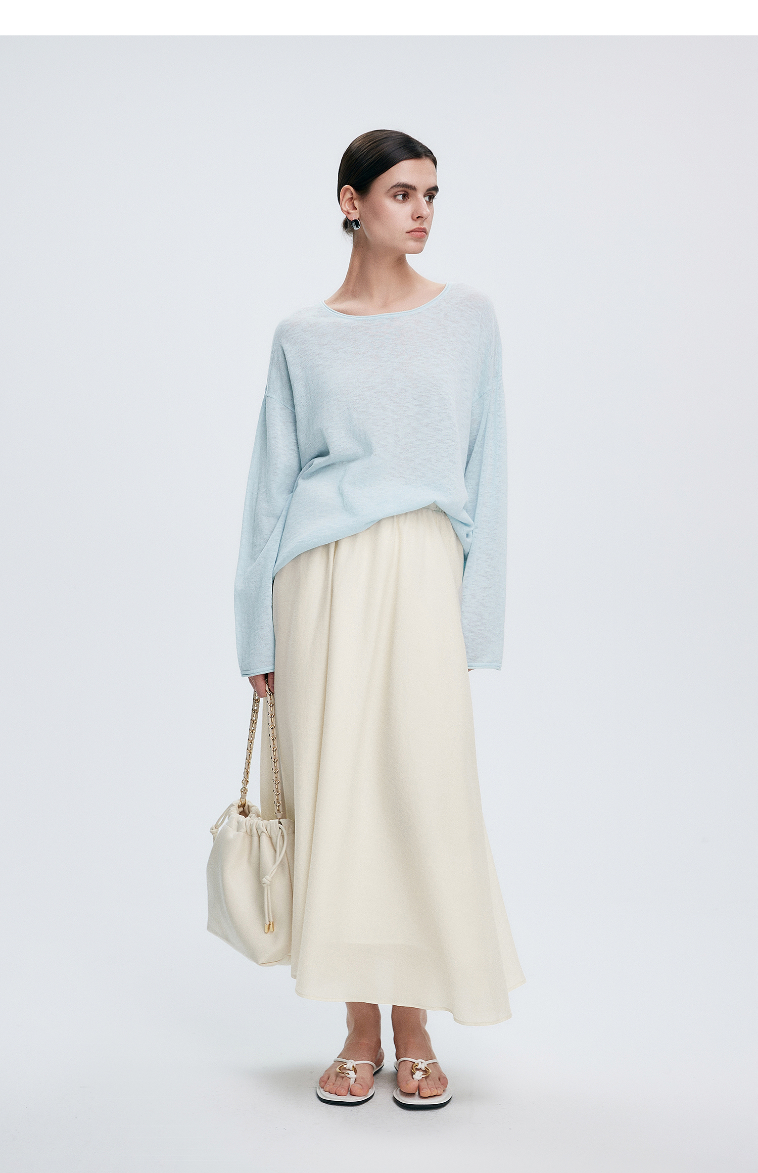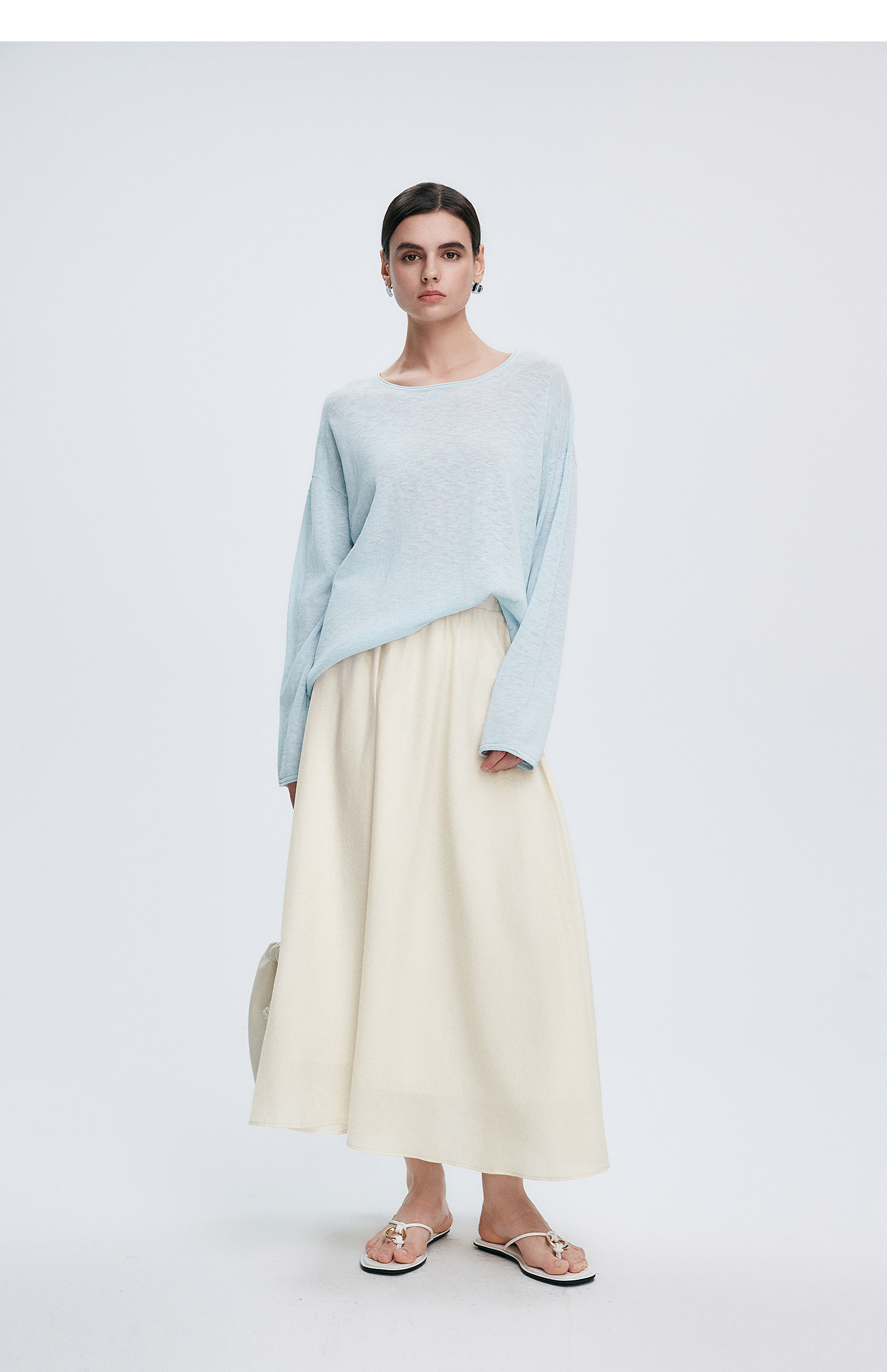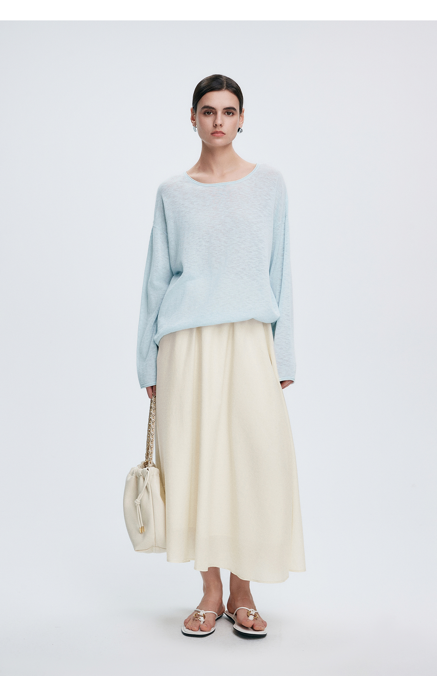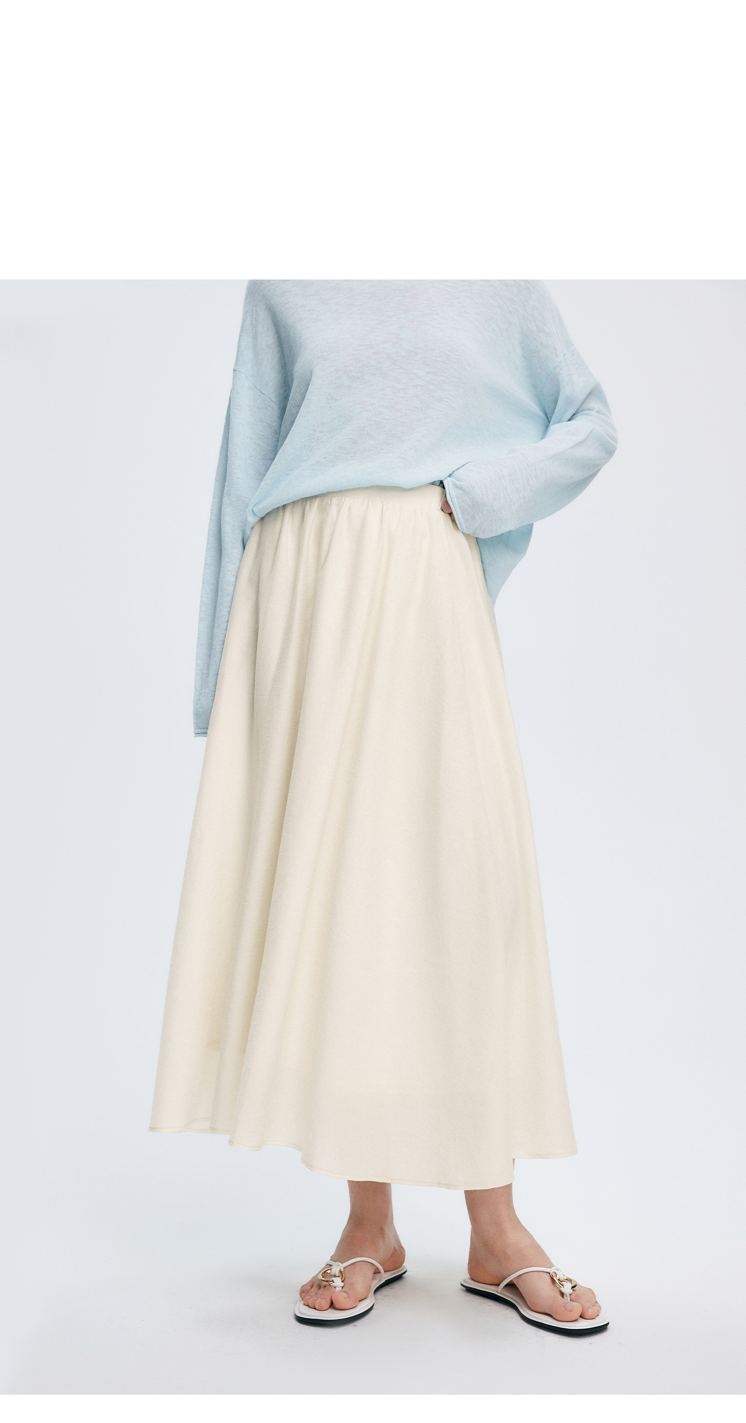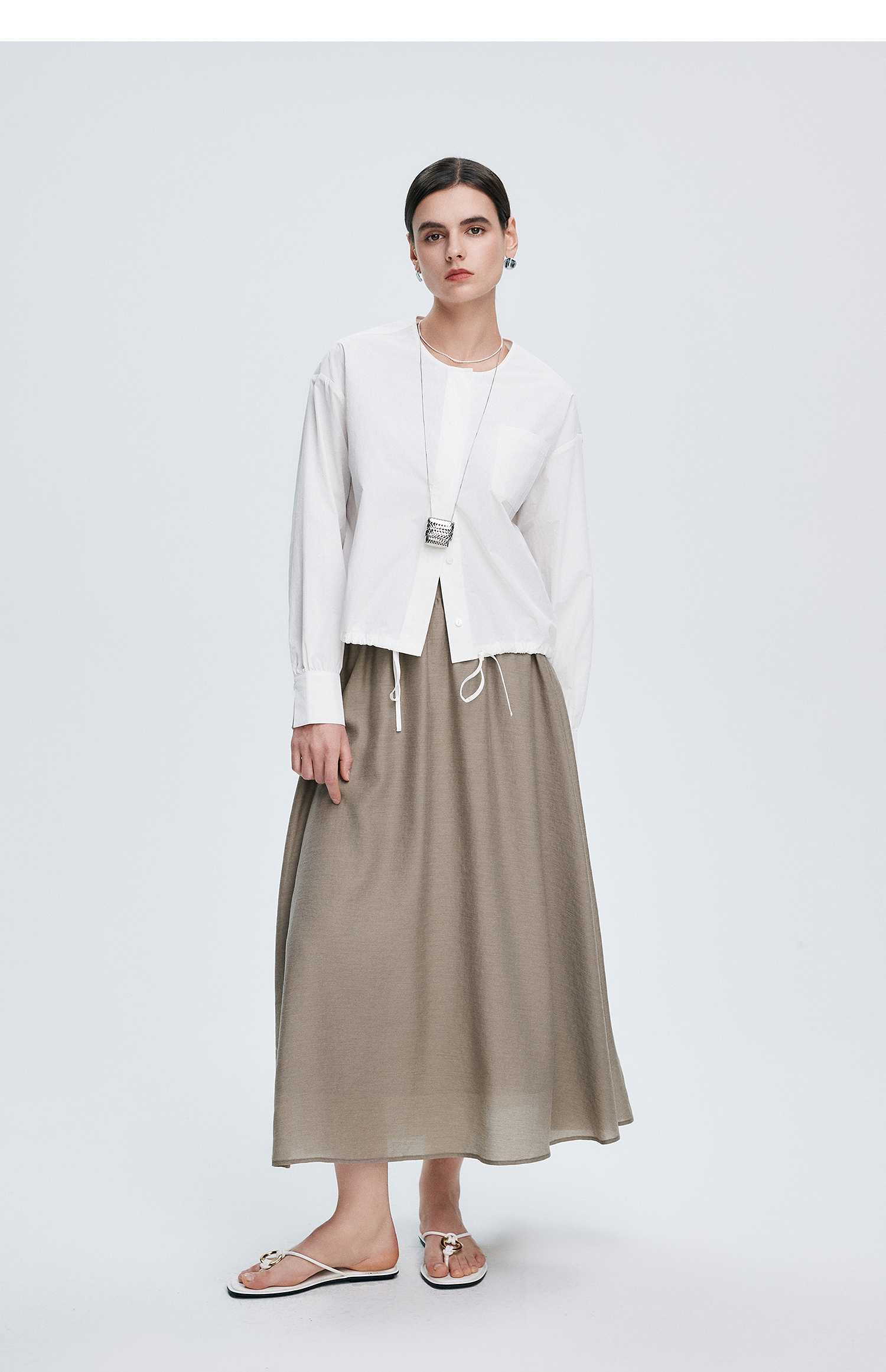 初棉 秋冬涤天丝羊毛半身裙 纯色百褶A字裙