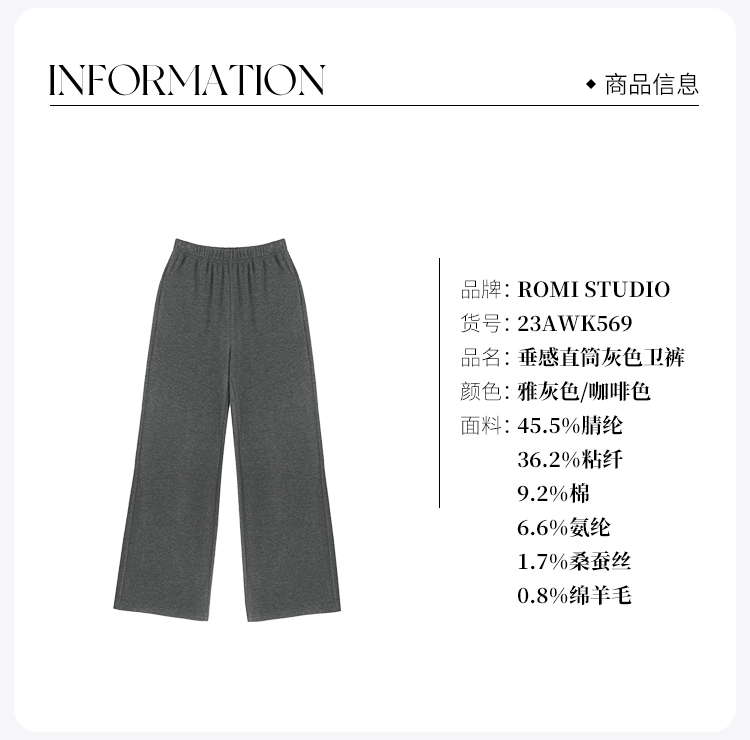 ROMI STUDIO“松弛随性" 休闲舒适混纺高腰直筒垂感卫裤 23AWK569