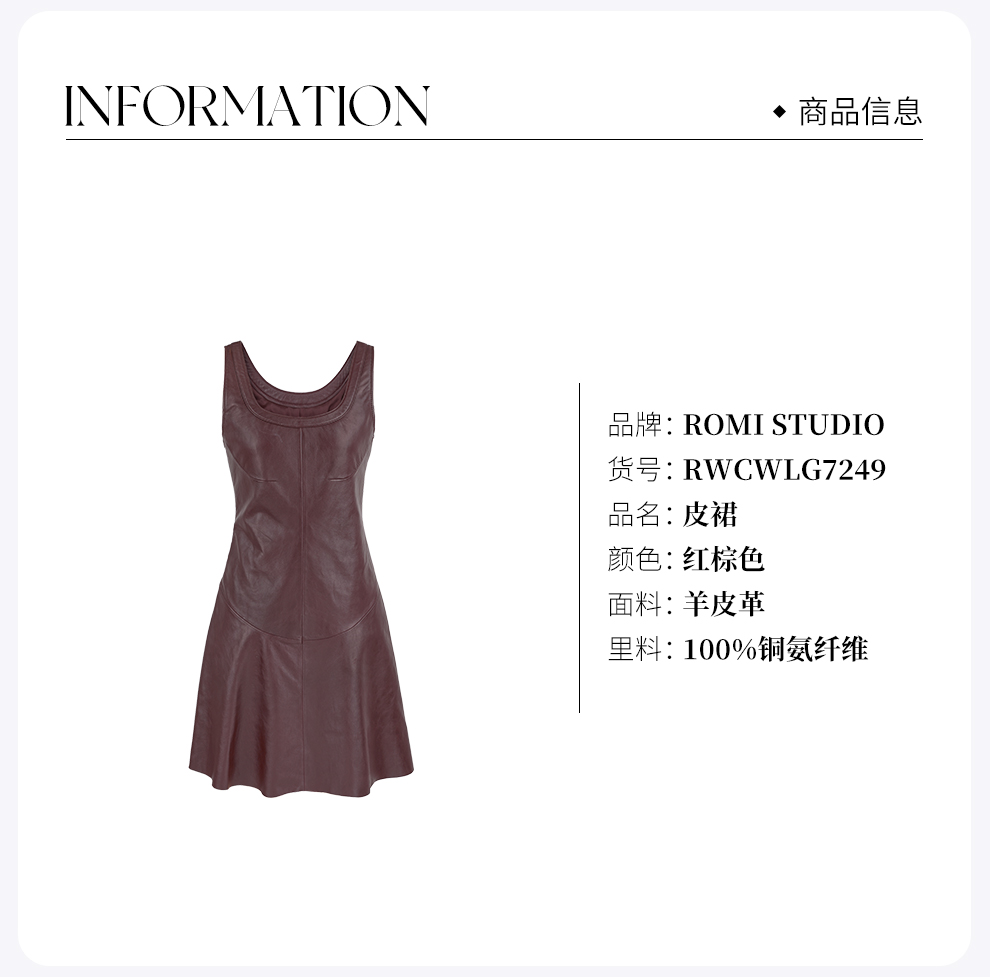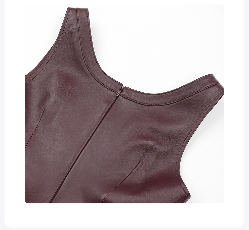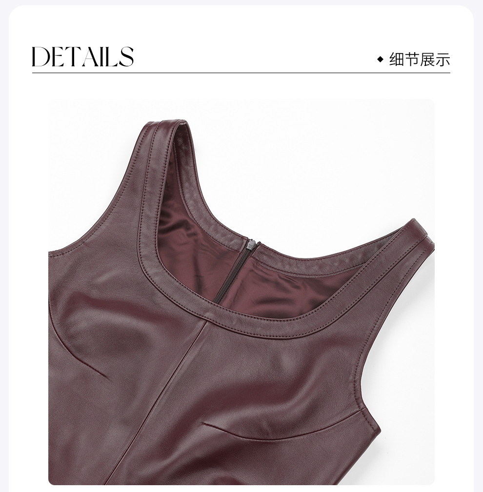 ROMI STUDIO英国进口头层羊皮植鞣哑光皮背心连衣裙RWCWLG7249