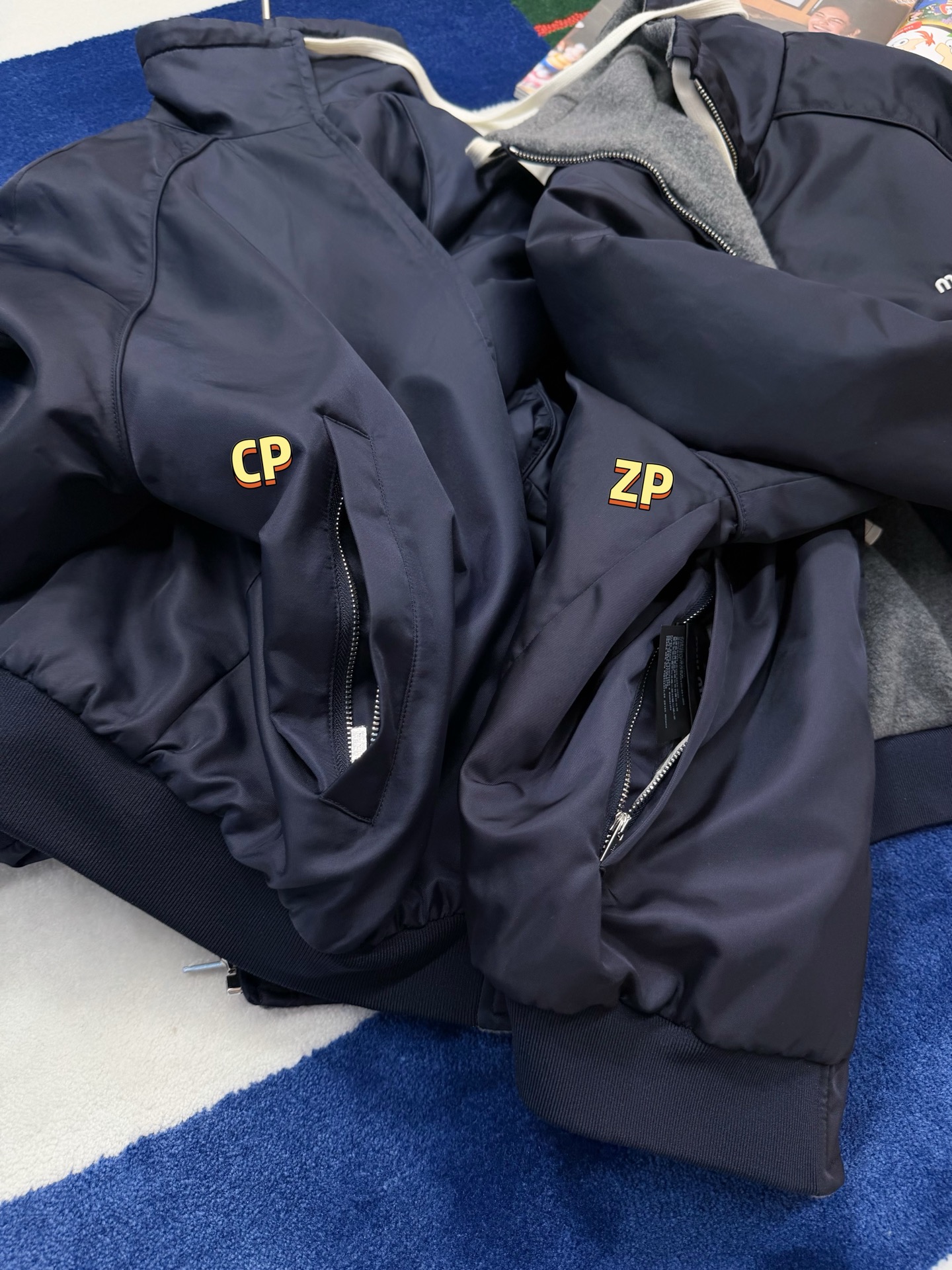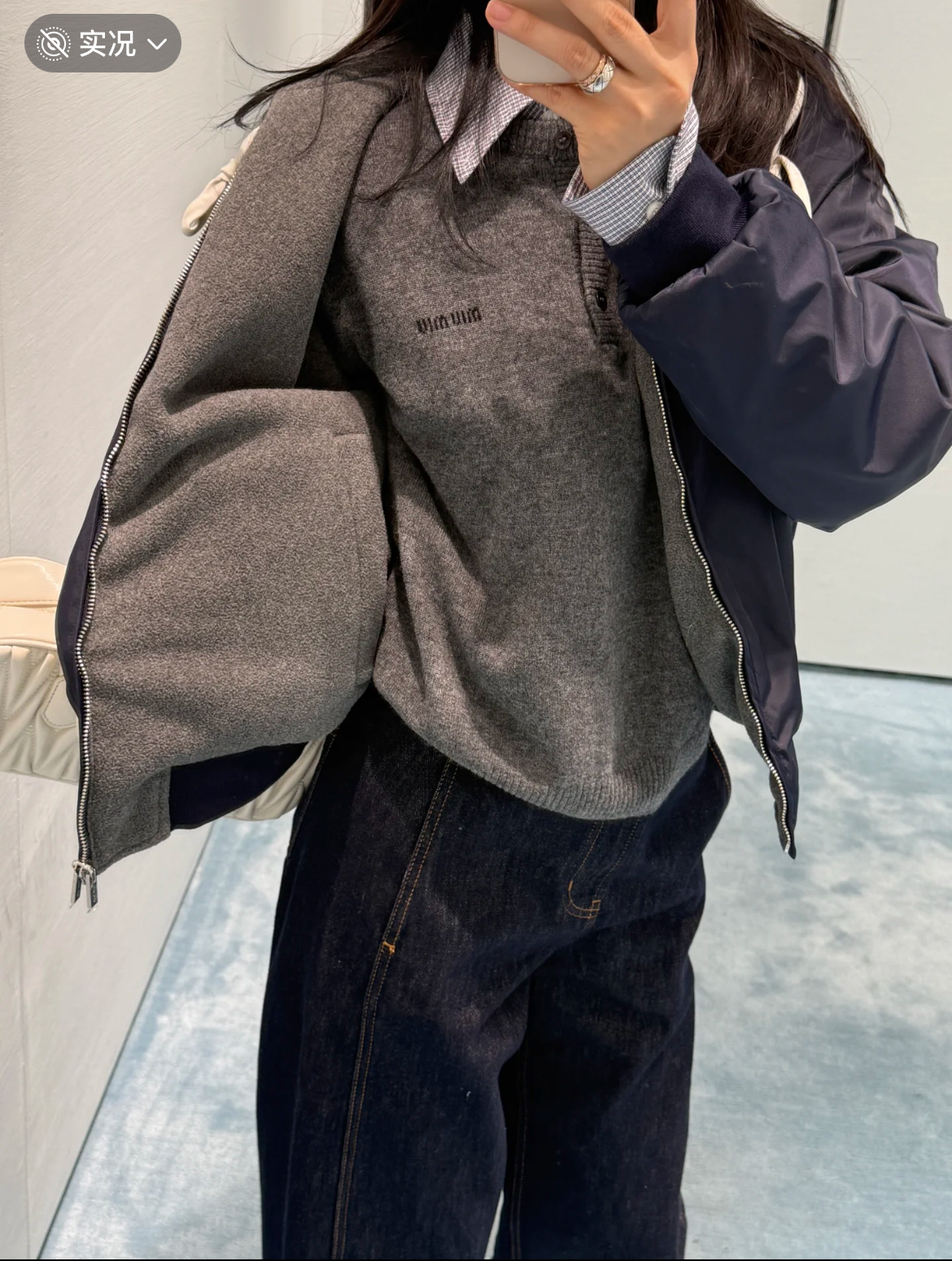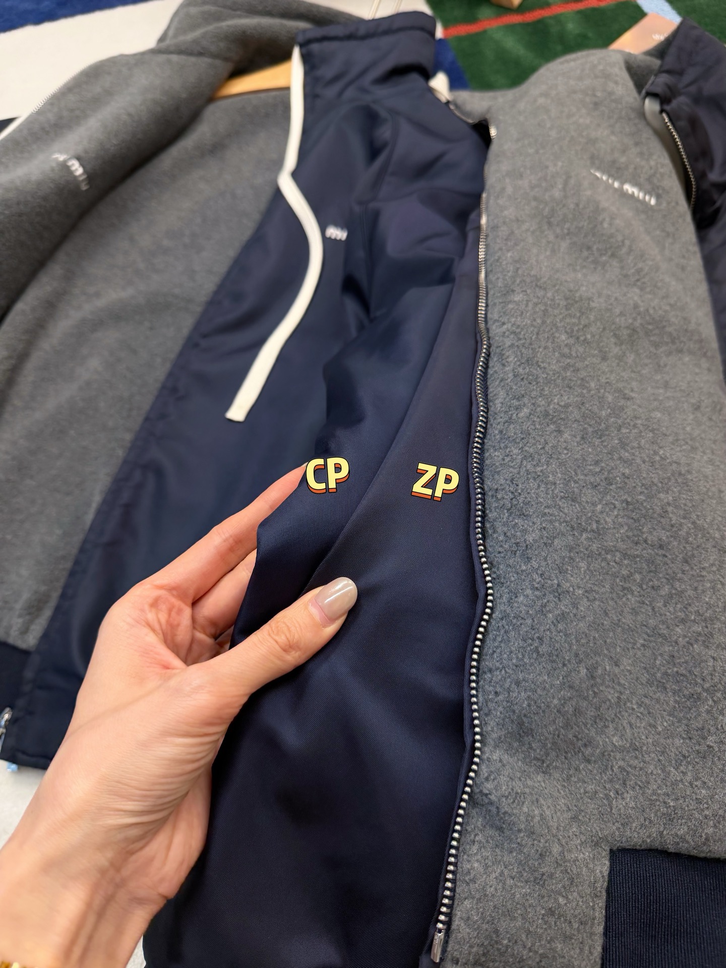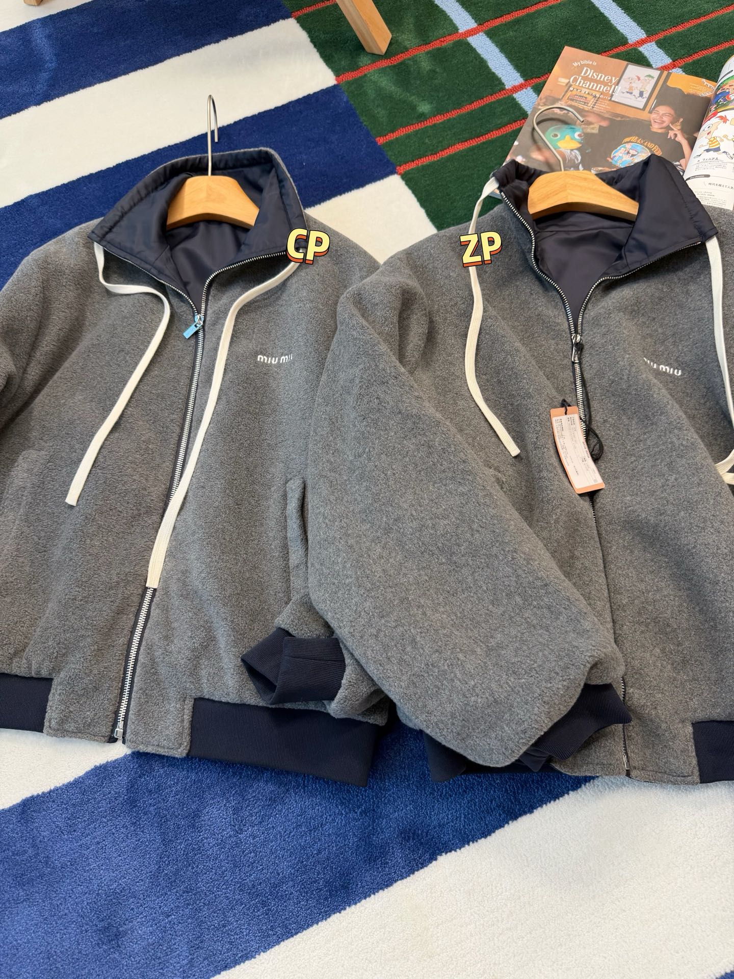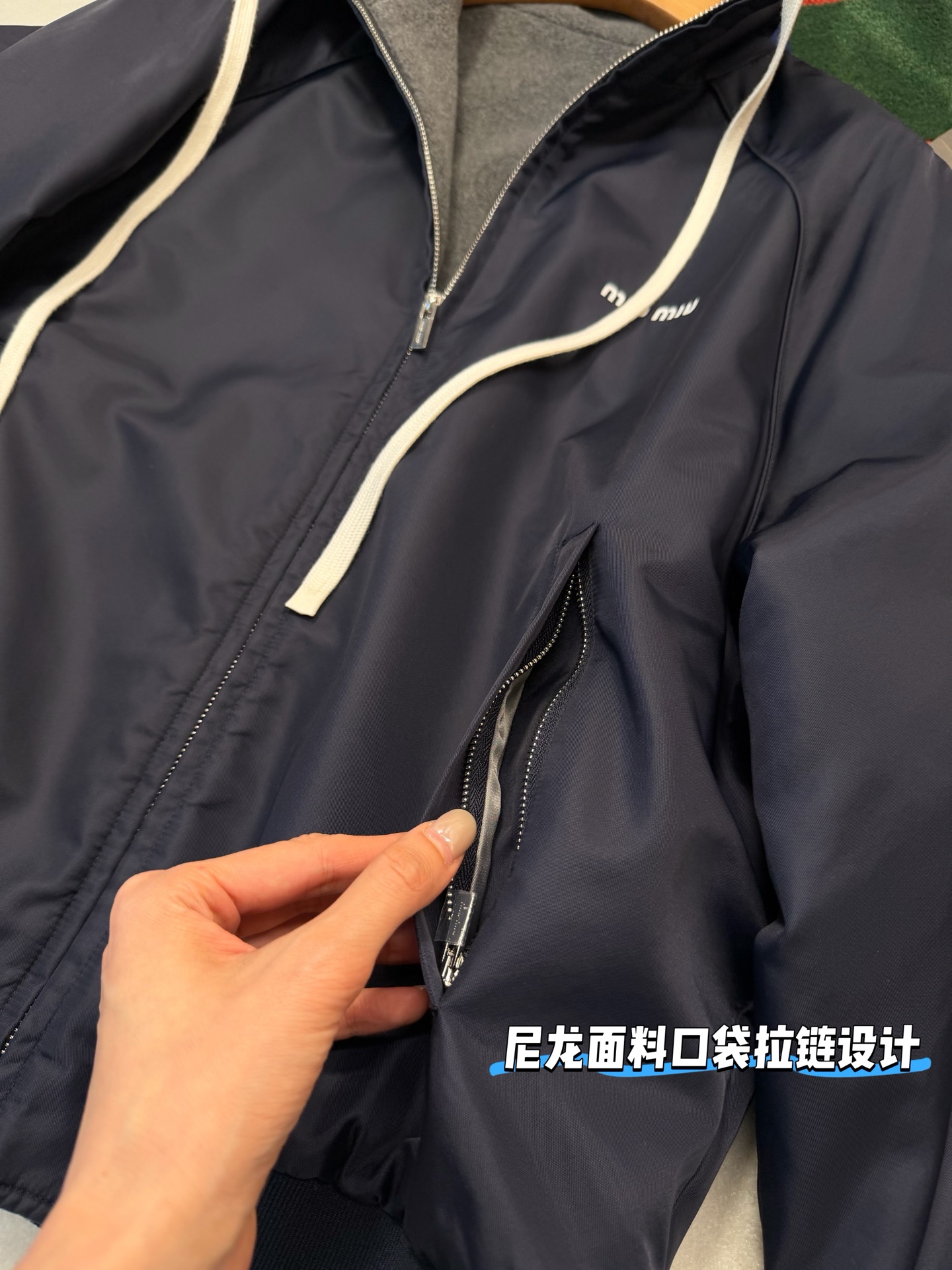 最最最新款 双面穿外套💫一件等于两件衣服的快乐,保暖又好看,慵懒时髦感, 科技Gazar面料与羊毛软料相结合➕这款双面飞行员夹克传递舒适感和酷炫态度✨ 胸前饰有刺绣,拿到手才知道有多香,两面完全是两种风格,一面是软糯糯的灰色摇粒绒手感巨舒服,像裹着云朵走路秋冬氛围感直接拉满,翻过来是酷酷的蓝色尼龙面立马变身街头辣妹风,版型宽松但不臃肿藏肉显瘦一绝 ✔️两面都有口袋实用性满分〰️姐妹们一定要拥有😜码数SML