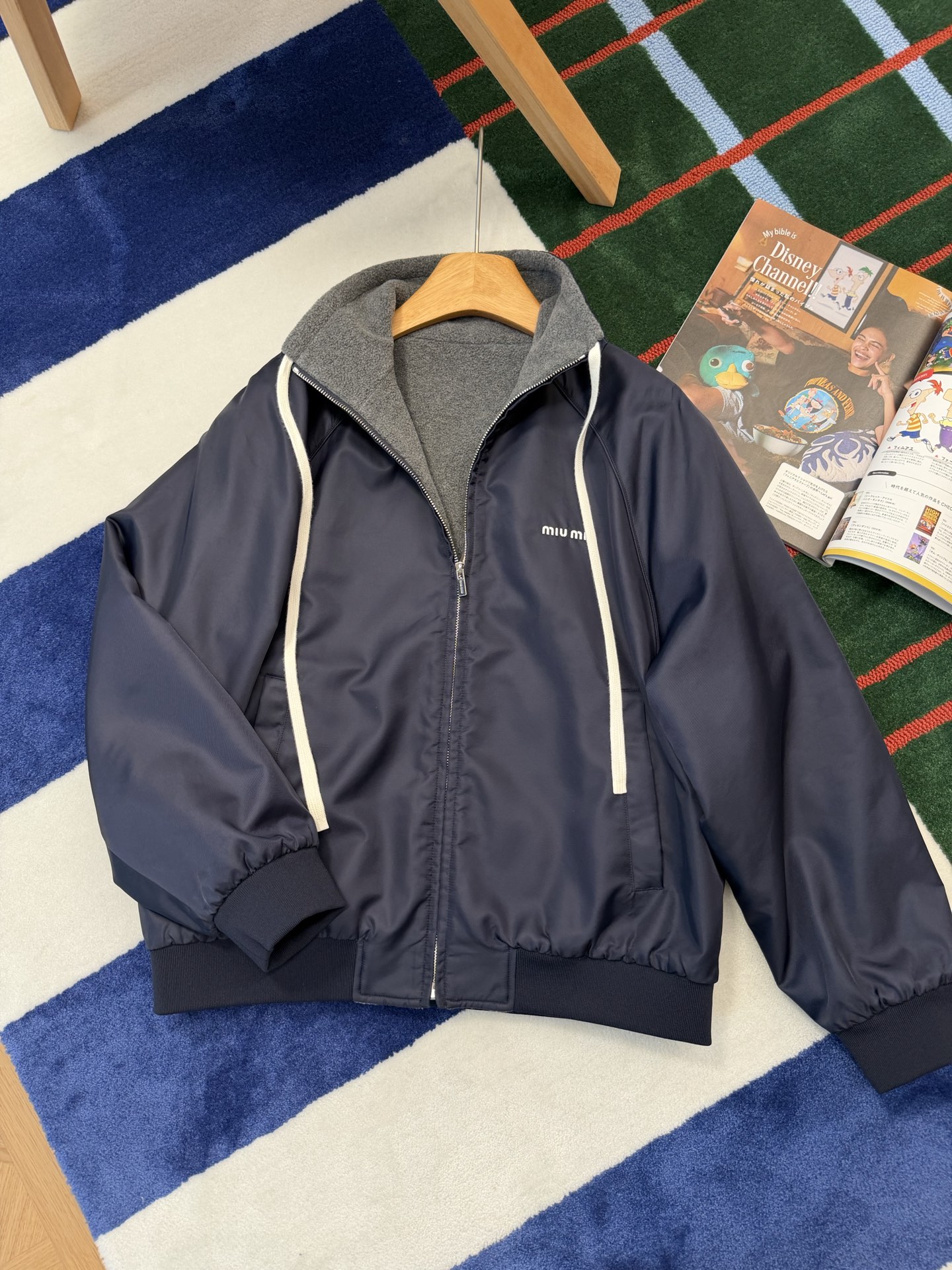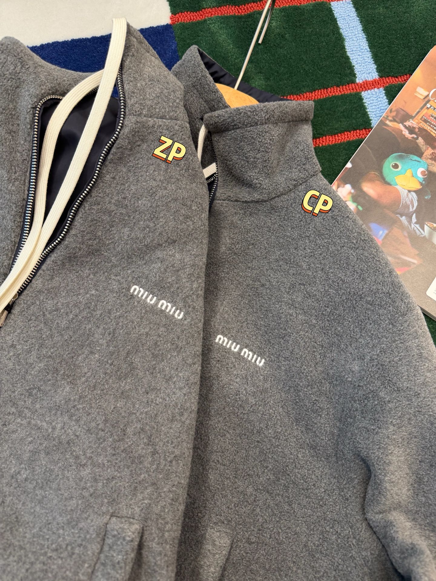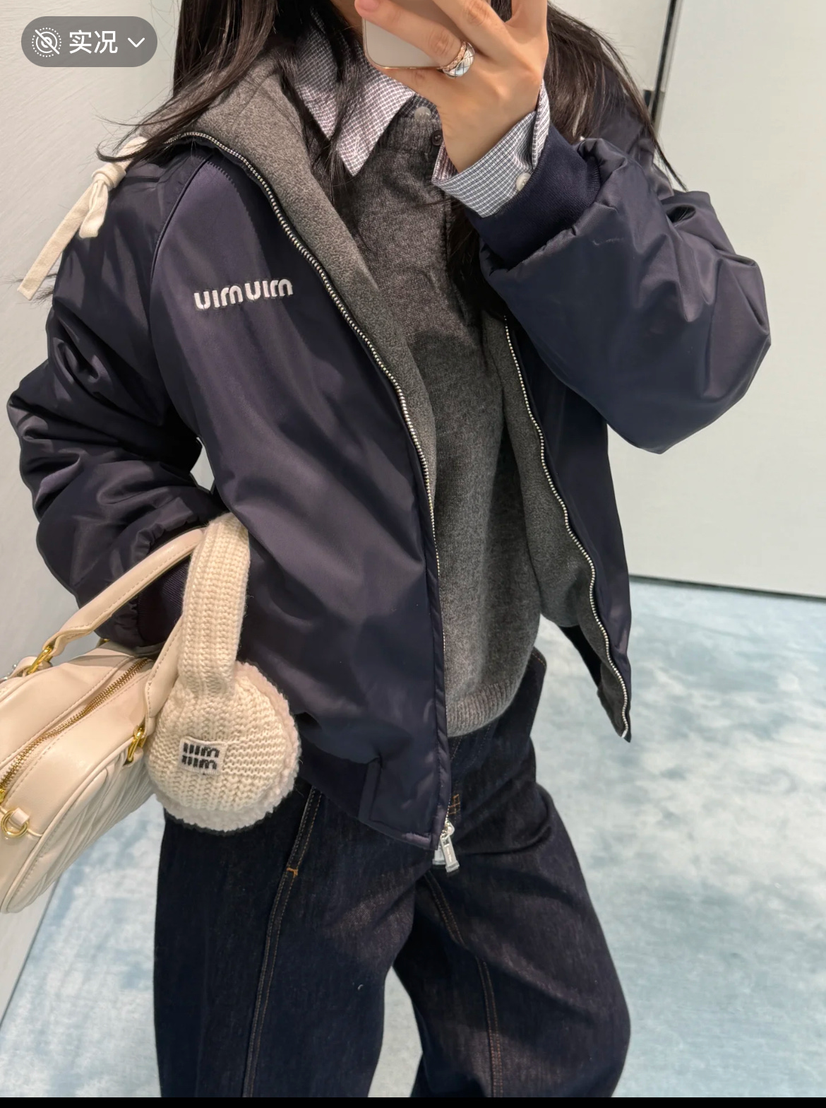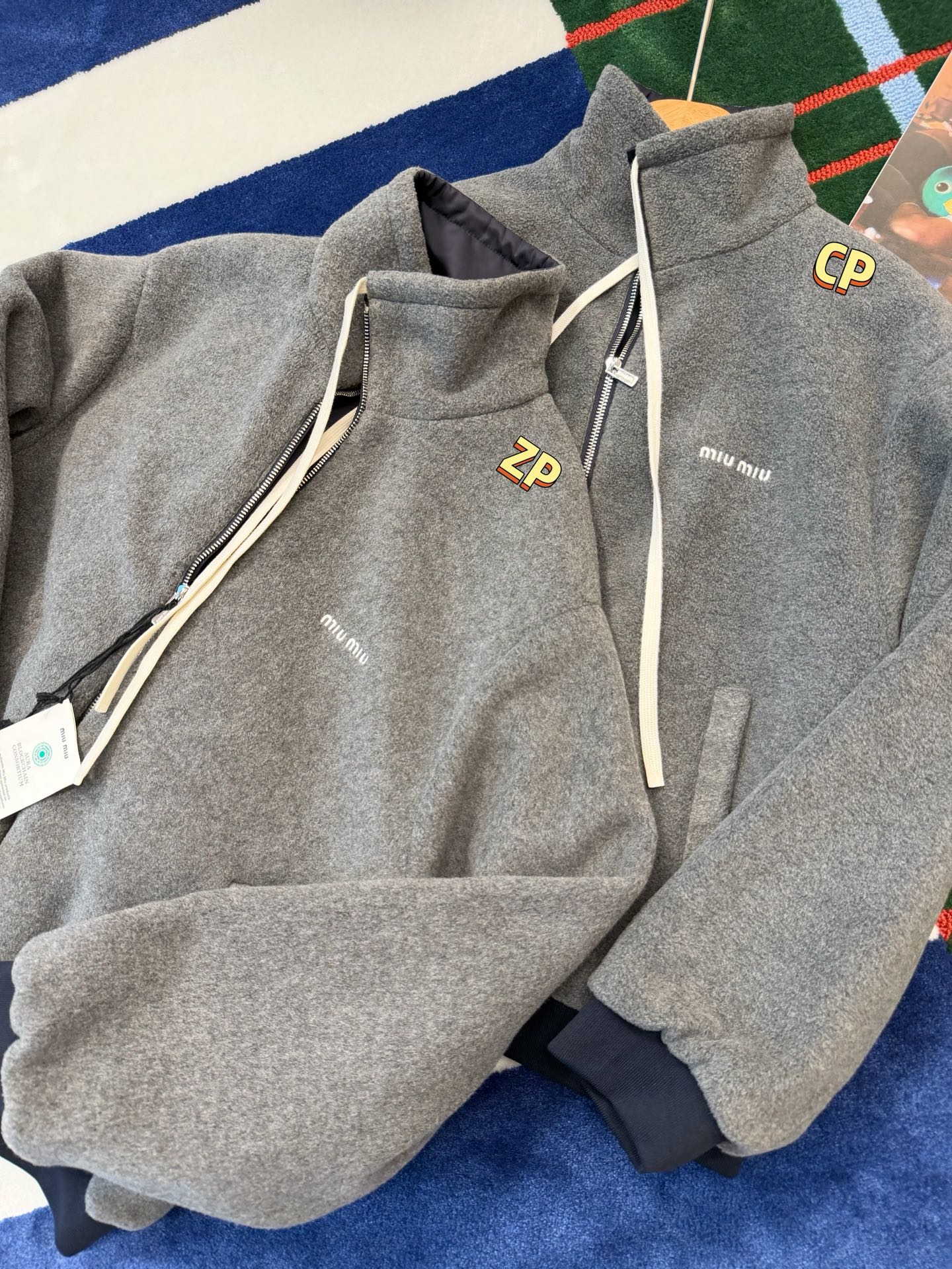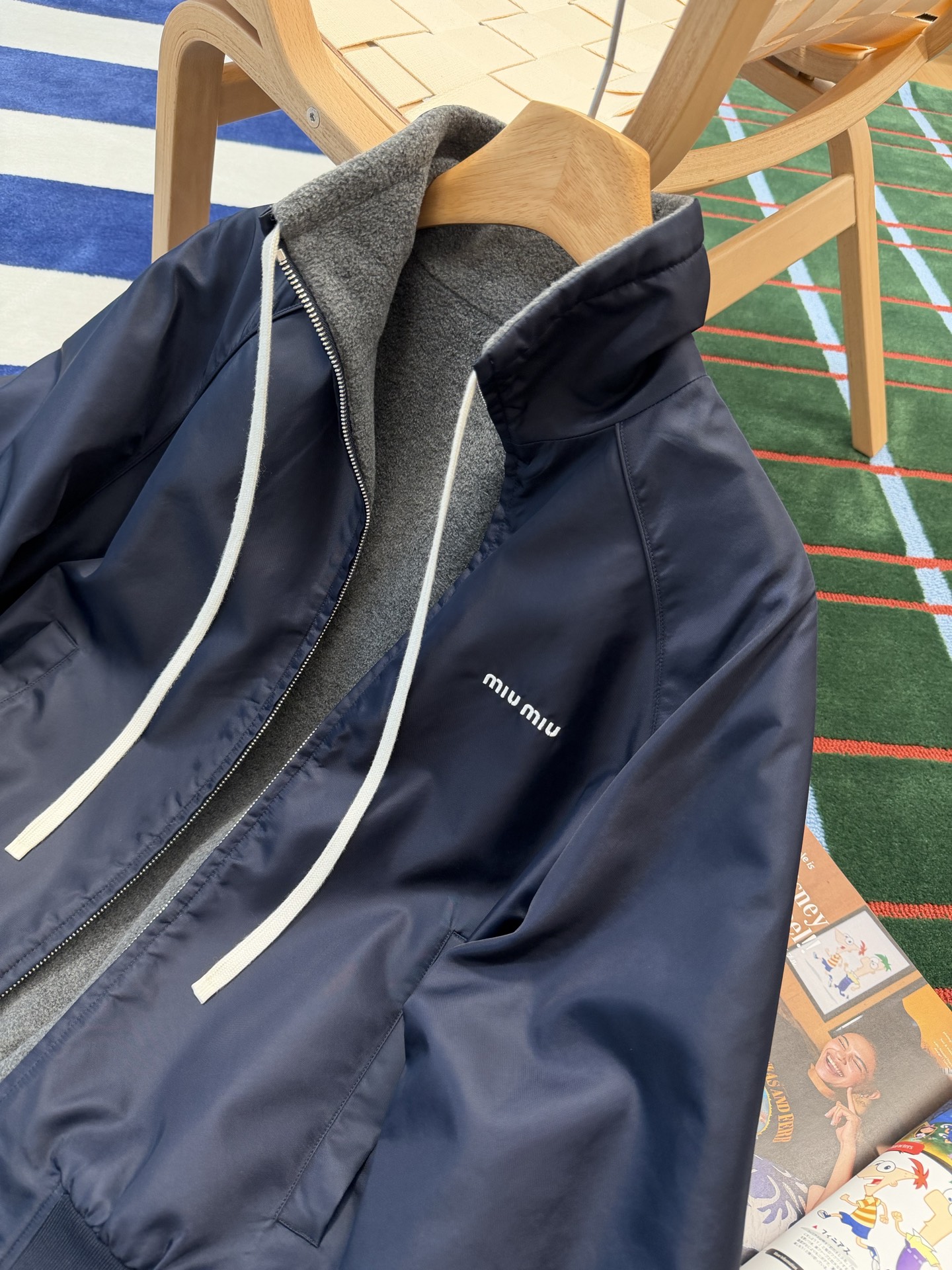 最最最新款 双面穿外套💫一件等于两件衣服的快乐,保暖又好看,慵懒时髦感, 科技Gazar面料与羊毛软料相结合➕这款双面飞行员夹克传递舒适感和酷炫态度✨ 胸前饰有刺绣,拿到手才知道有多香,两面完全是两种风格,一面是软糯糯的灰色摇粒绒手感巨舒服,像裹着云朵走路秋冬氛围感直接拉满,翻过来是酷酷的蓝色尼龙面立马变身街头辣妹风,版型宽松但不臃肿藏肉显瘦一绝 ✔️两面都有口袋实用性满分〰️姐妹们一定要拥有😜码数SML