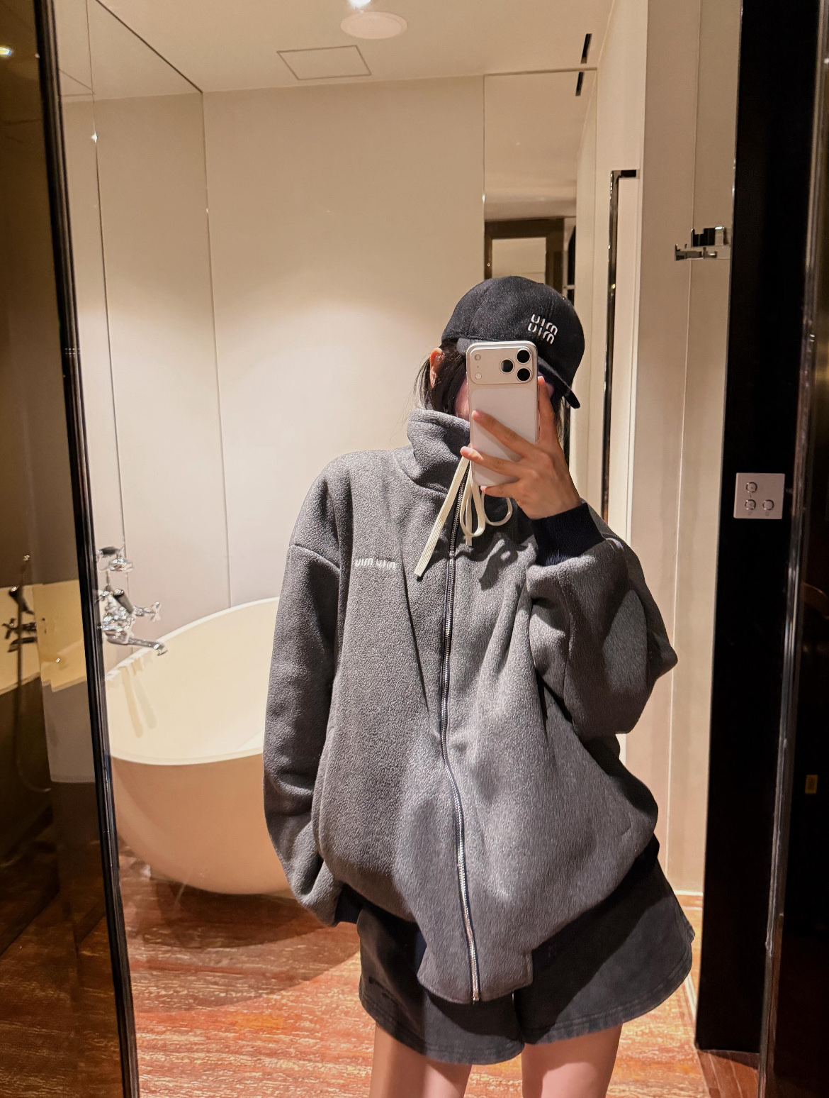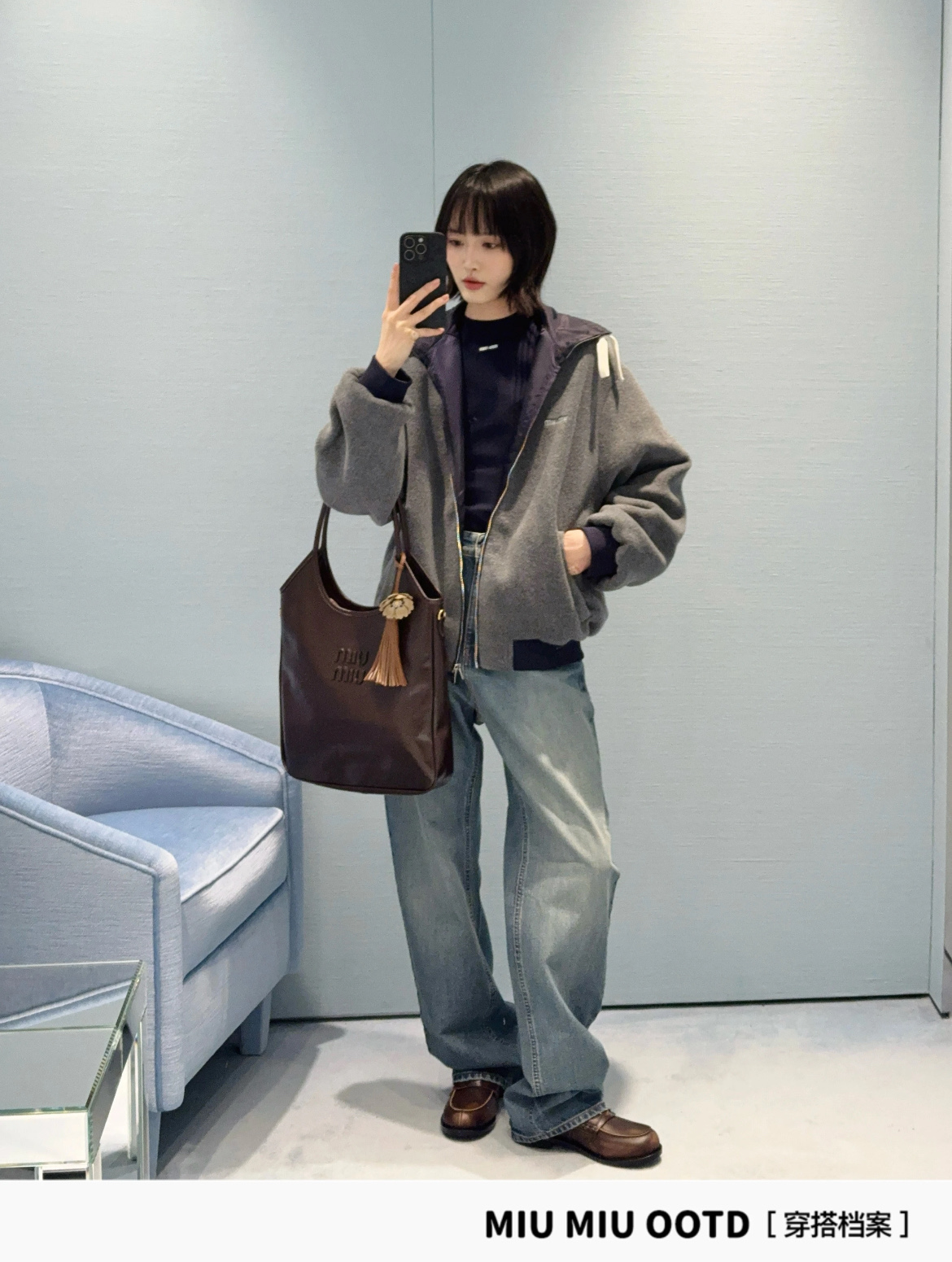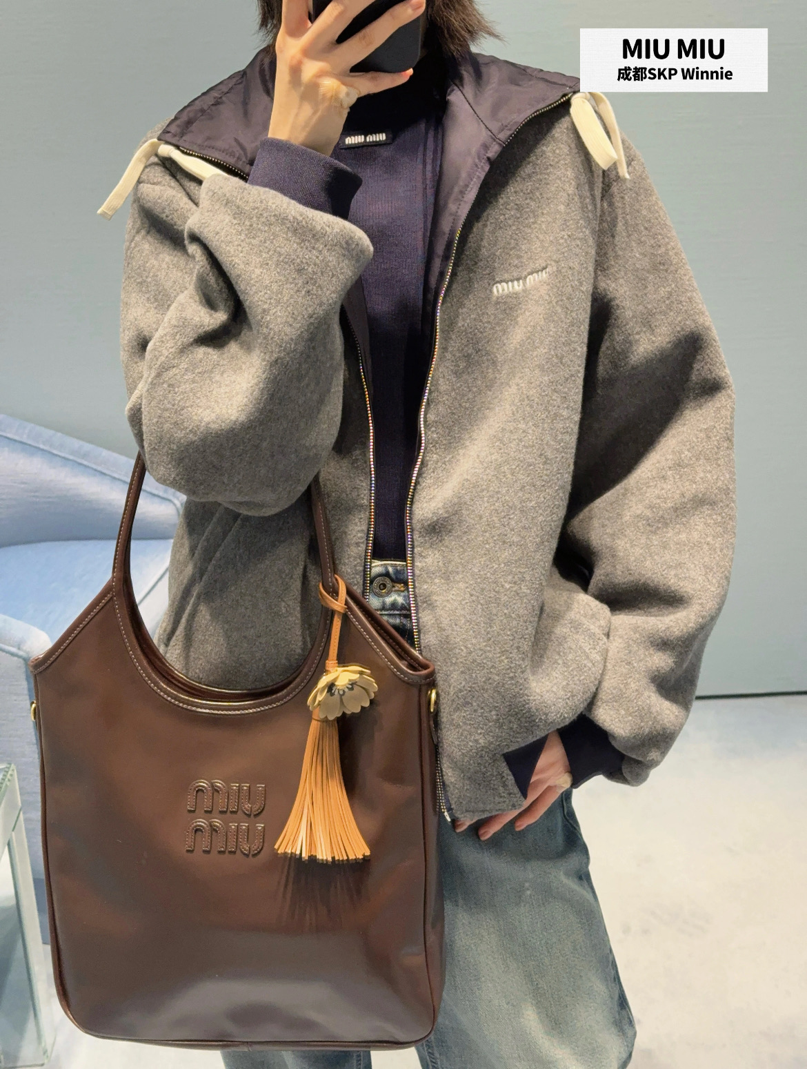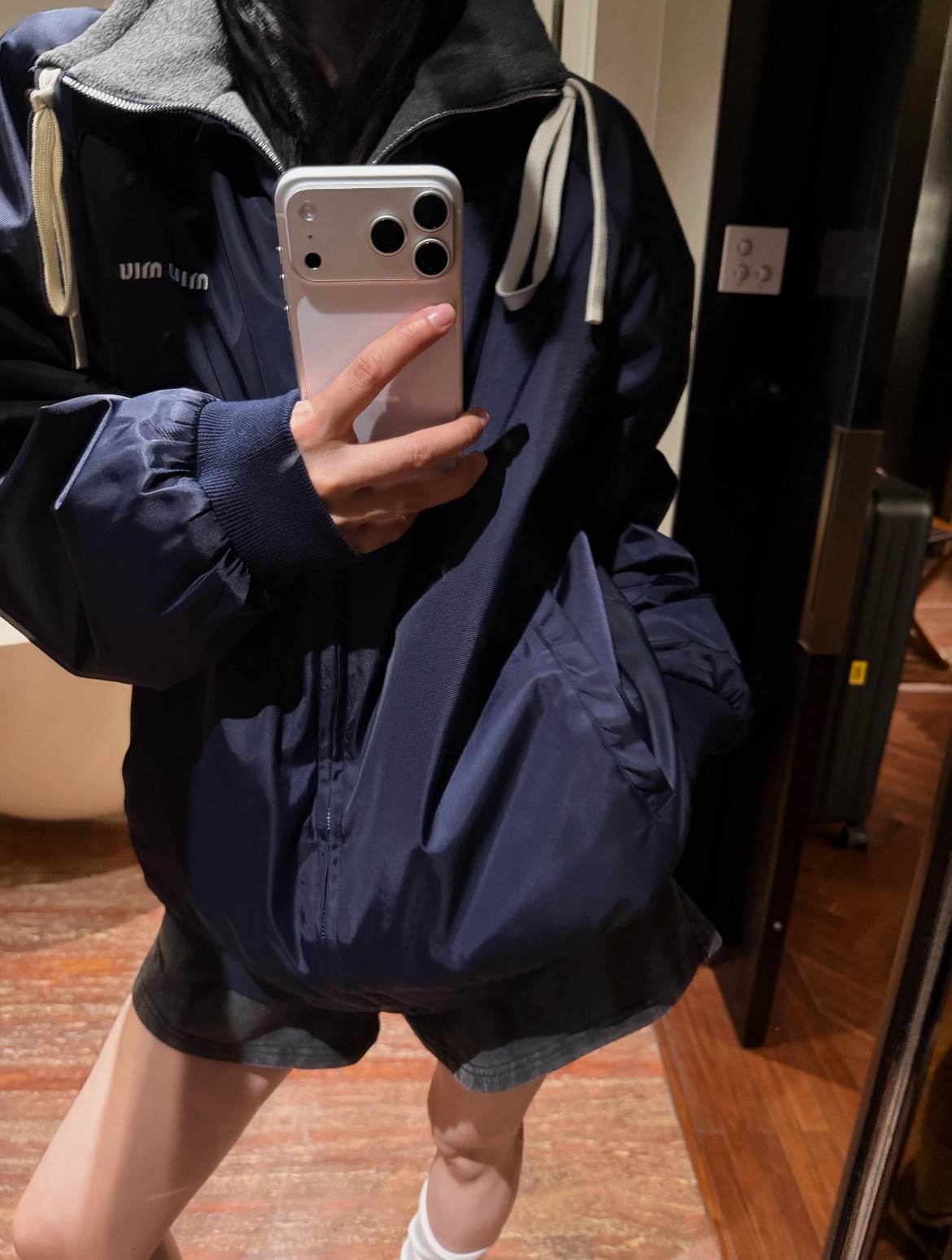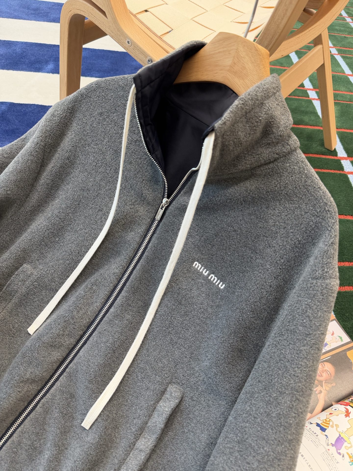最最最新款 双面穿外套💫一件等于两件衣服的快乐,保暖又好看,慵懒时髦感, 科技Gazar面料与羊毛软料相结合➕这款双面飞行员夹克传递舒适感和酷炫态度✨ 胸前饰有刺绣,拿到手才知道有多香,两面完全是两种风格,一面是软糯糯的灰色摇粒绒手感巨舒服,像裹着云朵走路秋冬氛围感直接拉满,翻过来是酷酷的蓝色尼龙面立马变身街头辣妹风,版型宽松但不臃肿藏肉显瘦一绝 ✔️两面都有口袋实用性满分〰️姐妹们一定要拥有😜码数SML