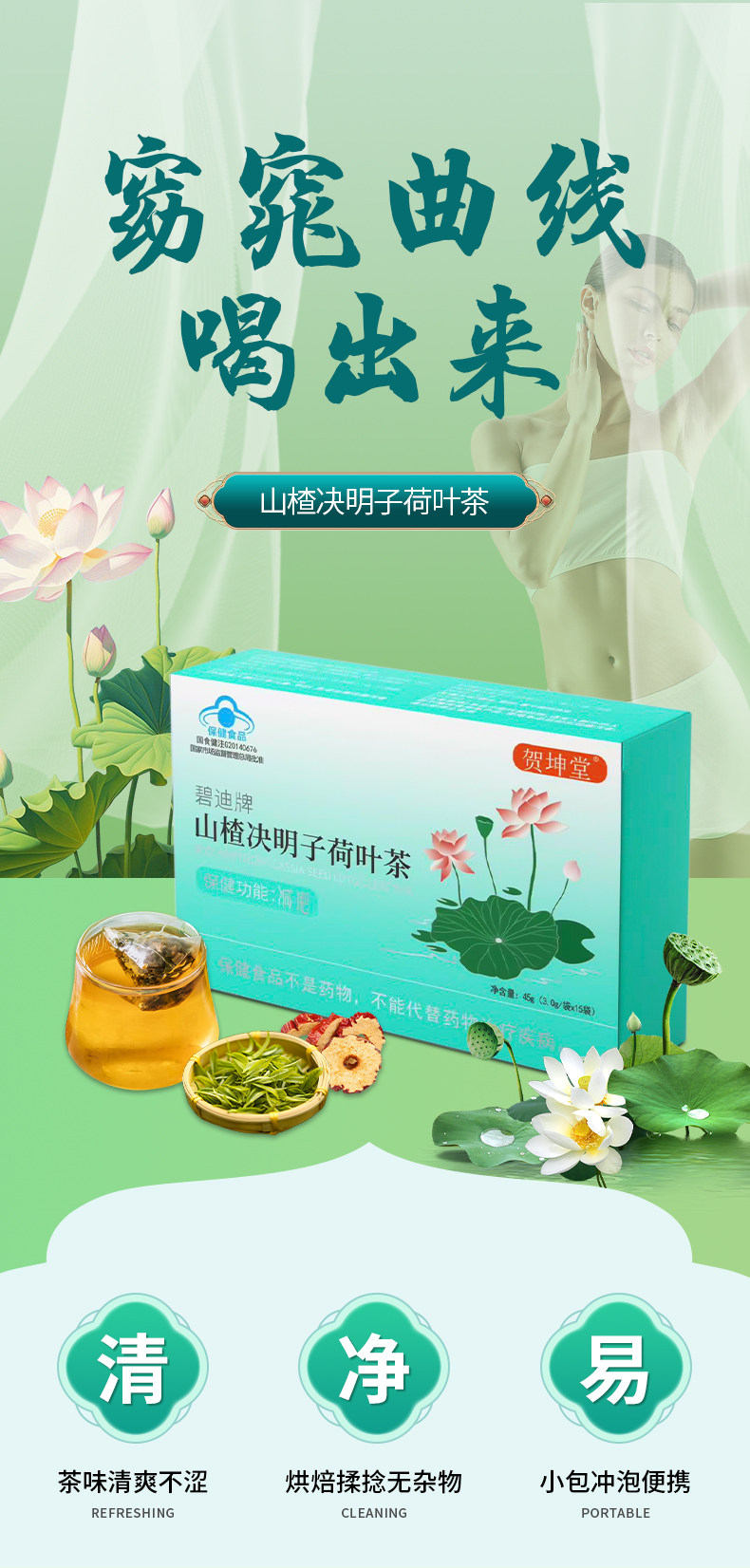 贺坤堂减肥茶刮油茶去湿气排油山楂决明子荷叶减肥茶清肠瘦肚子