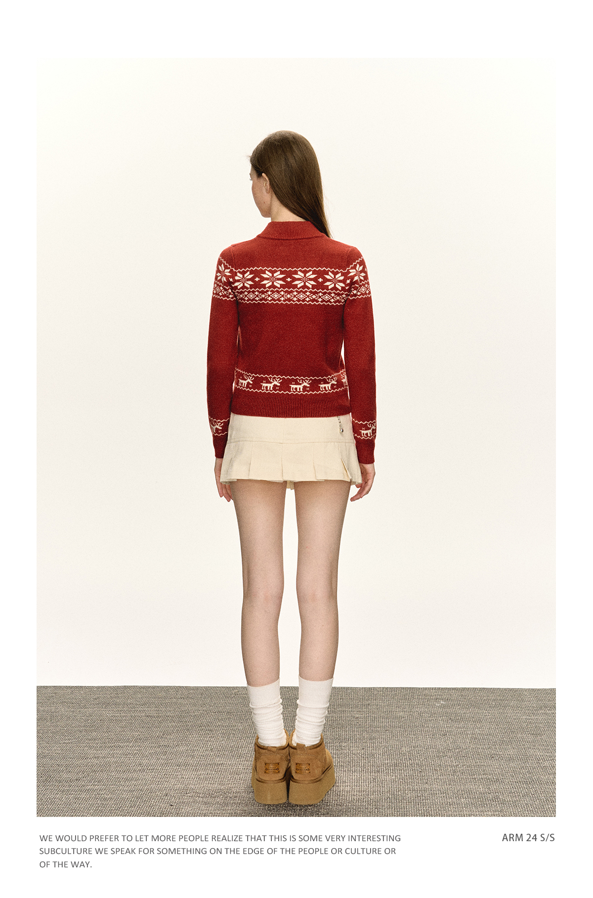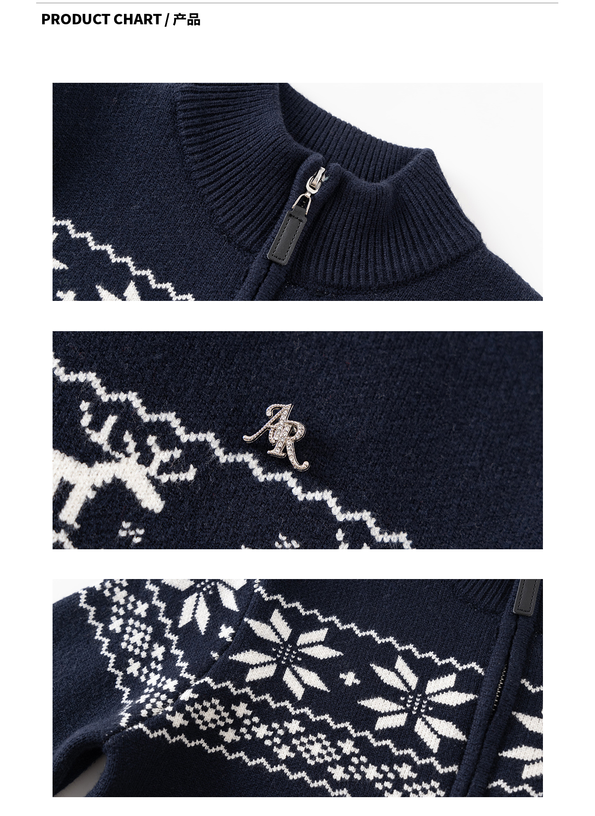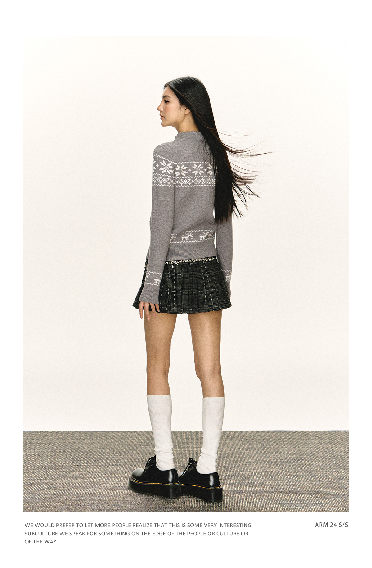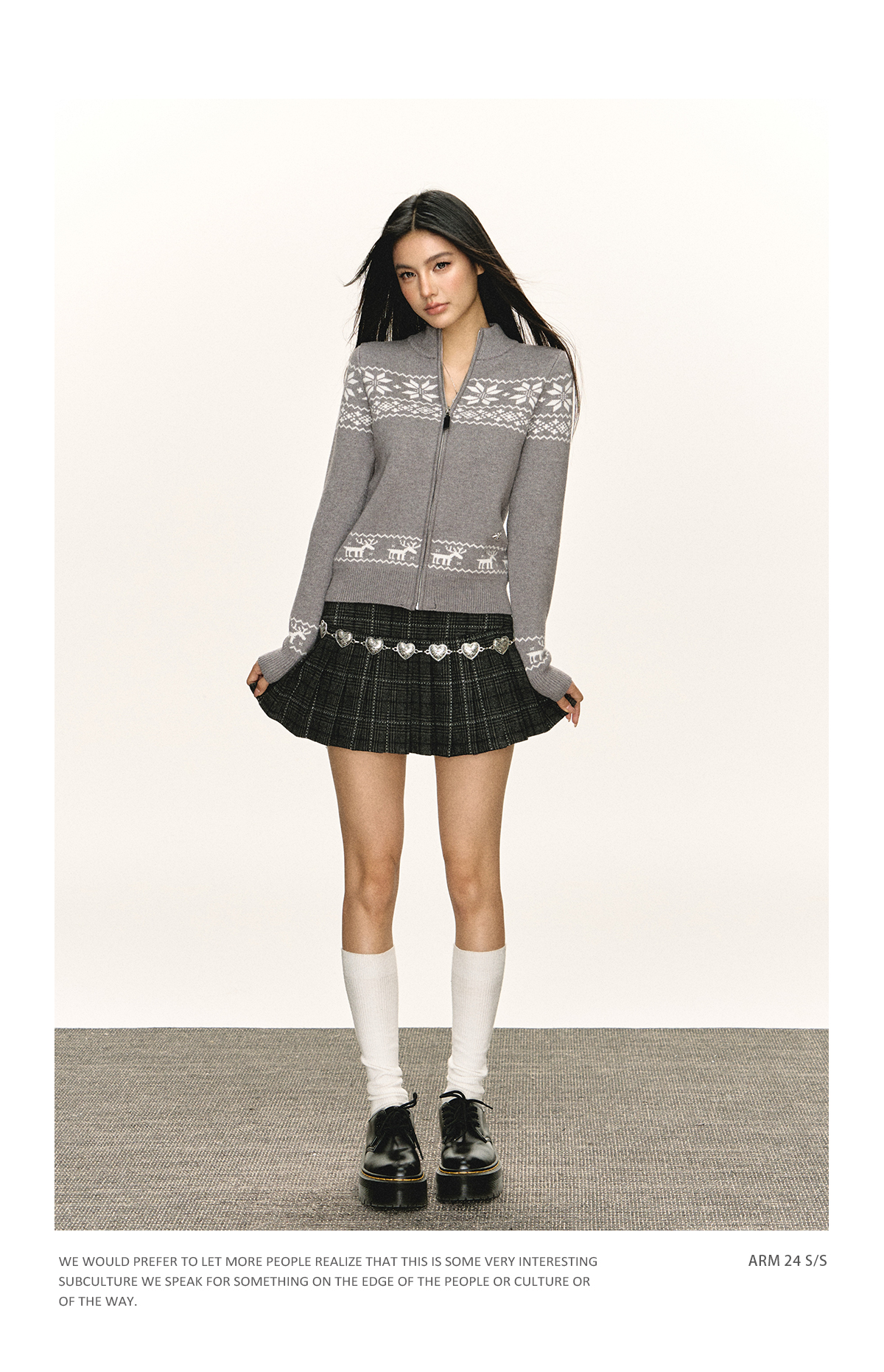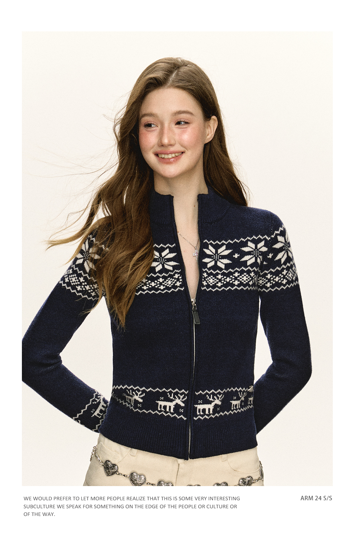 Ariseism 美式复古费尔岛花纹立领拉链开衫女春季新款修身上衣