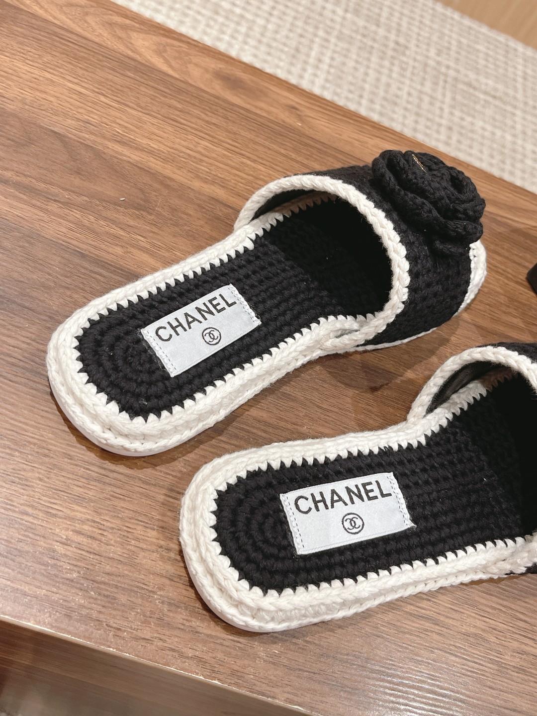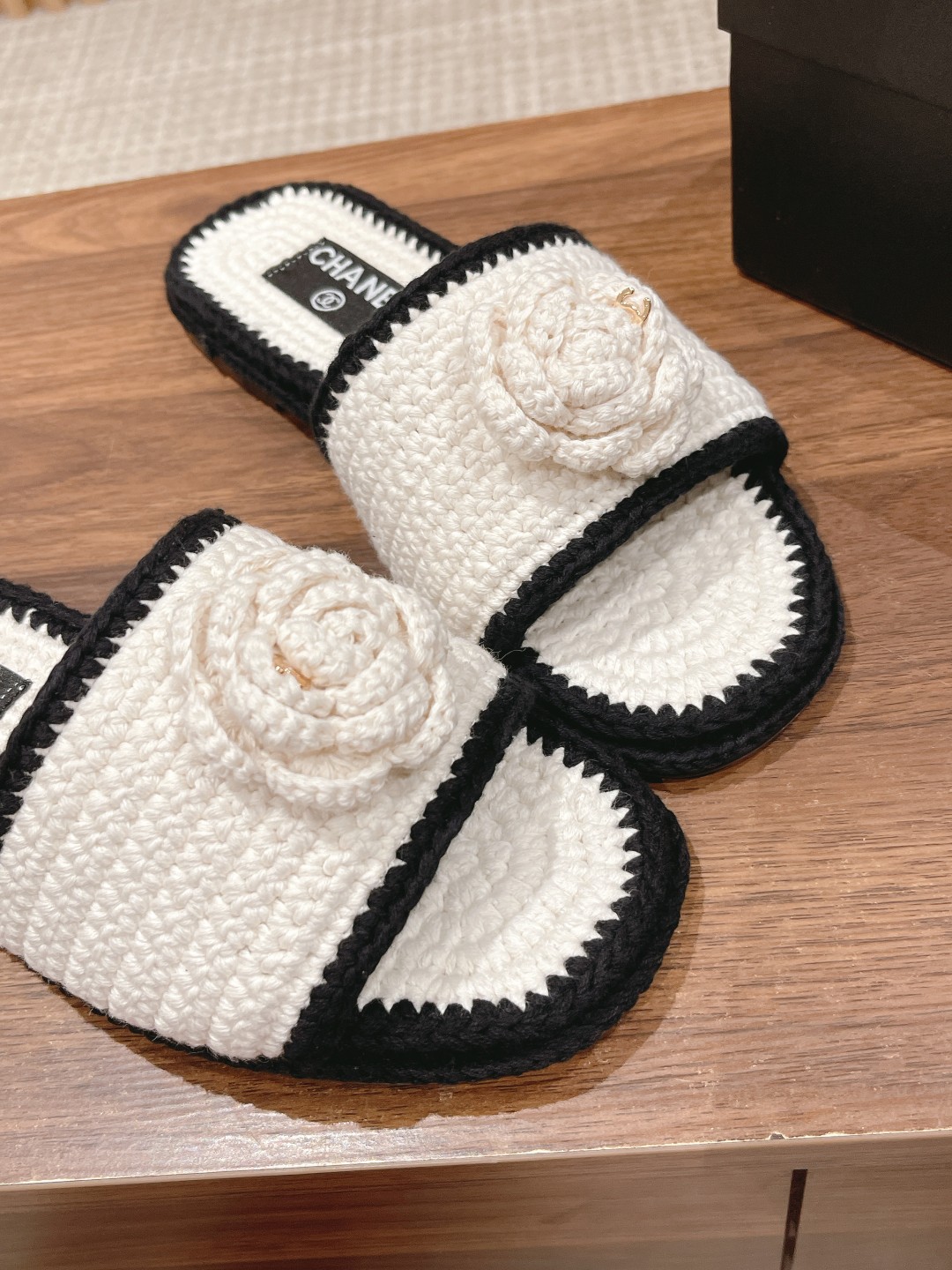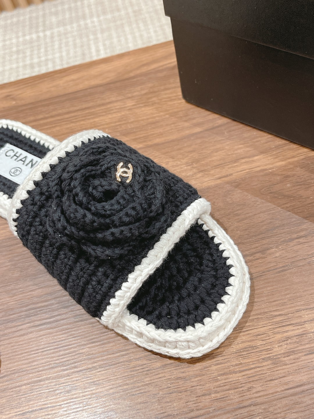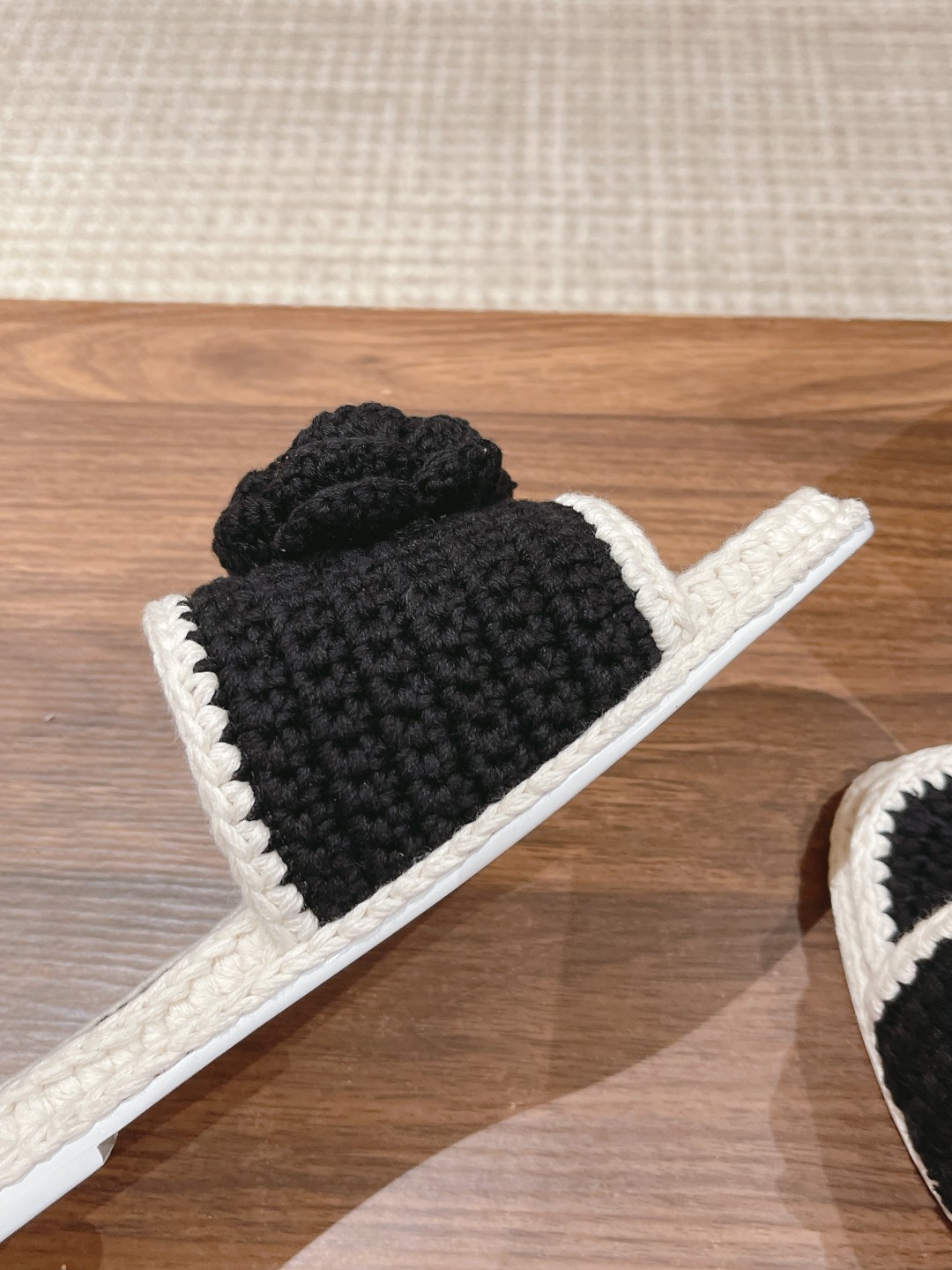 CHANEL 香奈儿新款钩花毛线山茶花蜜儿拖